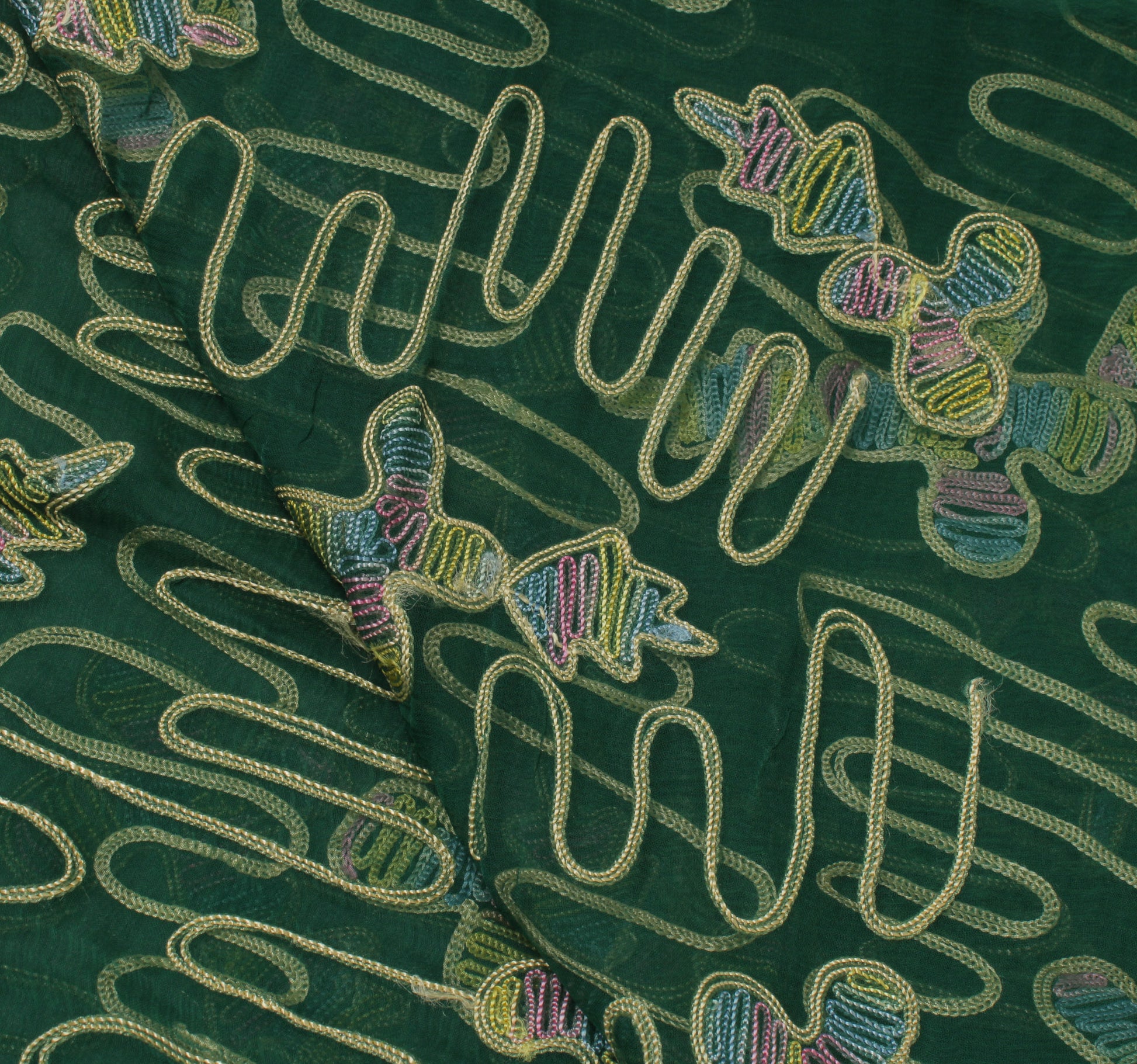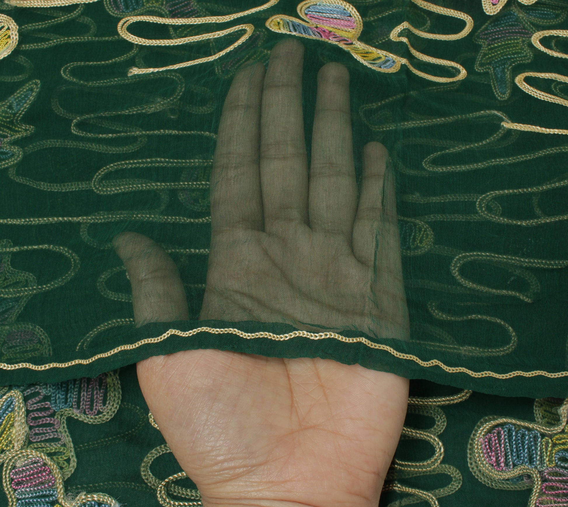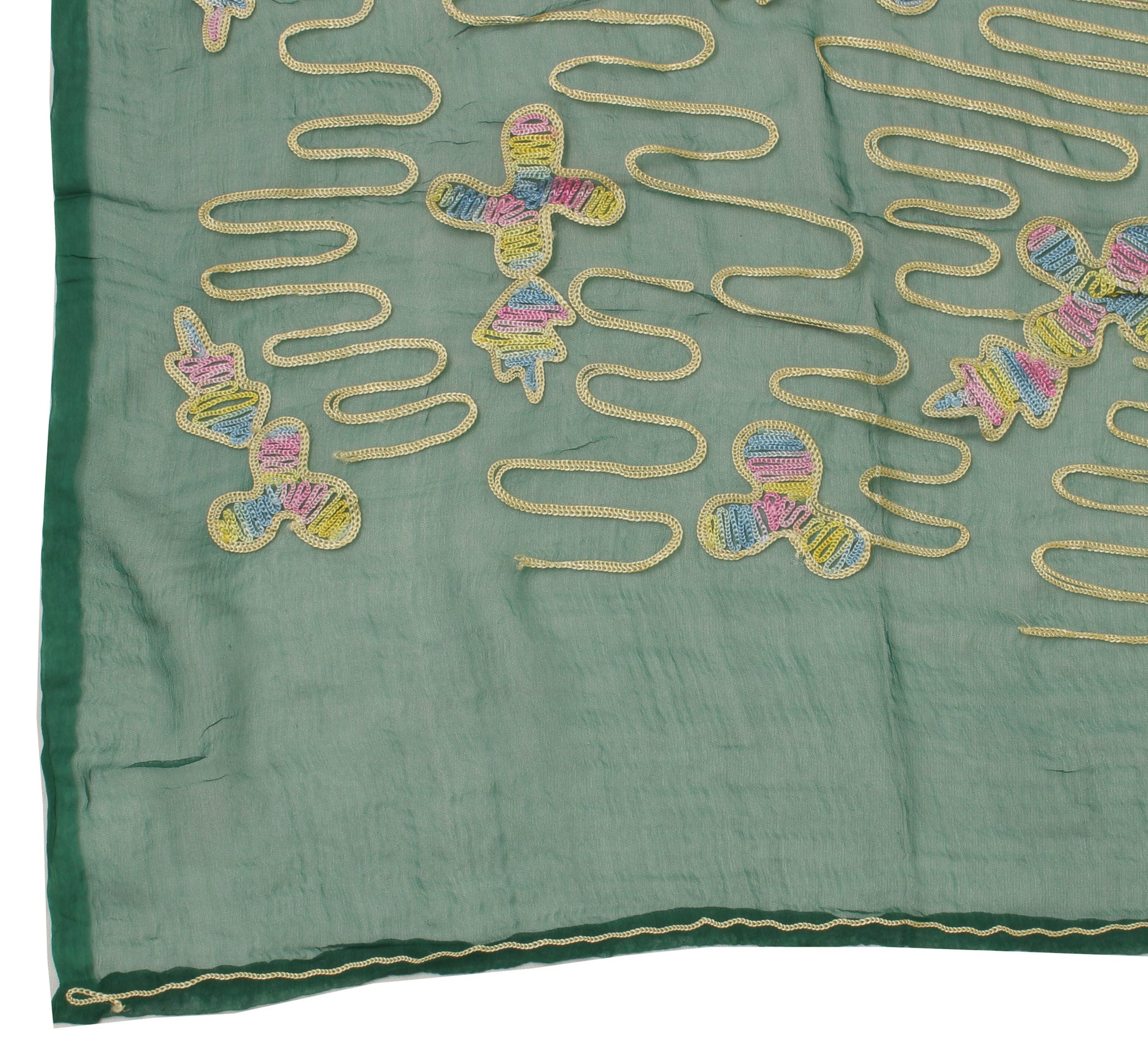 Sushila Vintage Green Dupatta Pure Chiffon Silk Embroidered Long Stole Hijab