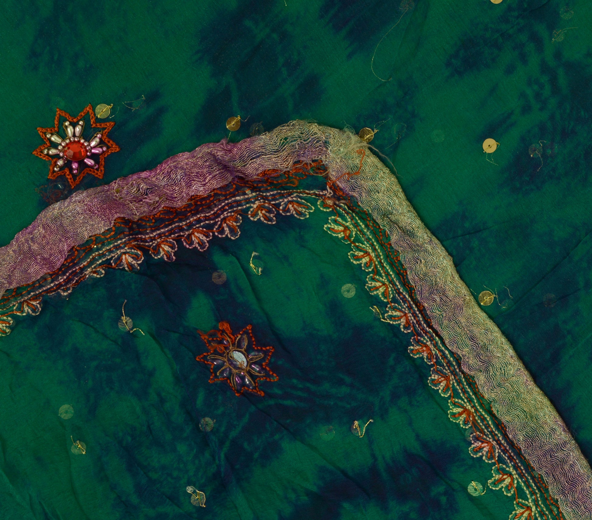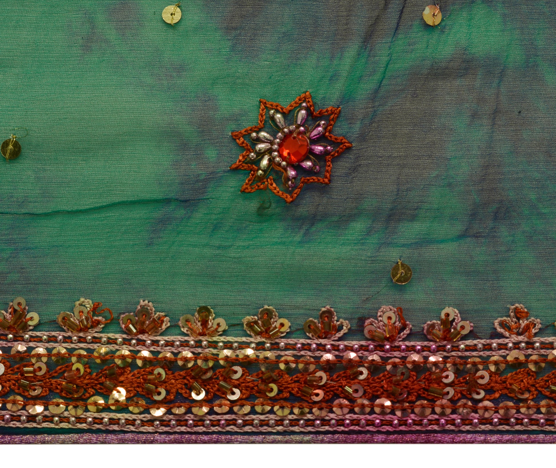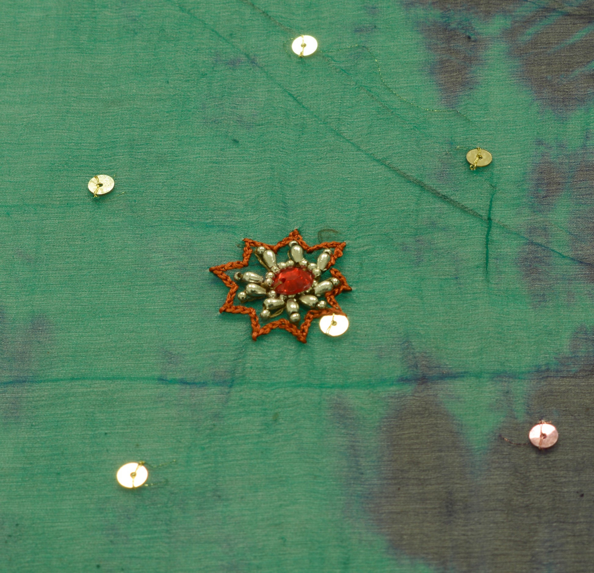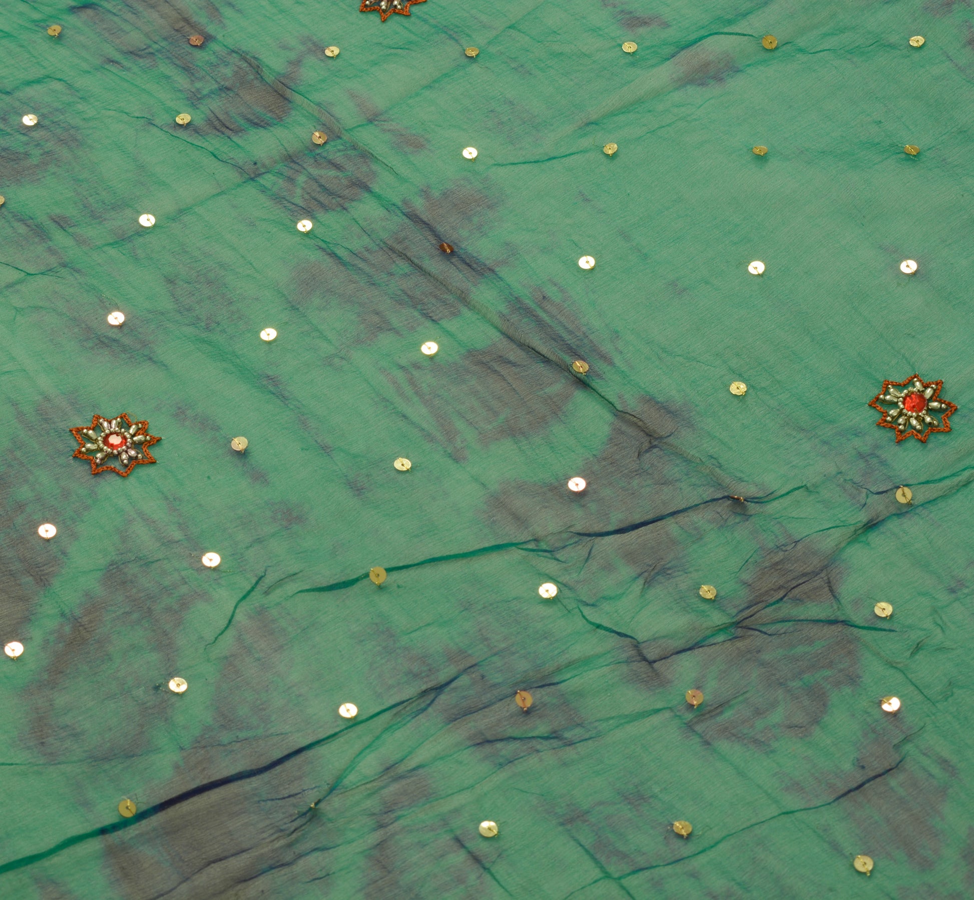 Sushila Vintage Green Dupatta Pure Chiffon SIlk Tie-Dye Sequins Work Long Stole