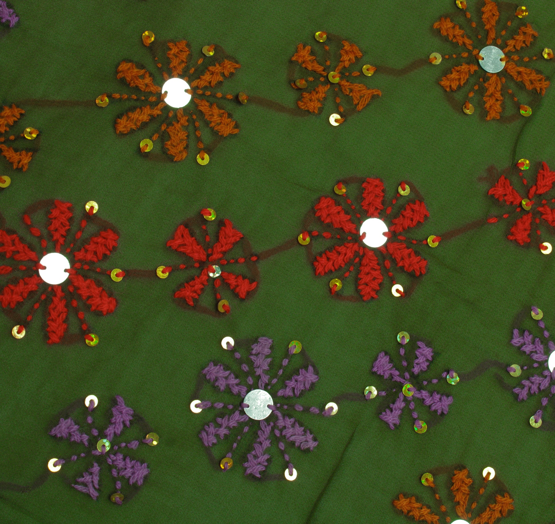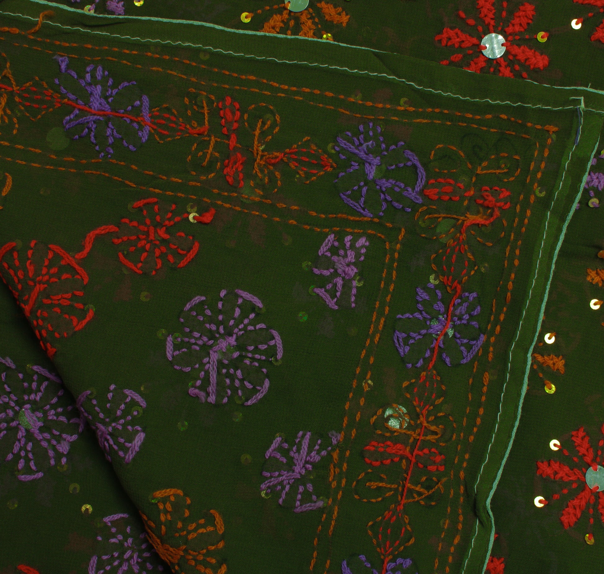 Sushila Vintage Green Dupatta Pure Georgette Phulkari Embroidered Long Stole