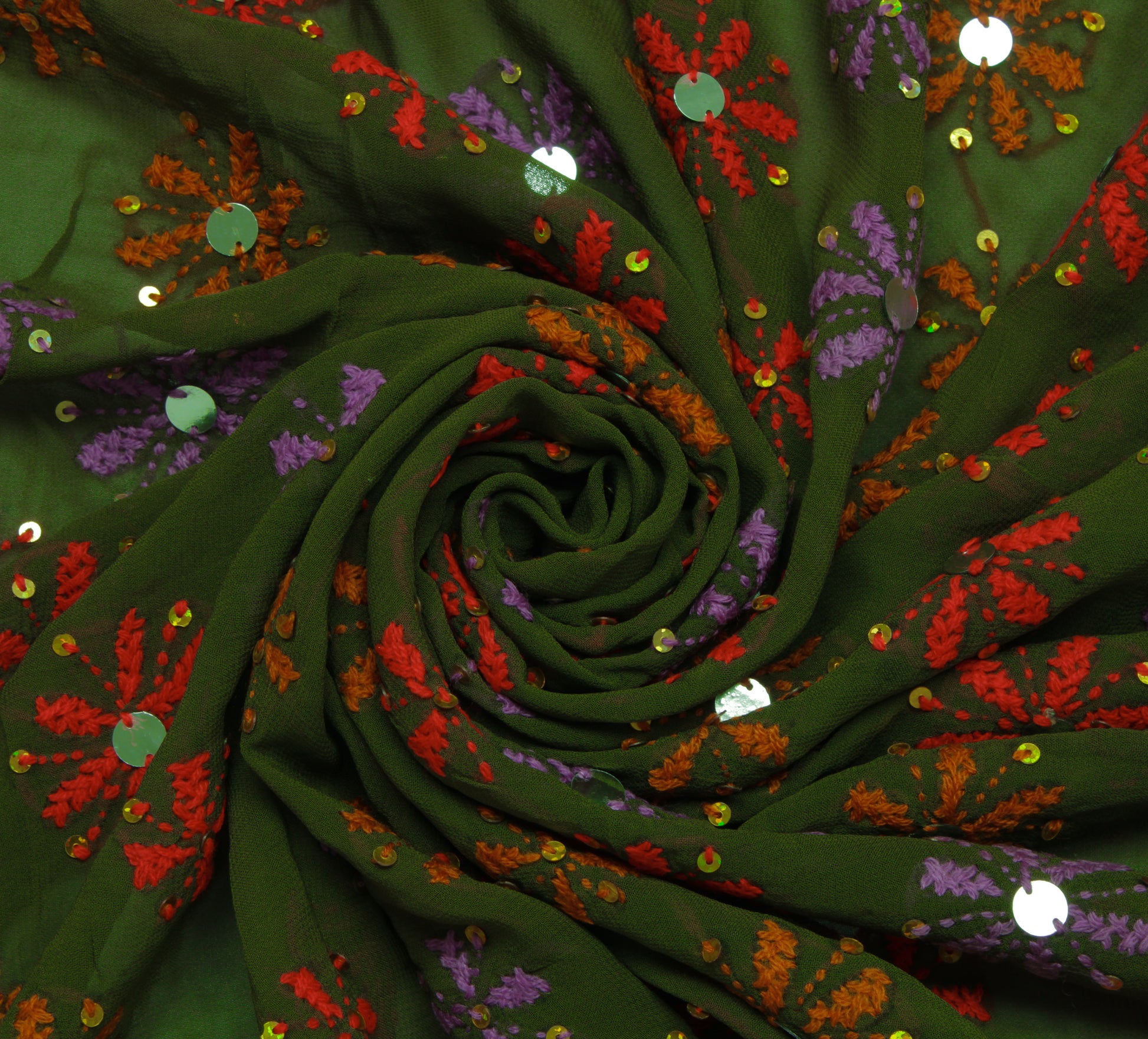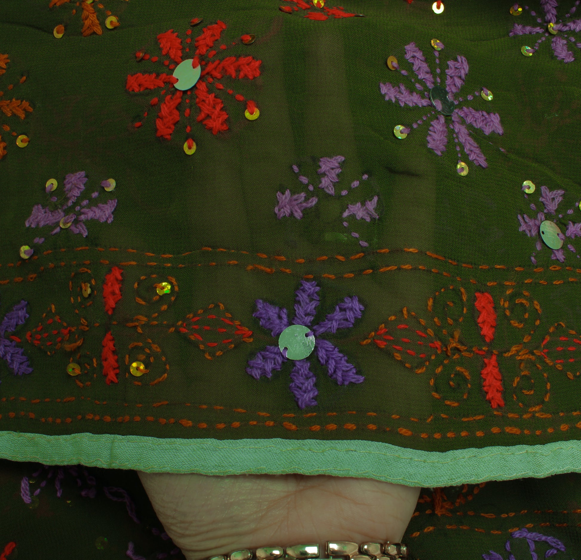 Step into a world of elegance with this richly textured Green Floral Dupatta, Scarf, Indian Long Stole, Veil, or Hijab, perfect for those who appreciate fine craftsmanship. Made from premium Pure Georgette Silk, this piece features intricate Hand Beaded, Mirror Work, Sequins Work & Phulkari Embroidered work, adding a touch of traditional charm to any outfit. The Green base beautifully complements the delicate Floral detailing, creating a truly timeless accessory.