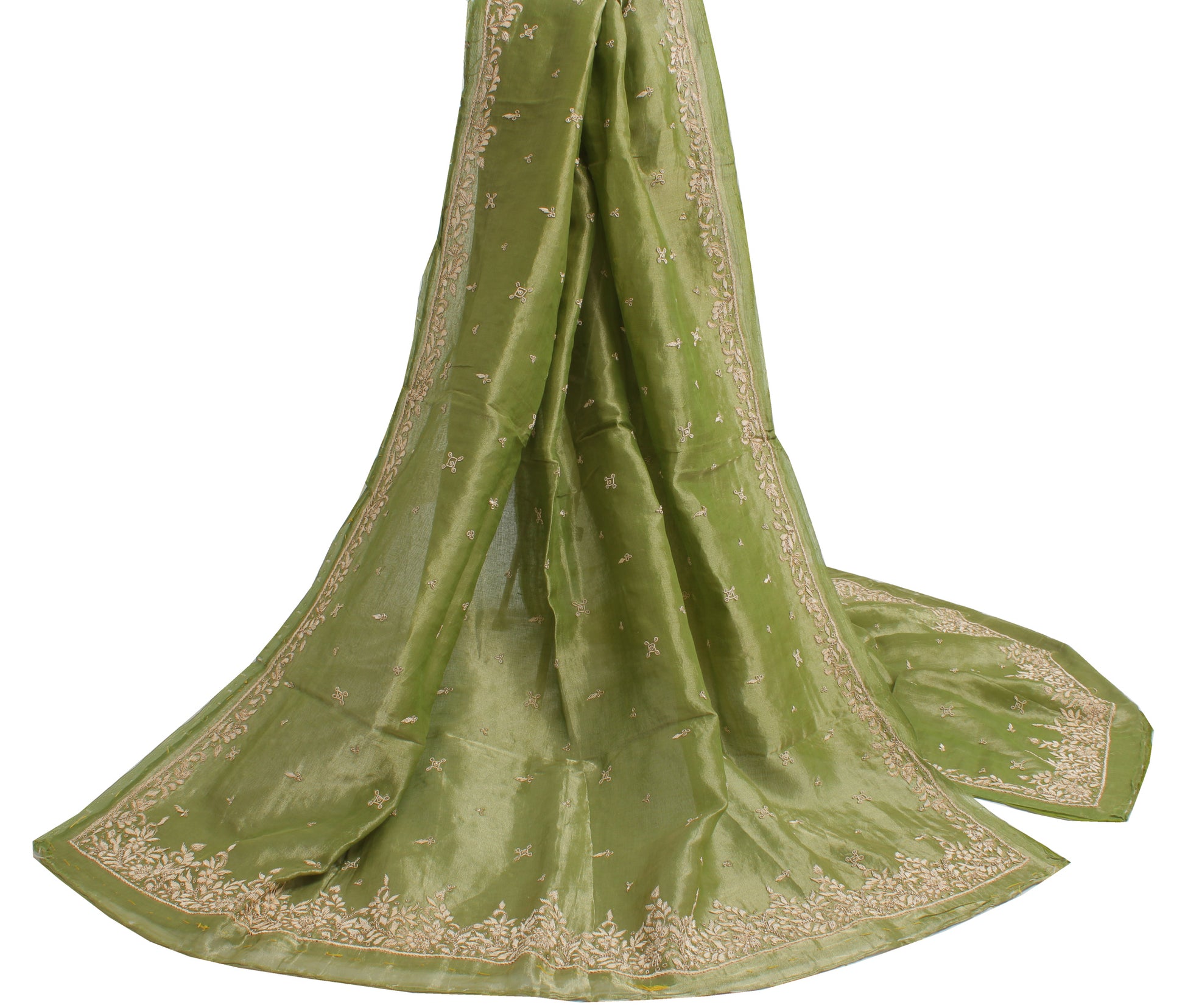 Step into a world of timeless elegance with this exquisite Green Floral Heavy Dupatta, also known as an Indian Long Stole, Scarves, Veil, or Hijab. Crafted from premium Pure Tissue Silk, this piece features intricate Hand Beaded Zardozi Work, Glass Beads & Embroidered work that captures the rich cultural heritage of India. The Green base beautifully complements the delicate Floral details, making it a perfect choice for weddings, festivals, or creative upcycling projects.