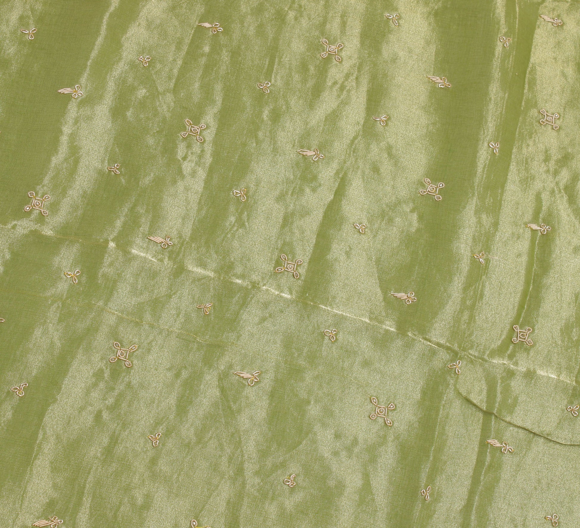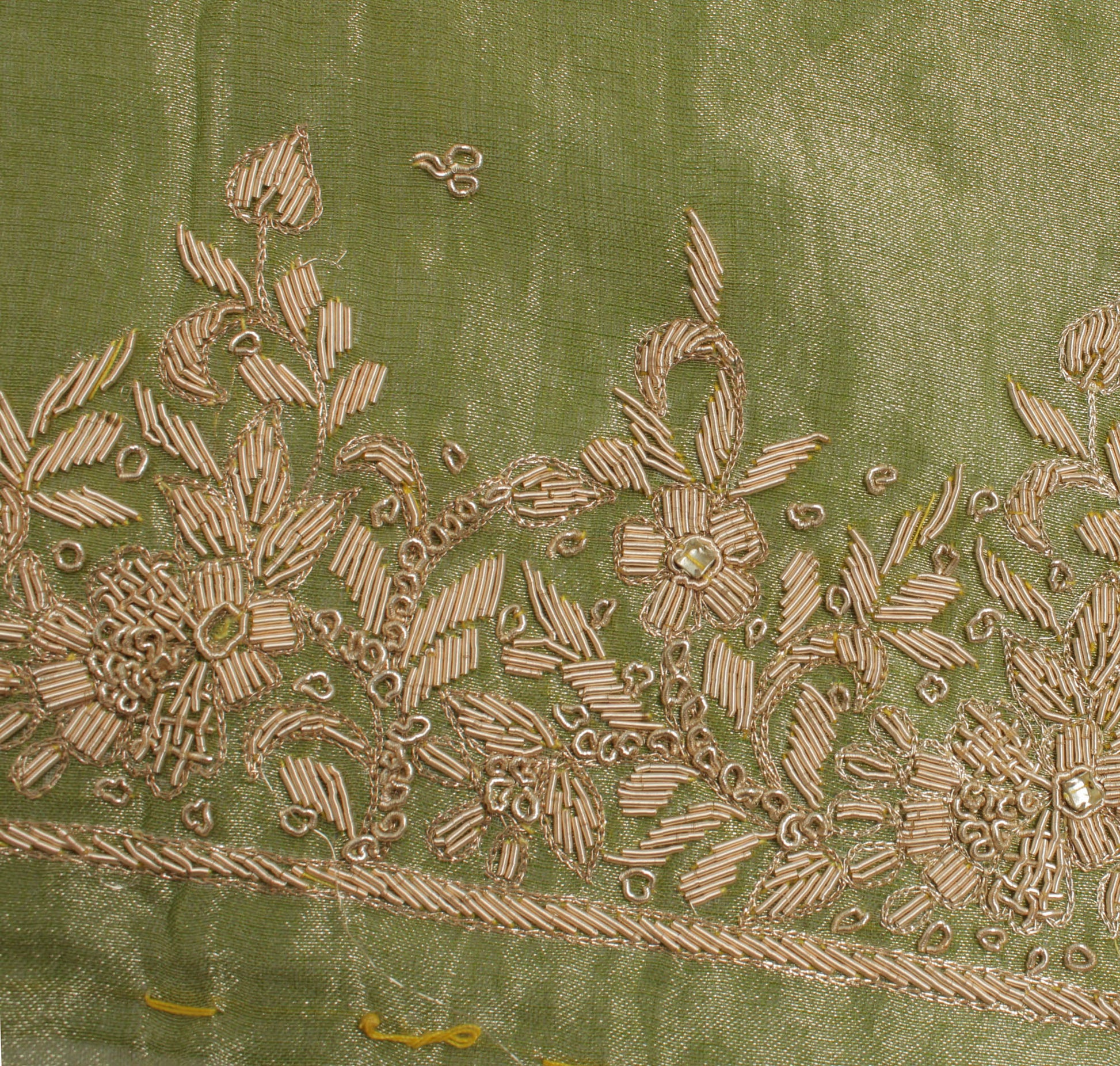 Sushila Vintage Green Heavy Dupatta Pure Tissue Silk Hand Beaded Long Stole Veil
