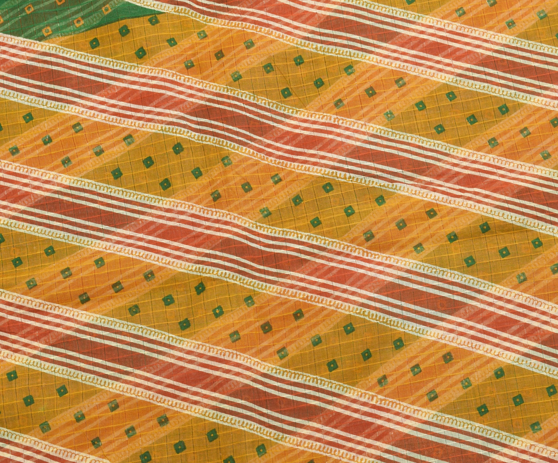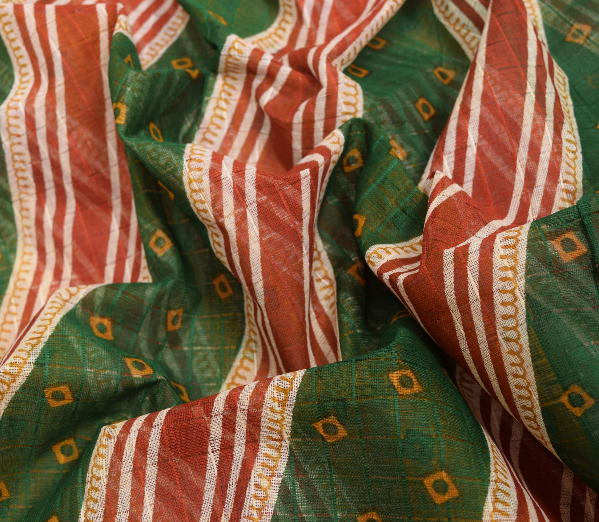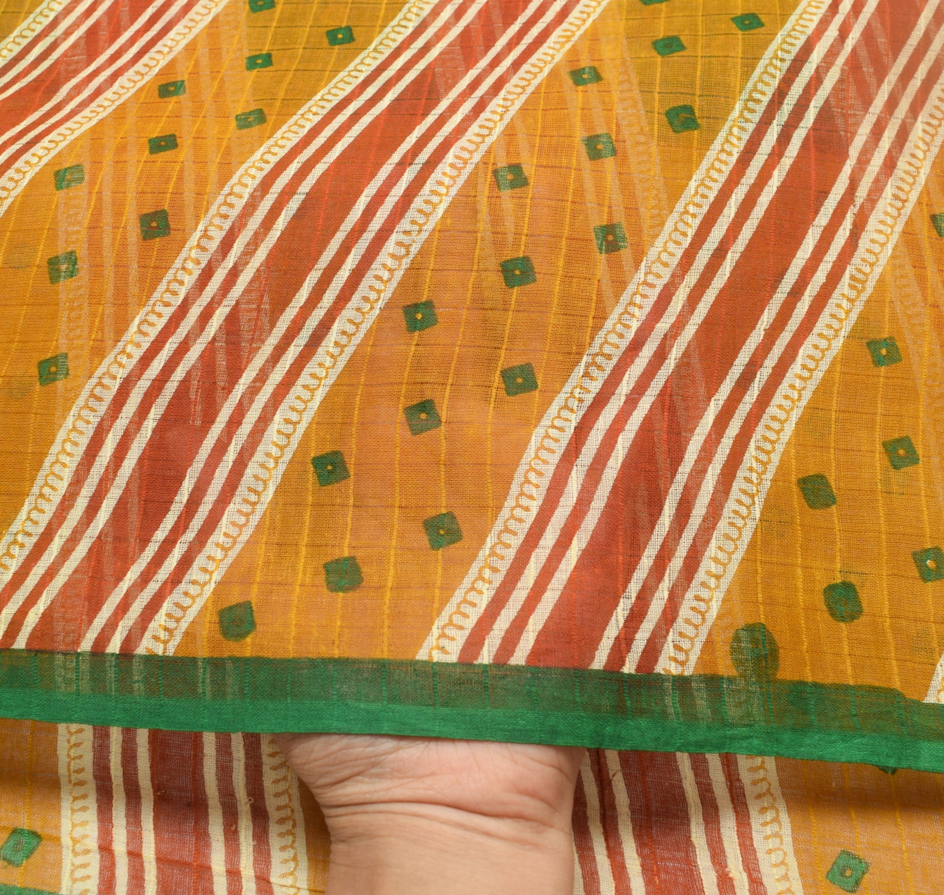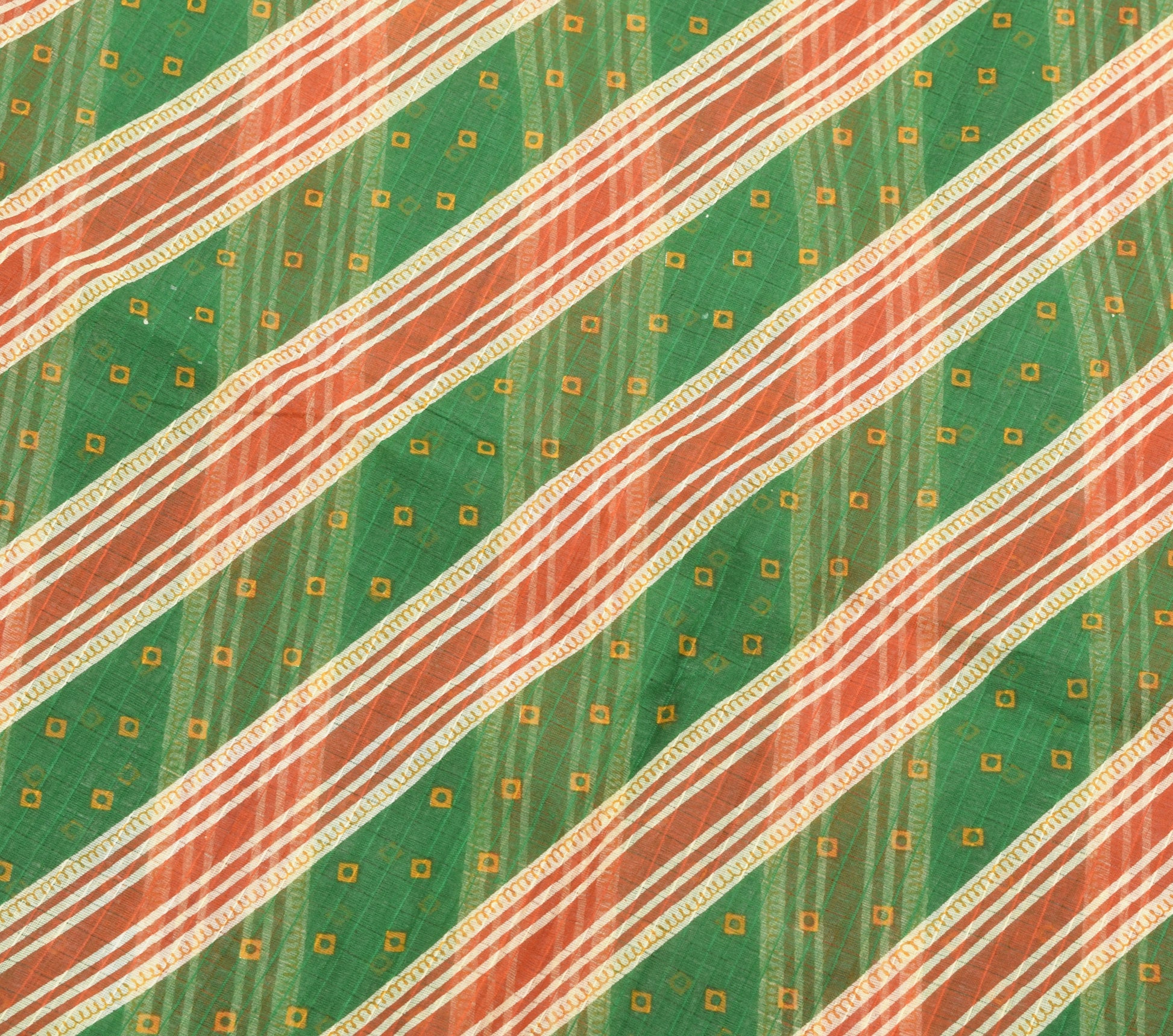Sushila Vintage Green Indian Saree 100%Pure Cotton Bandhani Printed Craft Fabric