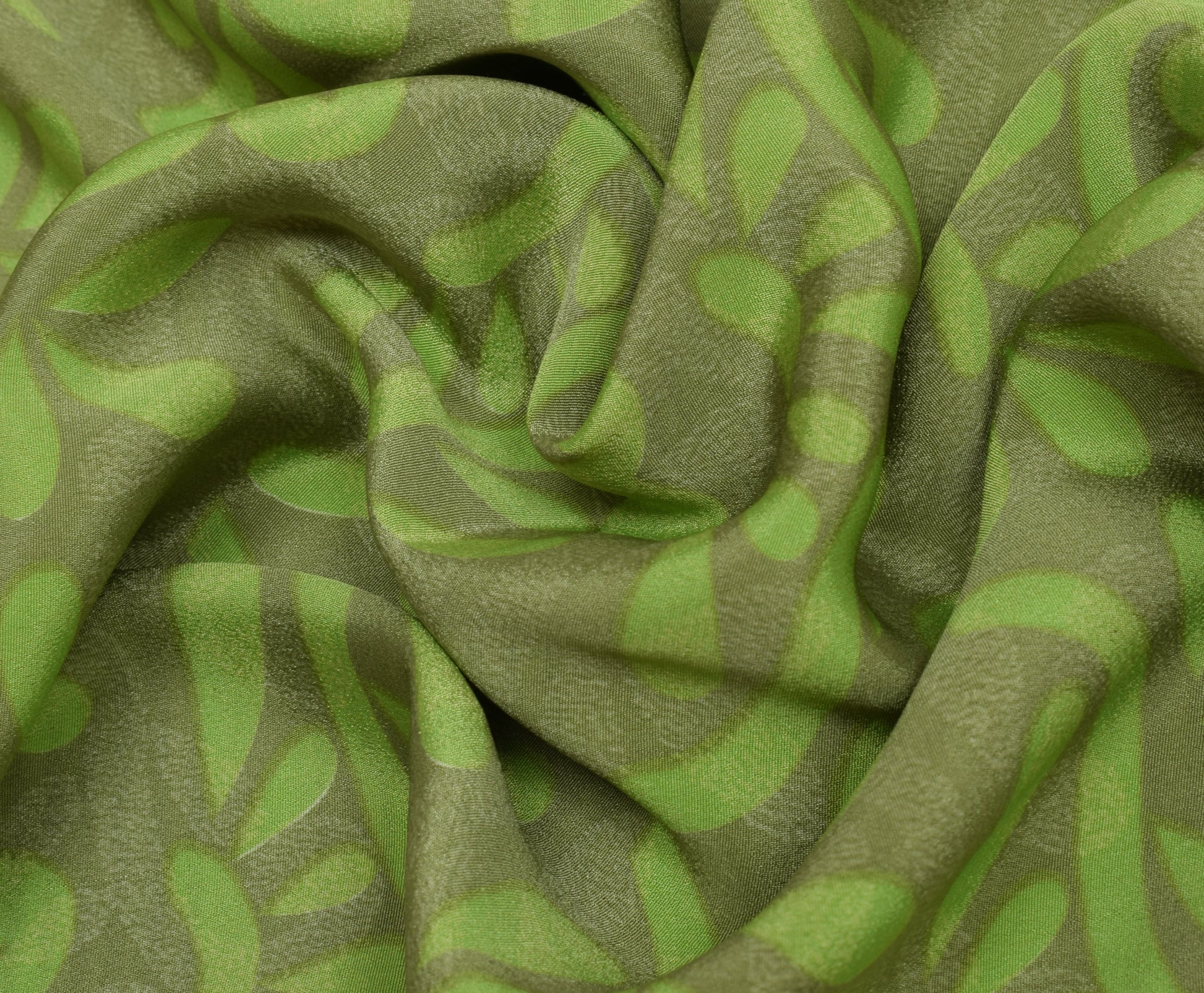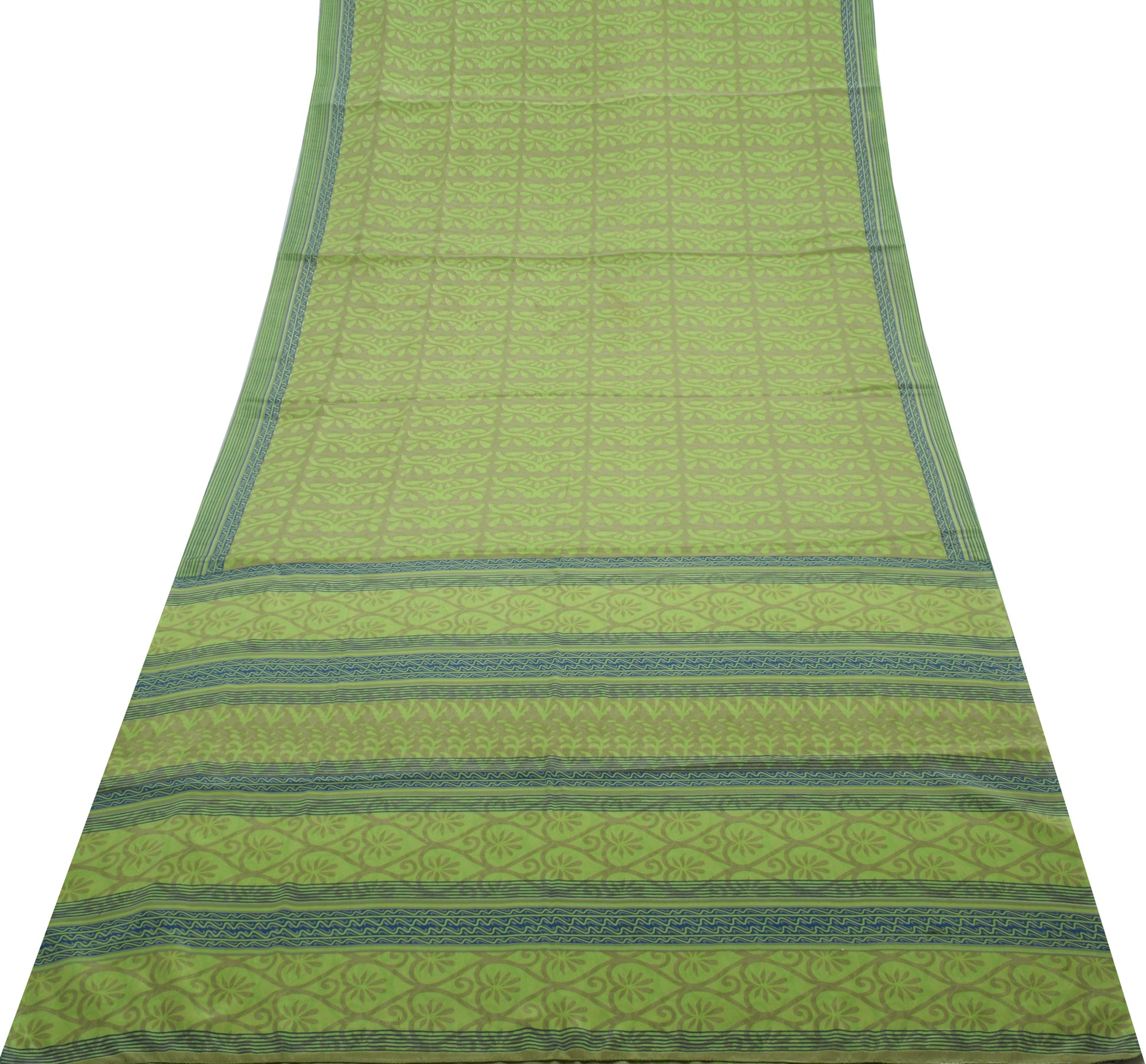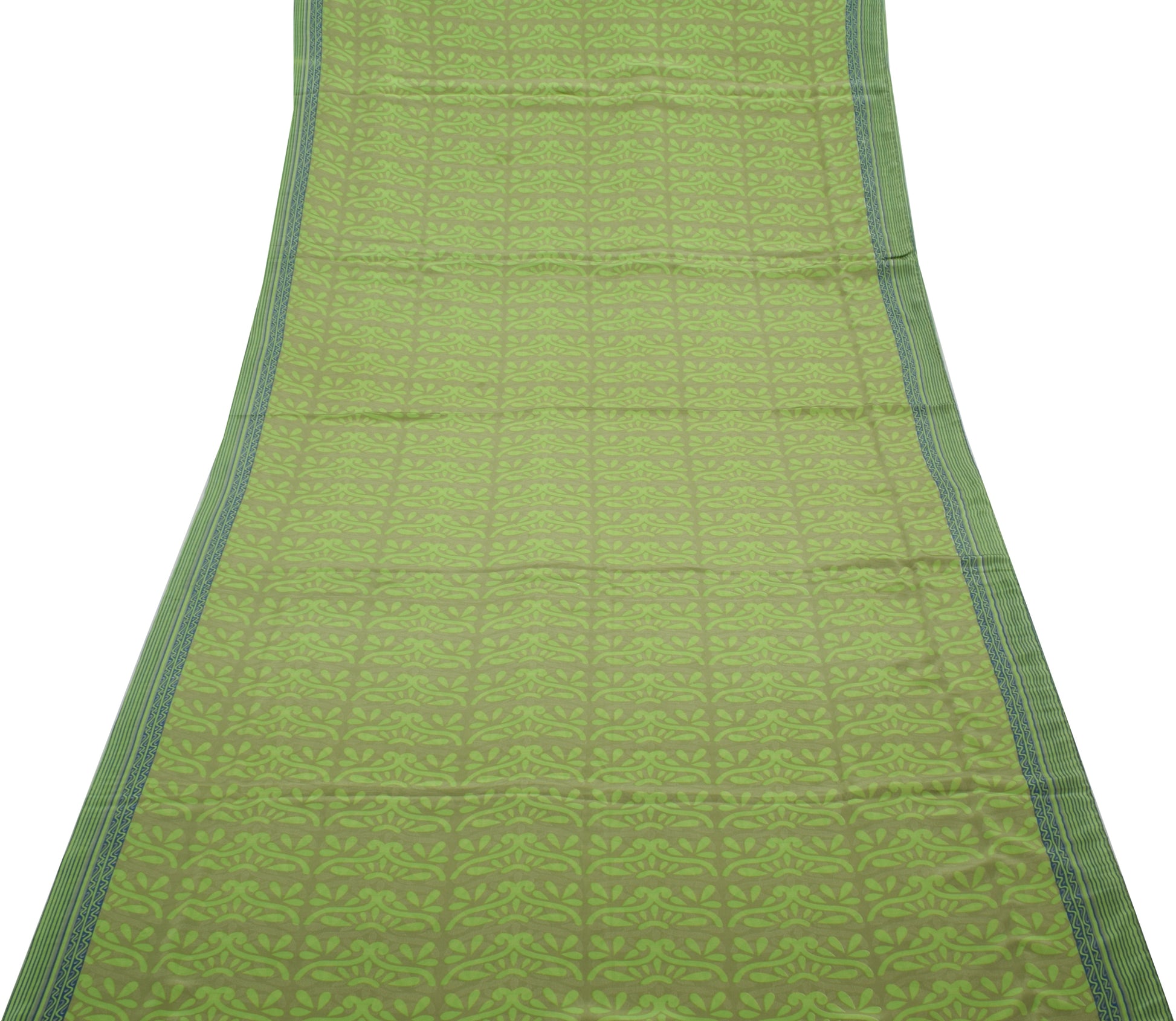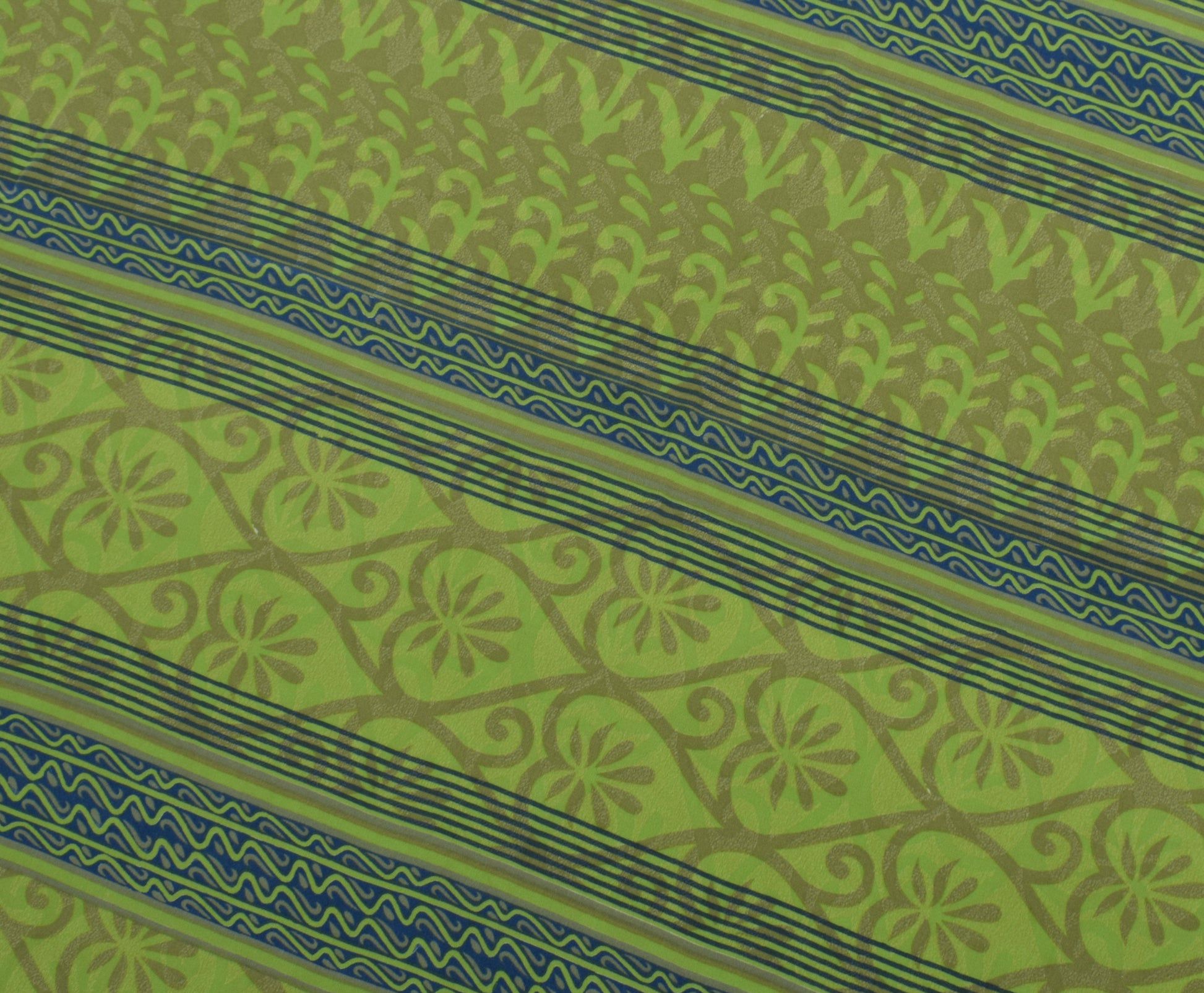 Sushila Vintage Green Indian Saree Blend Crepe Silk Printed Floral Soft Fabric