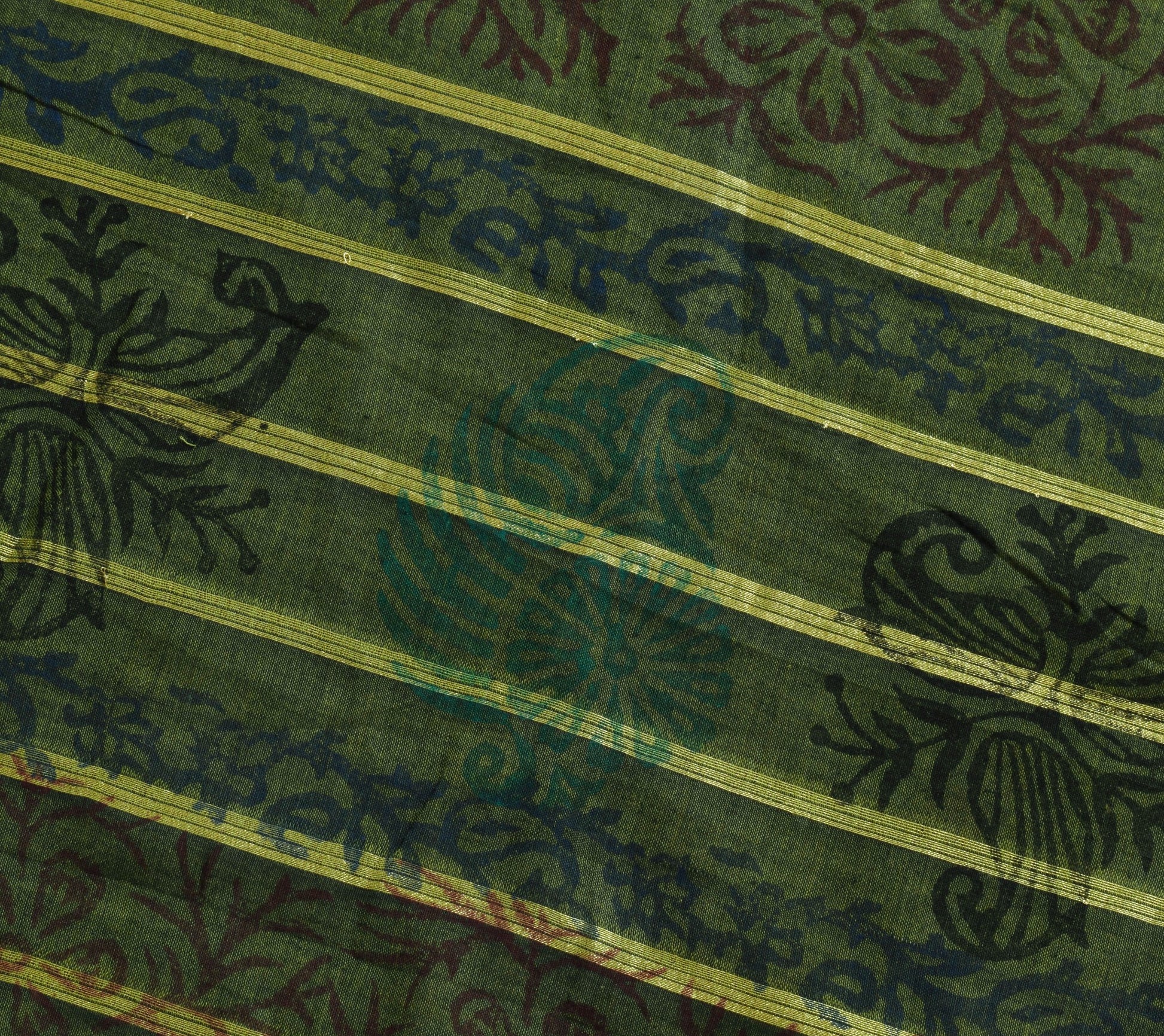 Sushila Vintage Green Saree 100% Pure Cotton Hand Block Printed Craft Fabric