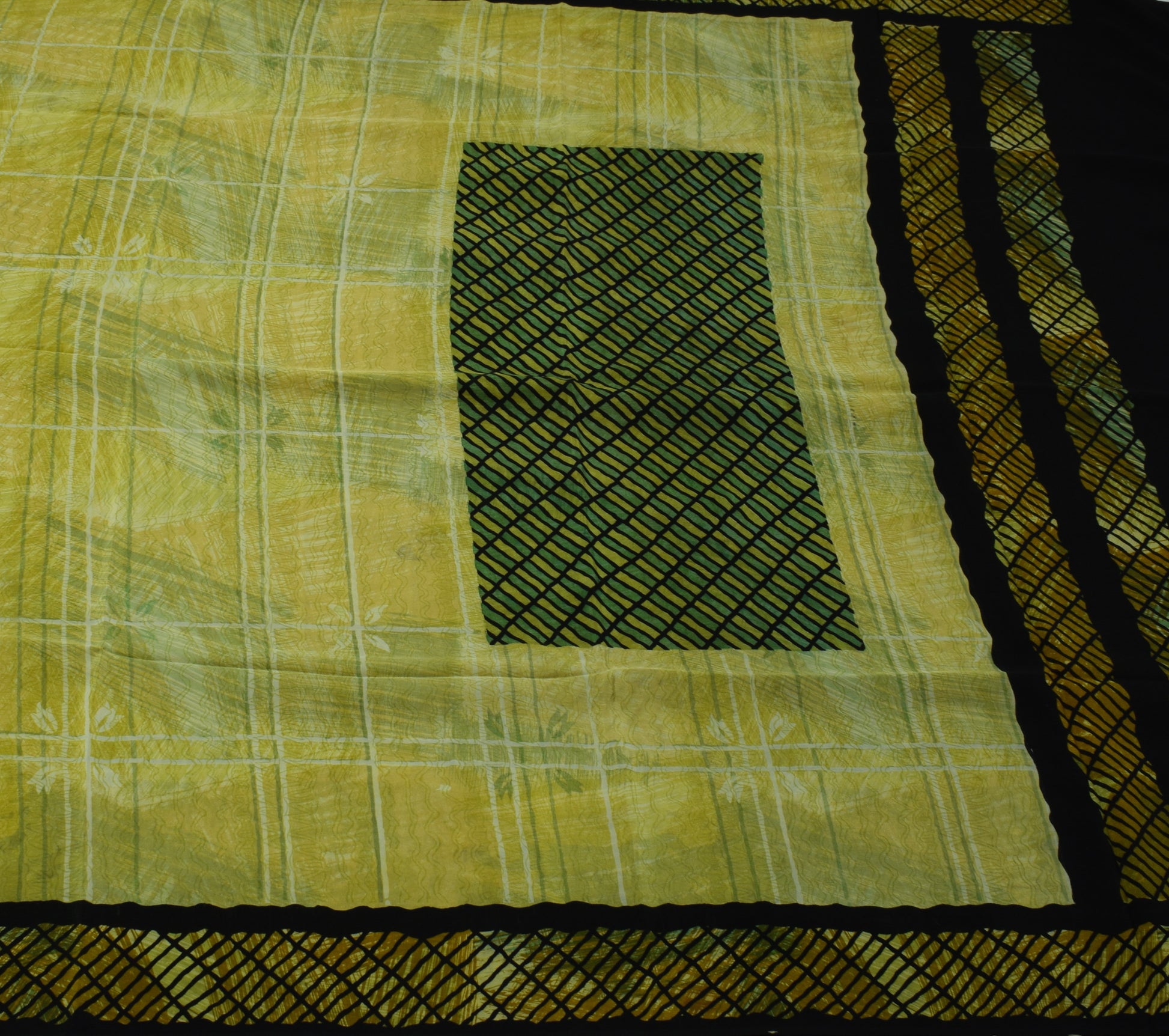Sushila Vintage Green Saree 100% Pure Crepe Silk Printed 5 Yard Soft Fabric