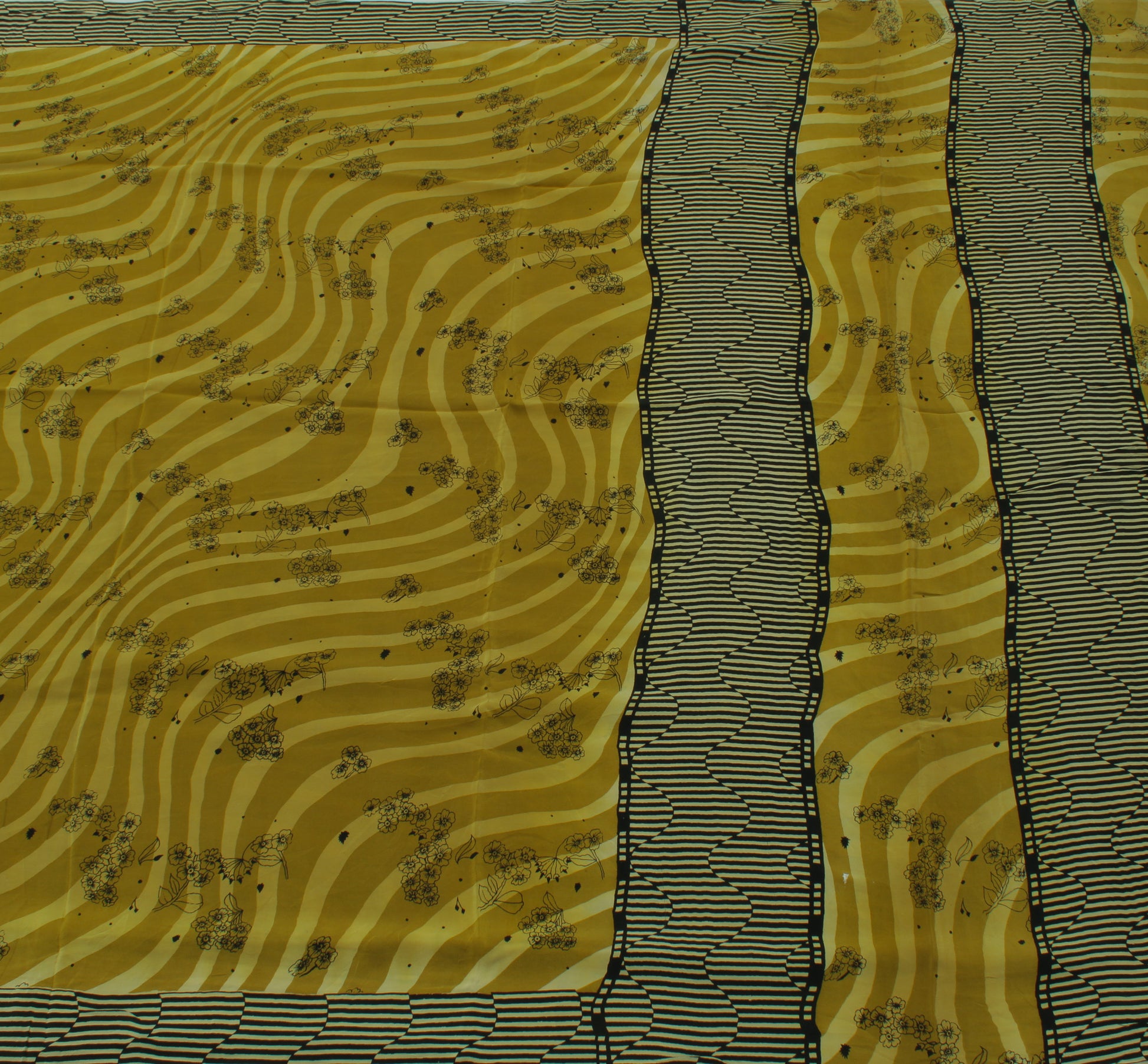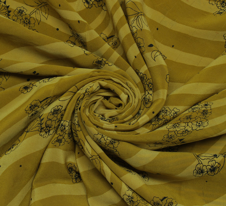 Sushila Vintage Green Saree 100% Pure Crepe Silk Printed Floral Soft Fabric