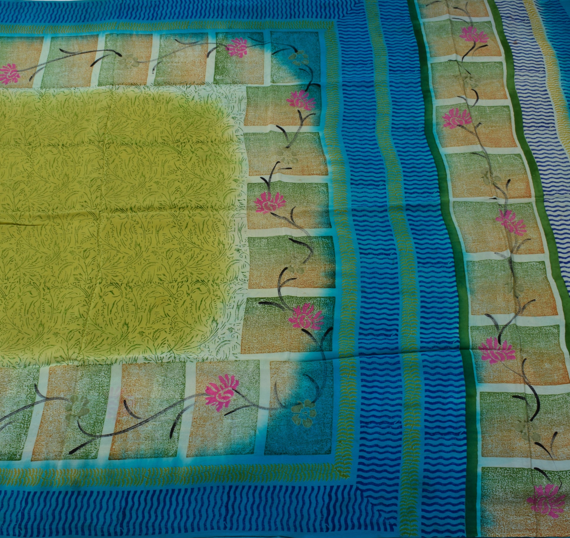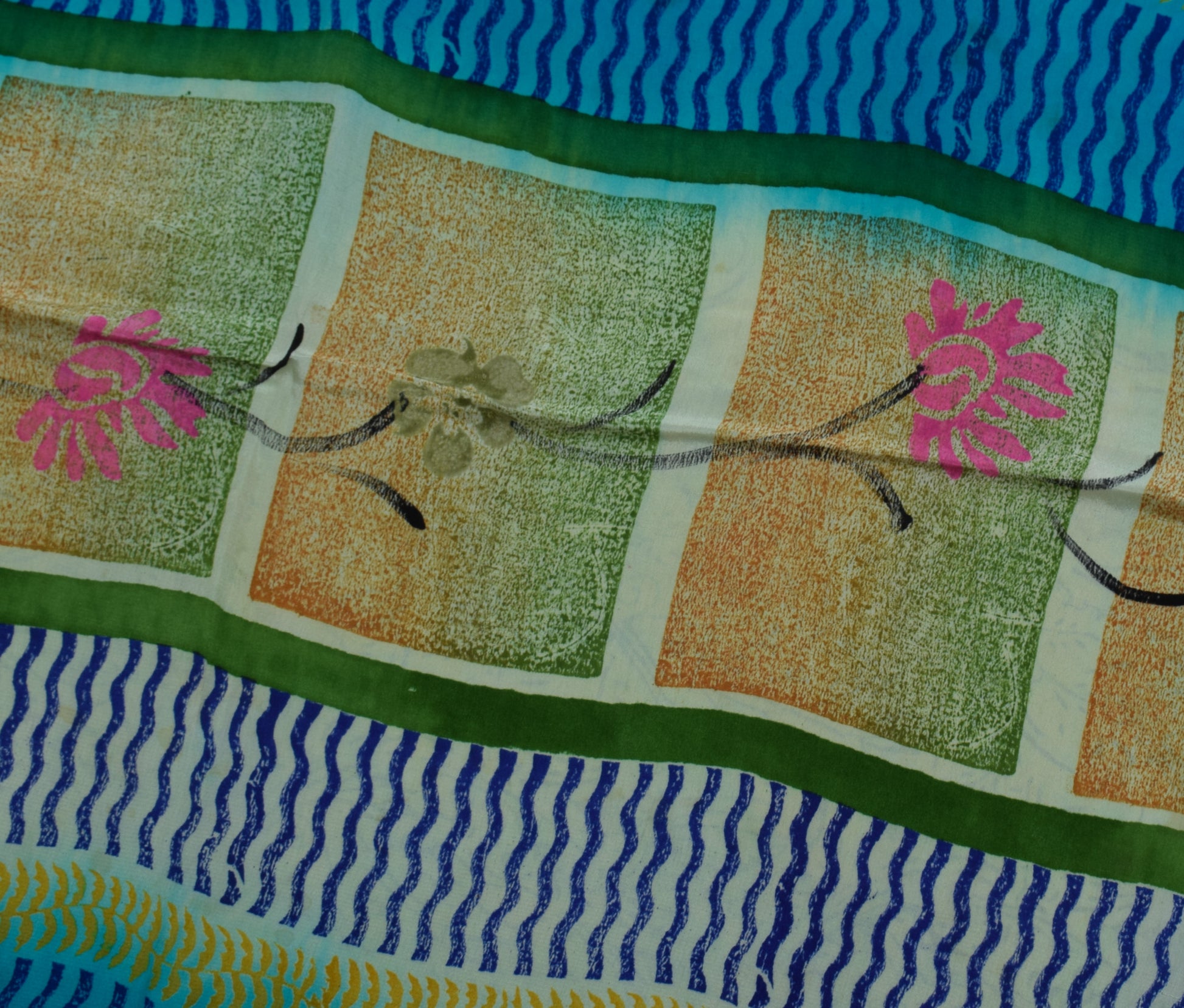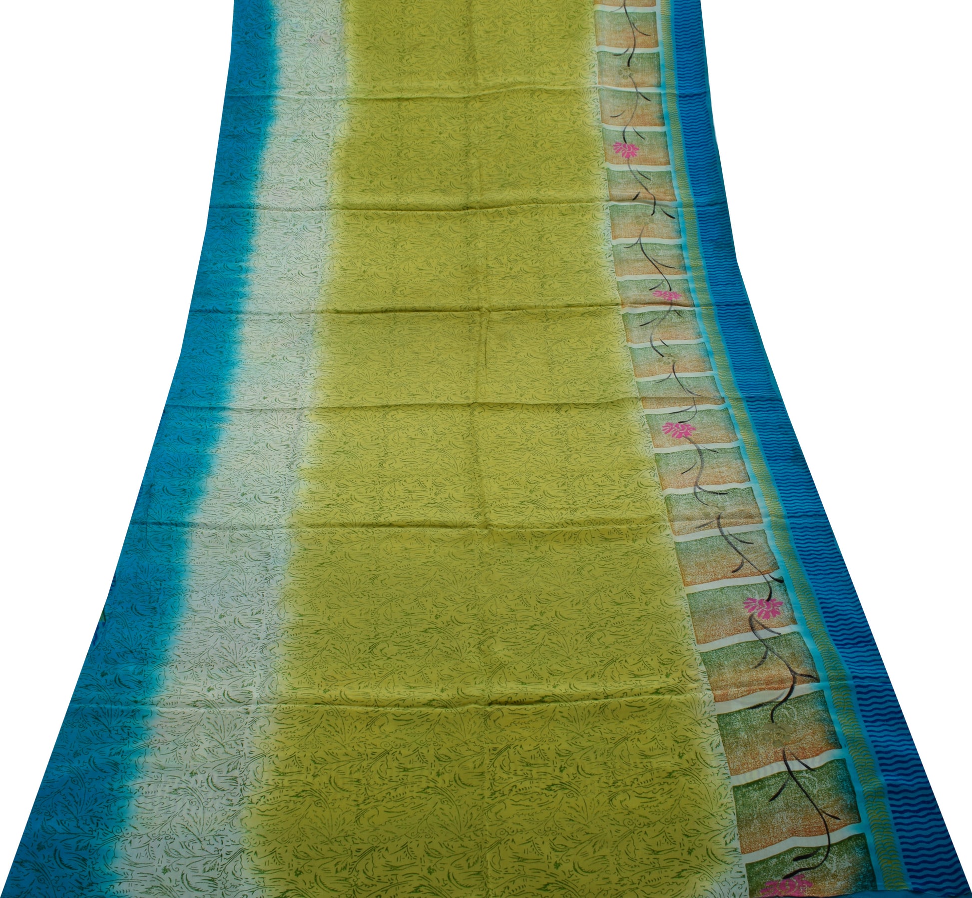 Sushila Vintage Green Saree 100% Pure Crepe Silk Printed Floral Soft Sari Fabric