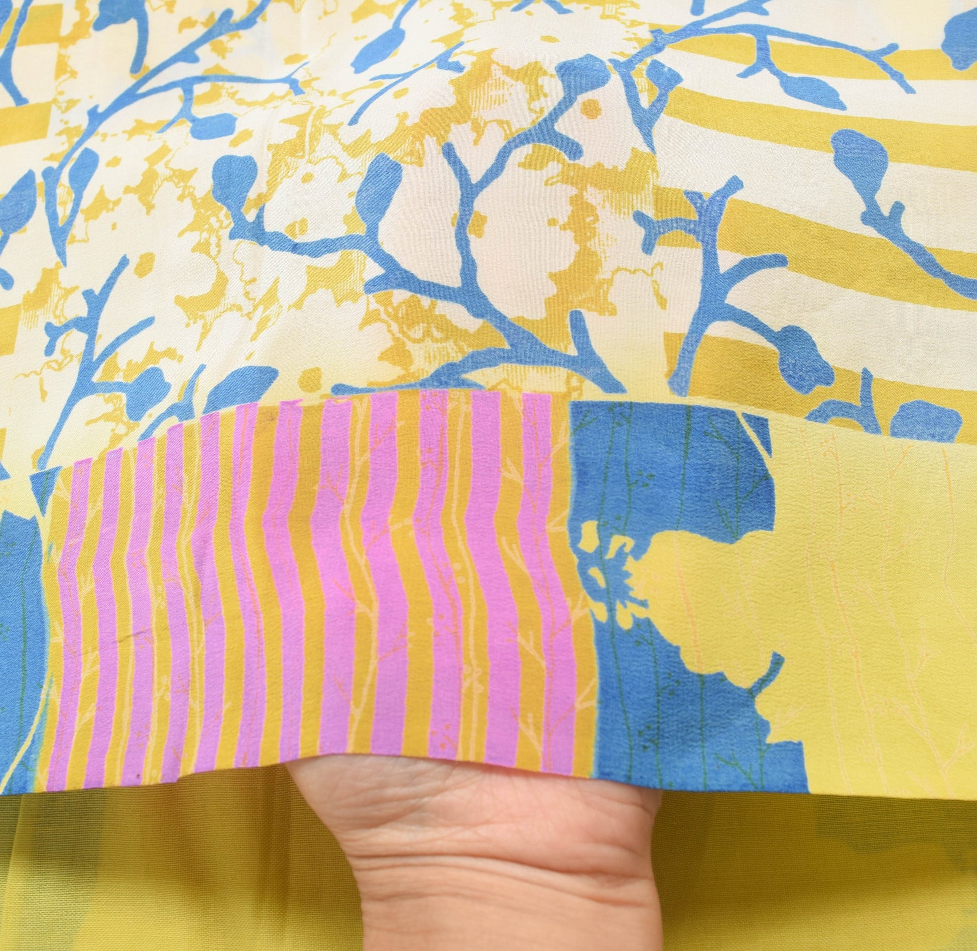 Embrace traditional sophistication in this green 100% pure crepe silk saree, showcasing timeless floral patterns and elegant printed embellishments. Crafted from pure, breathable 100% pure crepe silk, this sarI boasts a luxurious drape and enduring appeal. Measuring roughly 198 inch in length and 45 inch in width, it offers versatile styling—whether worn traditionally or repurposed into bespoke dresses, home décor, or creative crafts. Weighing about 360 grams (actual product weight), it falls gracefully, making it ideal for anyone who appreciates the charm of vintage textiles.