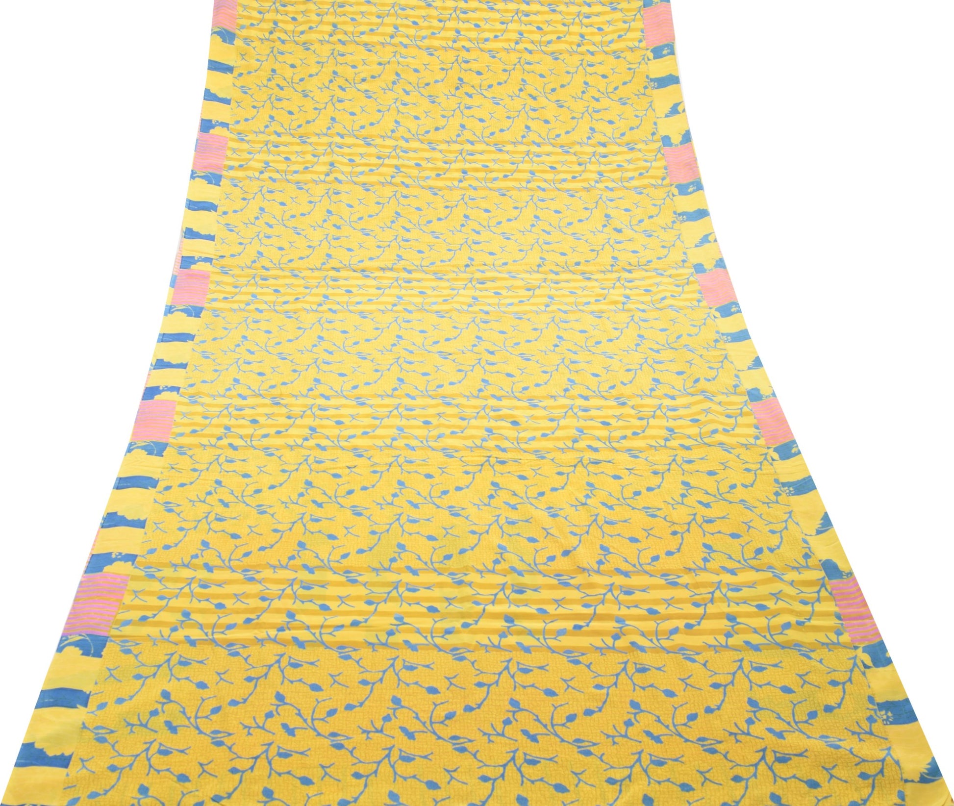 Sushila Vintage Green Saree 100% Pure Crepe Silk Printed Indian Soft Fabric