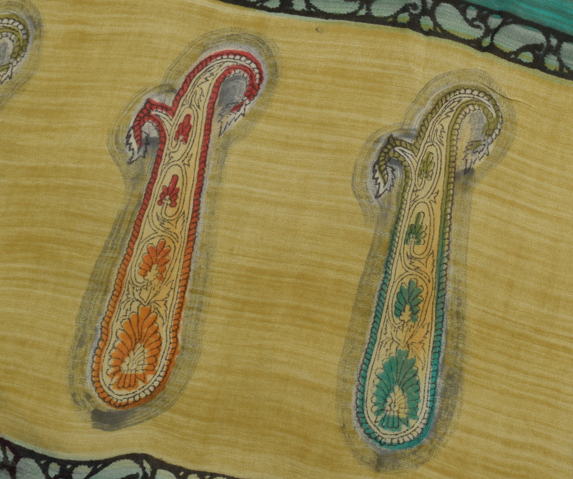 Embrace the charm of vintage textiles with this Green 100% Pure Georgette Silk saree, showcasing graceful Paisley motifs and intricate Printed embellishments. It is perfect for special occasions, creative repurposing, or as a beautiful heirloom gift. Measuring approximately 192 Inch in length and 44 Inch in width, this sari offers versatile styling options. It is lightweight, weighing just 356 Grams (Actual Product weight), making it easy to drape and carry for long hours. The natural breathability and luxurious drape of 100% pure georgette silk make it a prized choice for those who appreciate fine craftsmanship and vintage fashion.