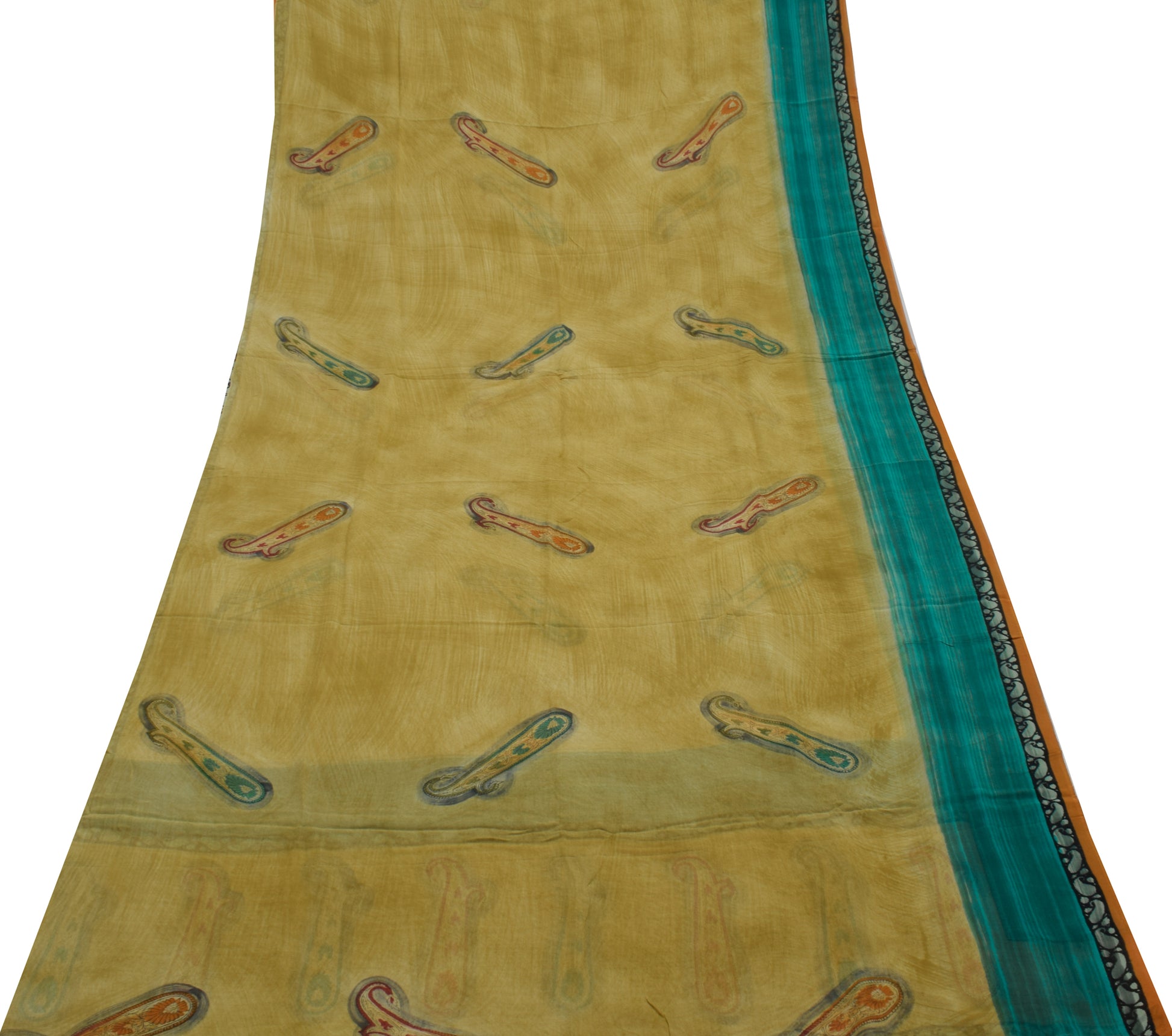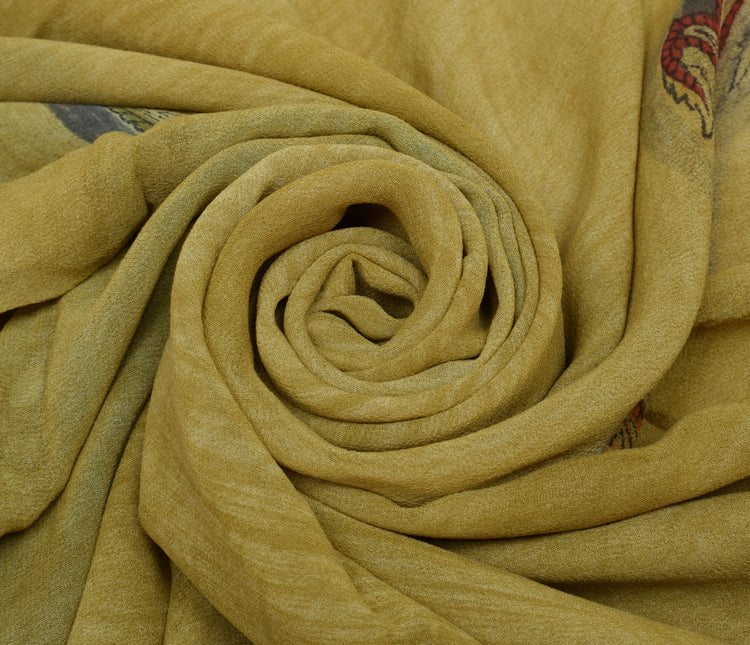 Sushila Vintage Green Saree 100% Pure Georgette Silk Printed Craft 5 Yard Fabric