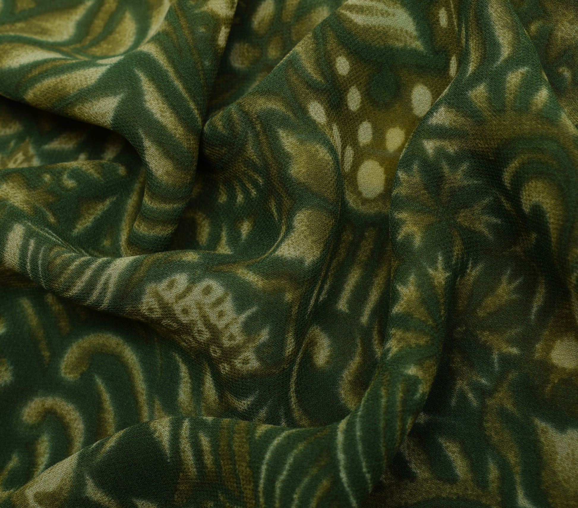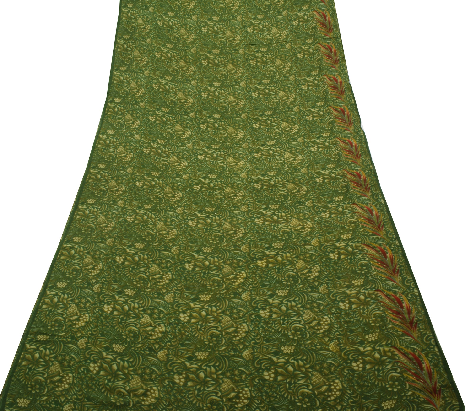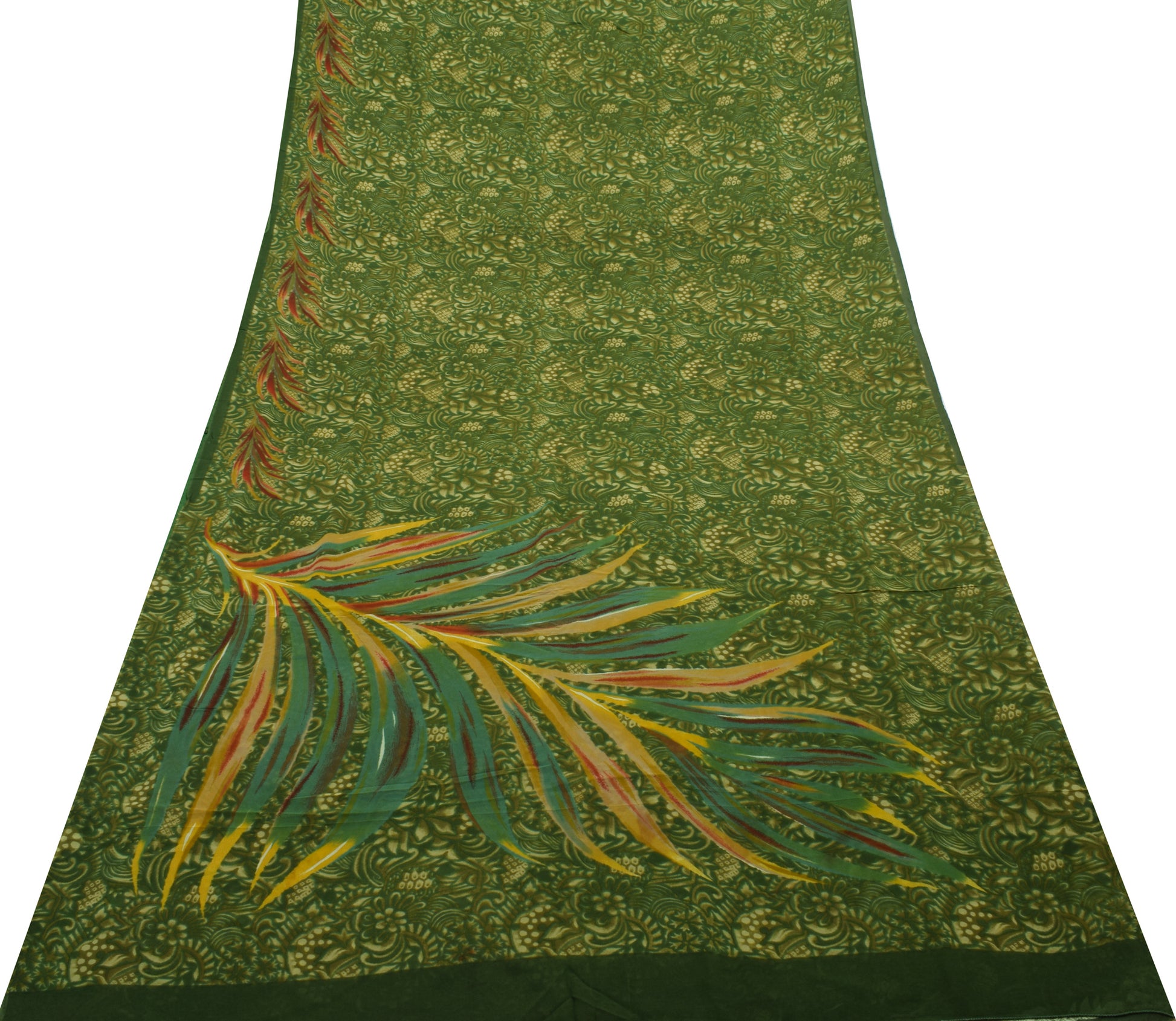 Sushila Vintage Green Saree 100% Pure Georgette Silk Printed Floral Craft Fabric