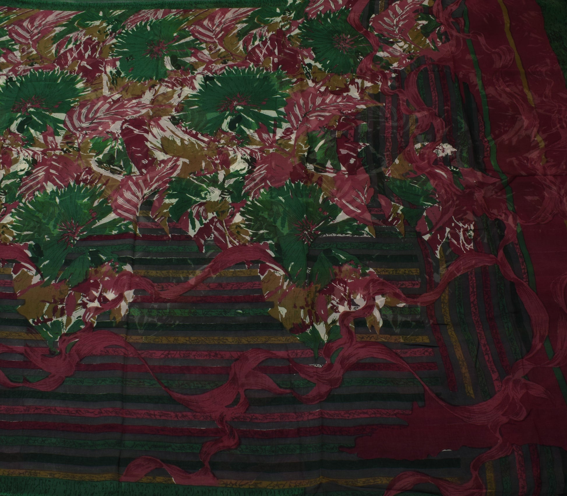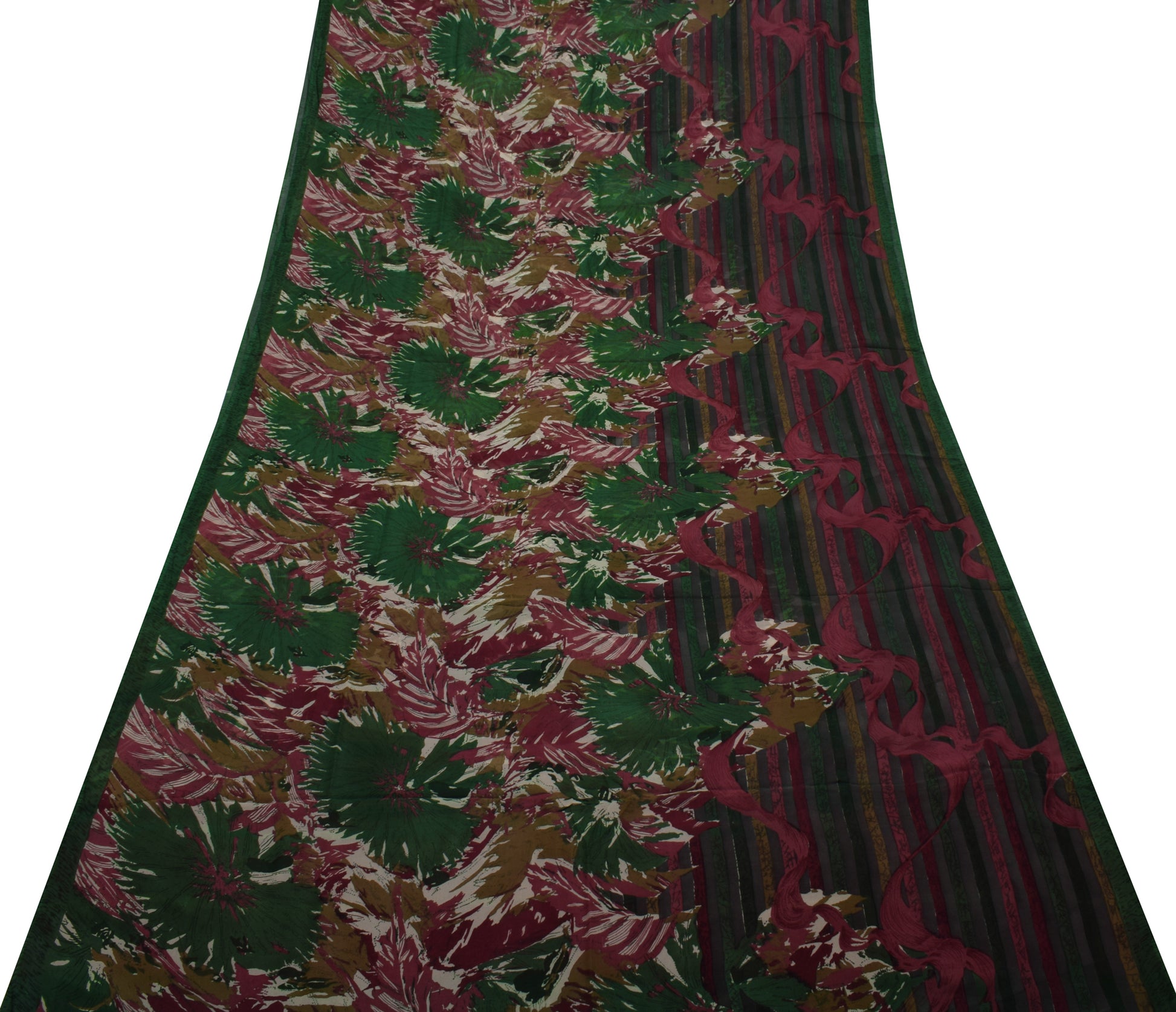 Sushila Vintage Green Saree 100% Pure Georgette Silk Printed Floral Craft Fabric