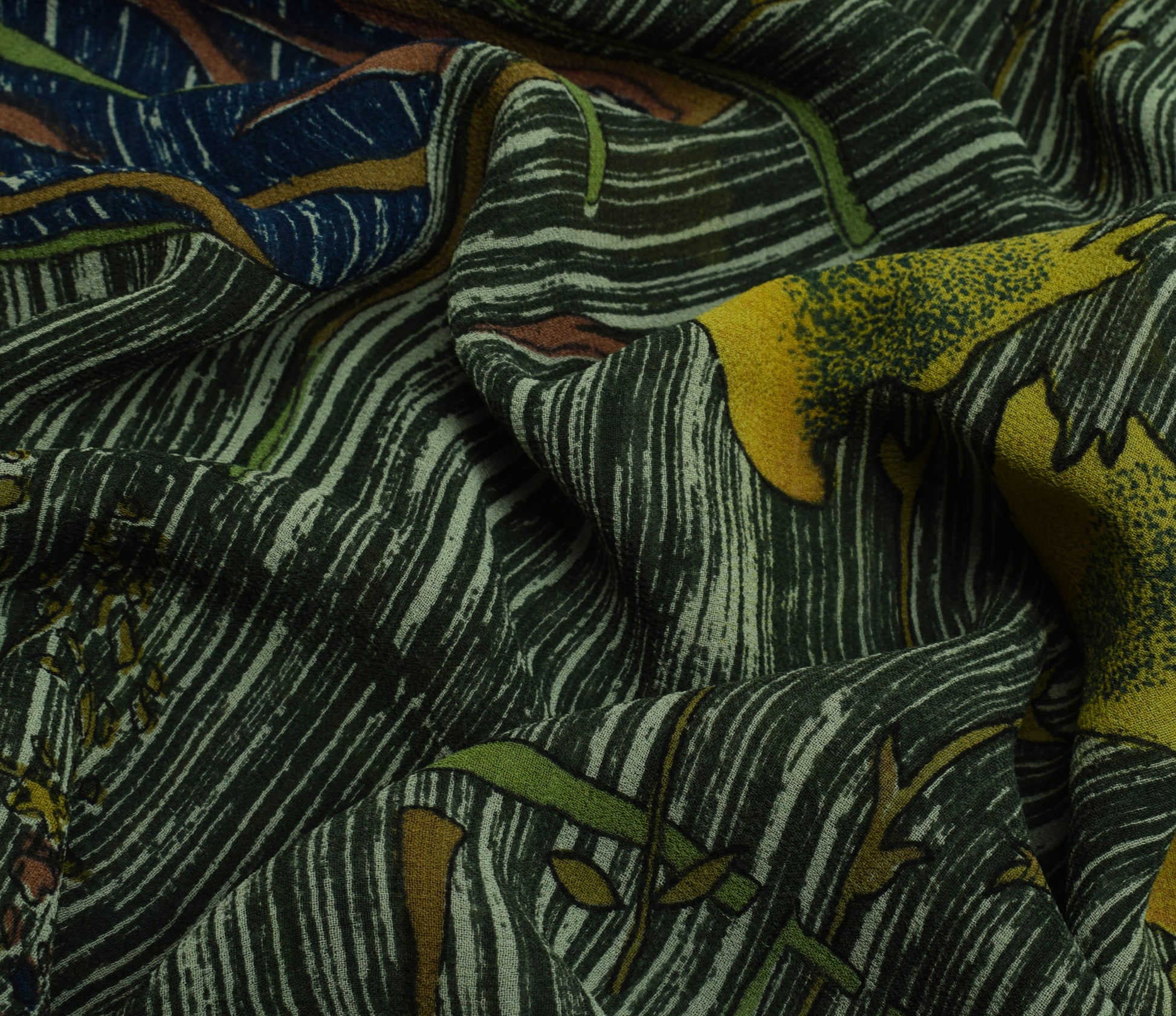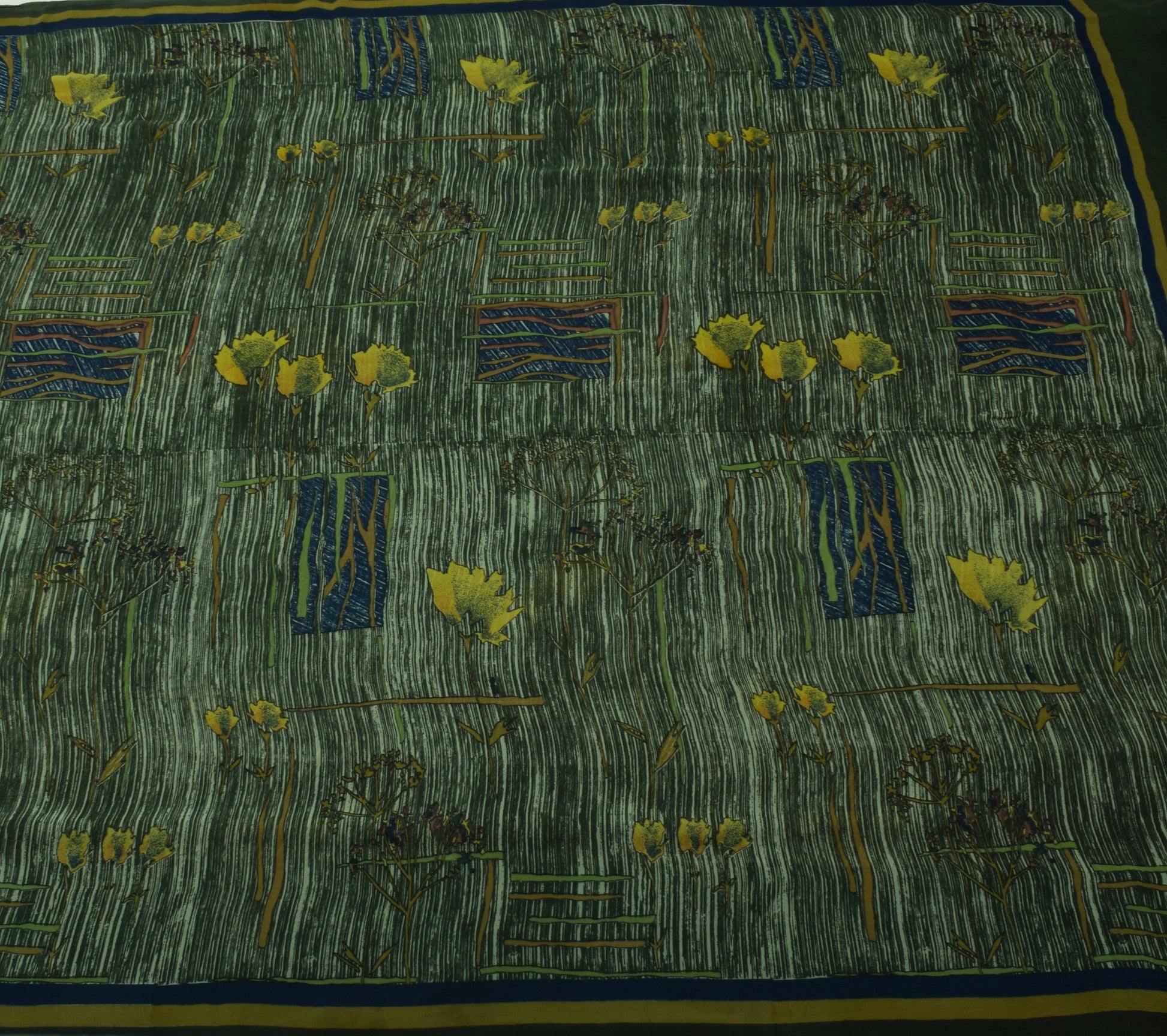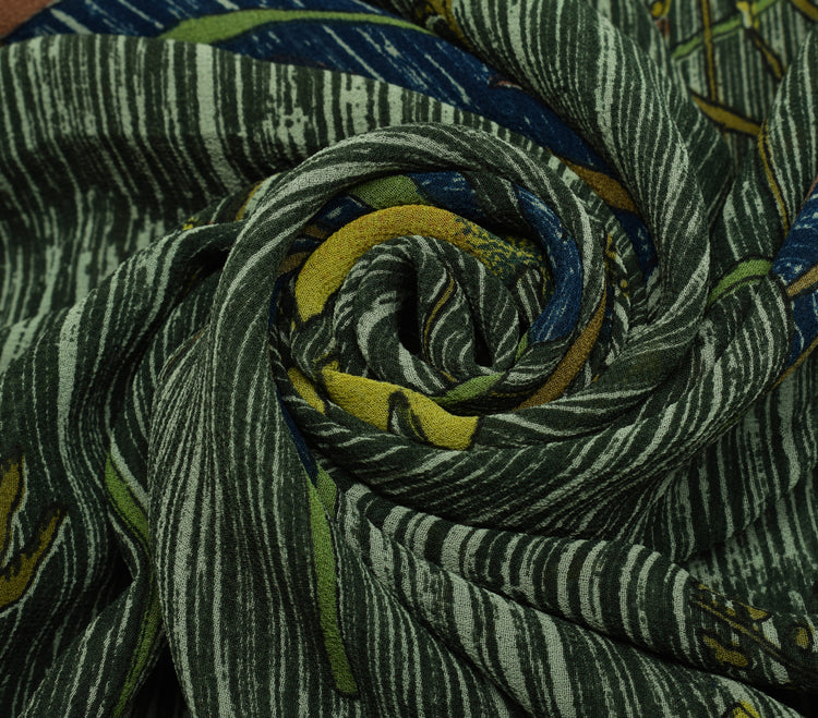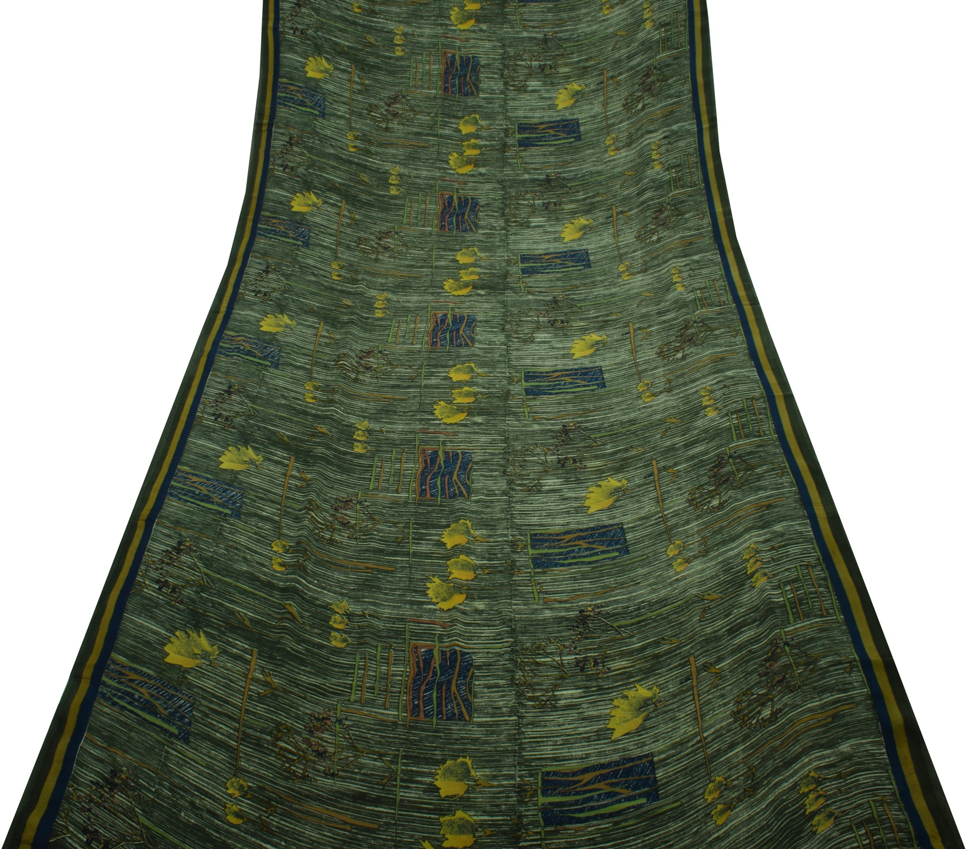 Sushila Vintage Green Saree 100% Pure Georgette Silk Printed Floral Craft Fabric