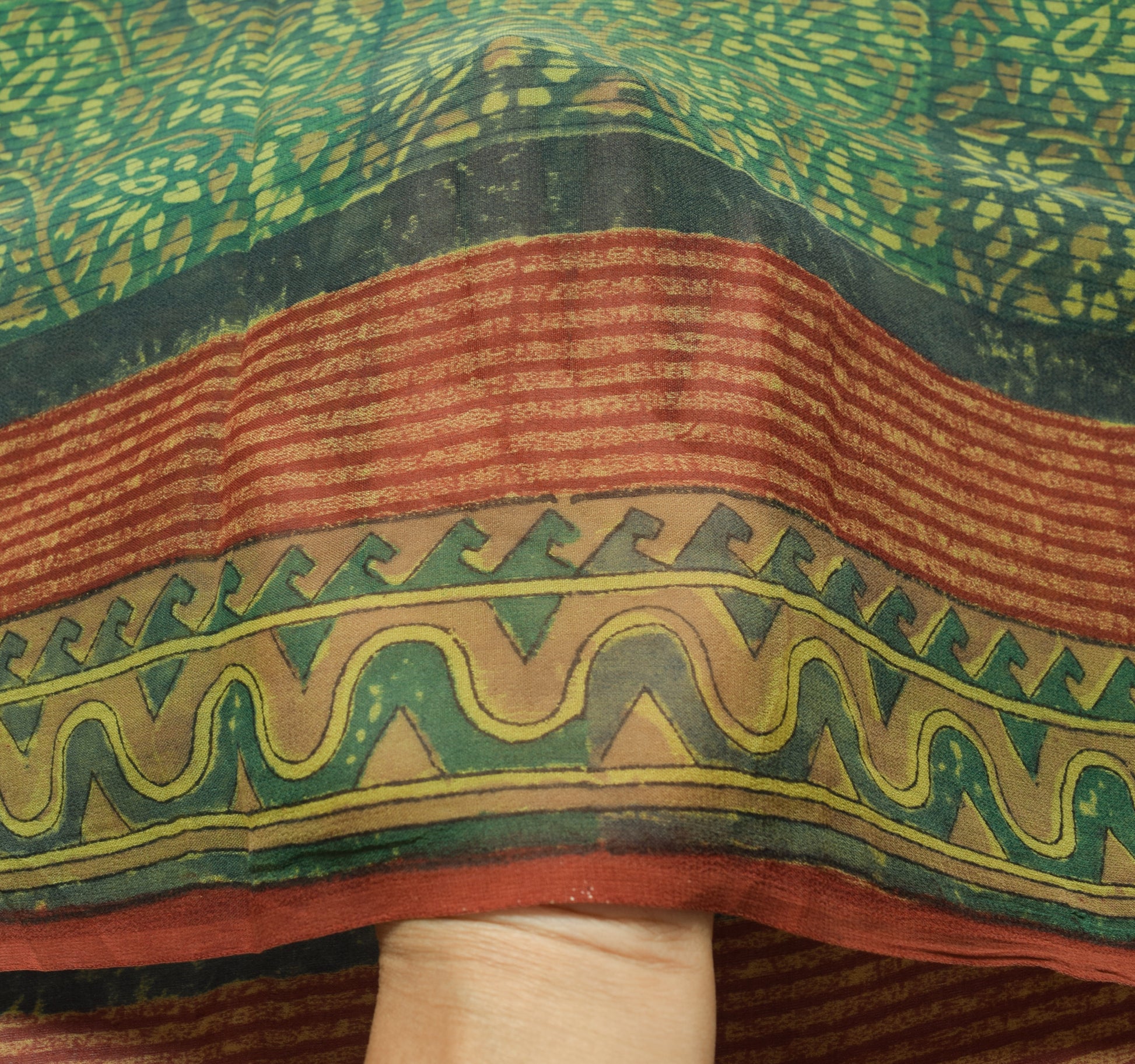 Sushila Vintage Green Saree 100% Pure Georgette Silk Printed Floral Craft Fabric