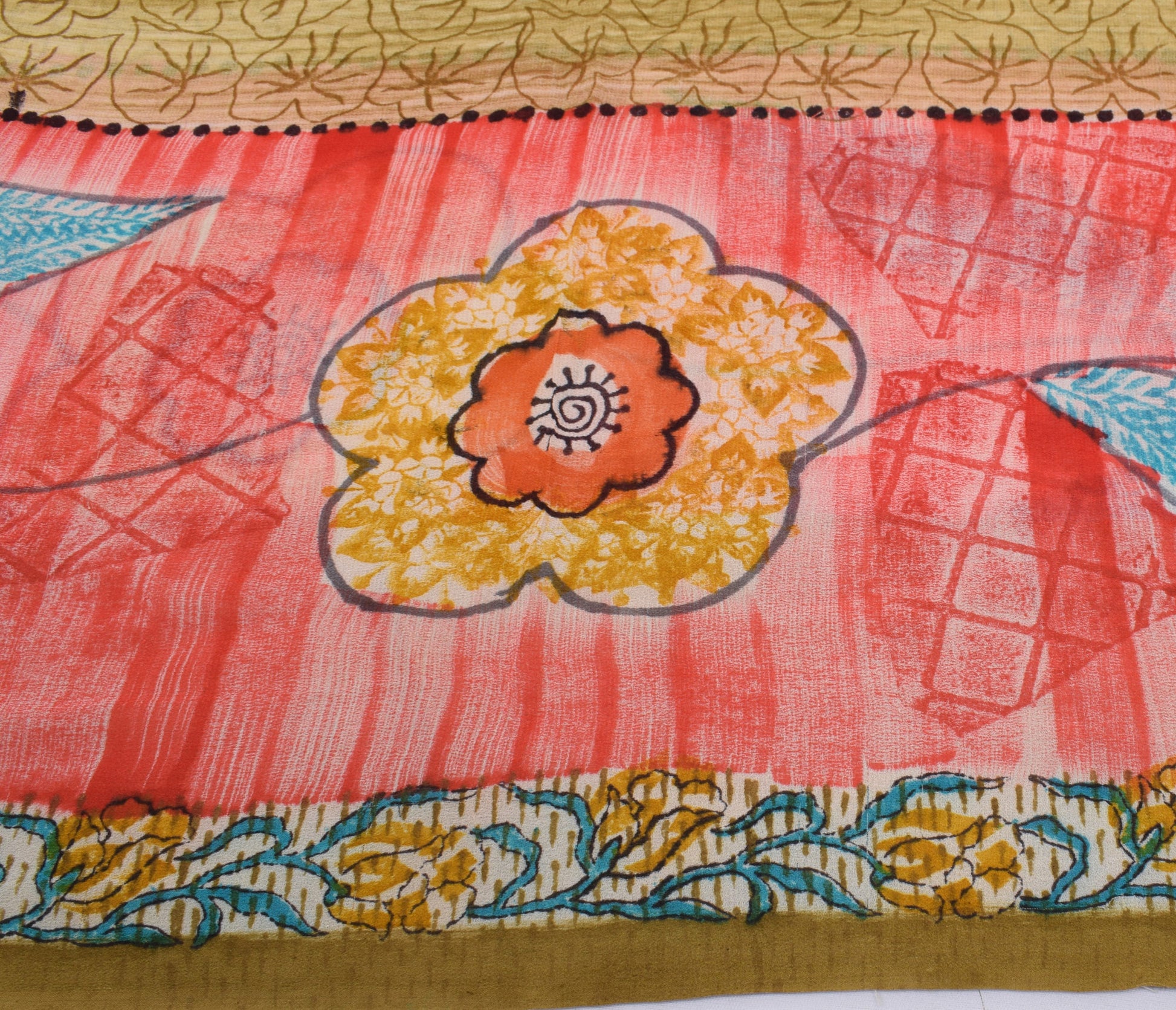 Sushila Vintage Green Saree 100% Pure Georgette Silk Printed Floral Craft Fabric