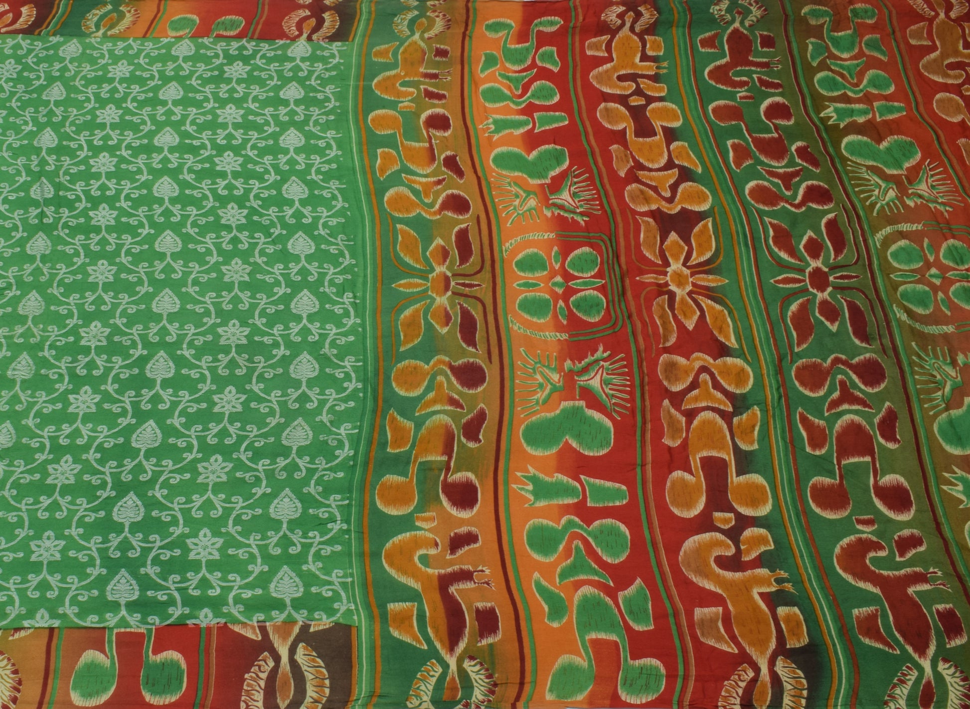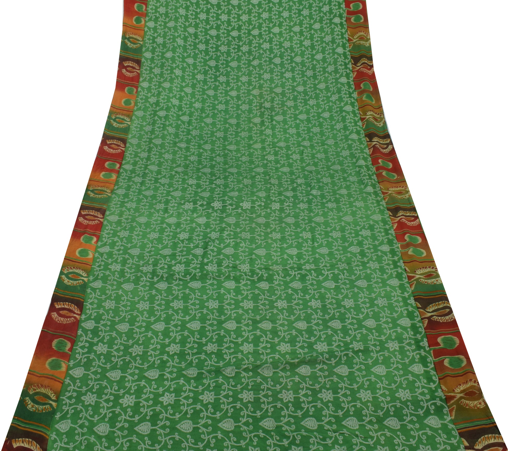 Sushila Vintage Green Saree 100% Pure Georgette Silk Woven Floral Craft Fabric