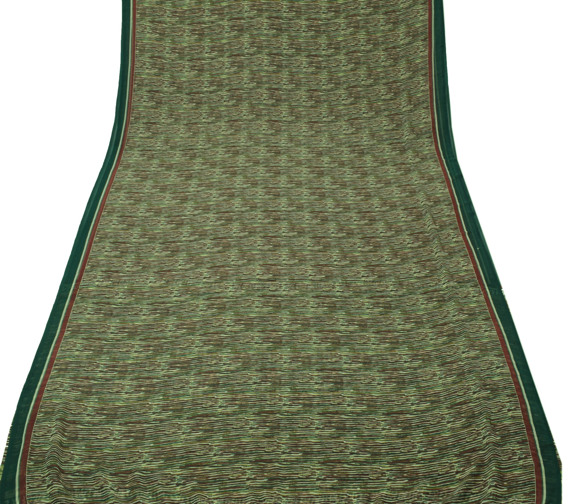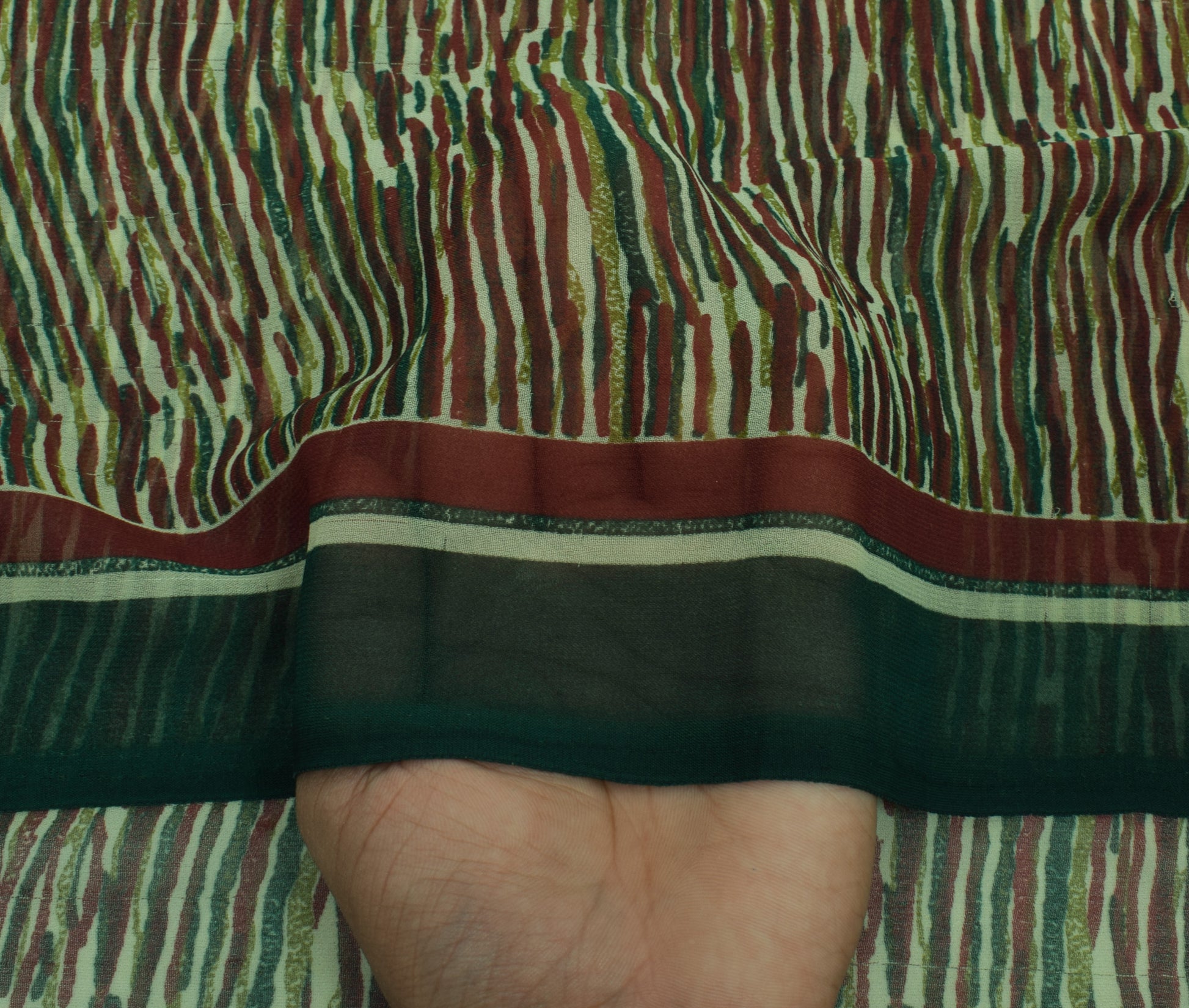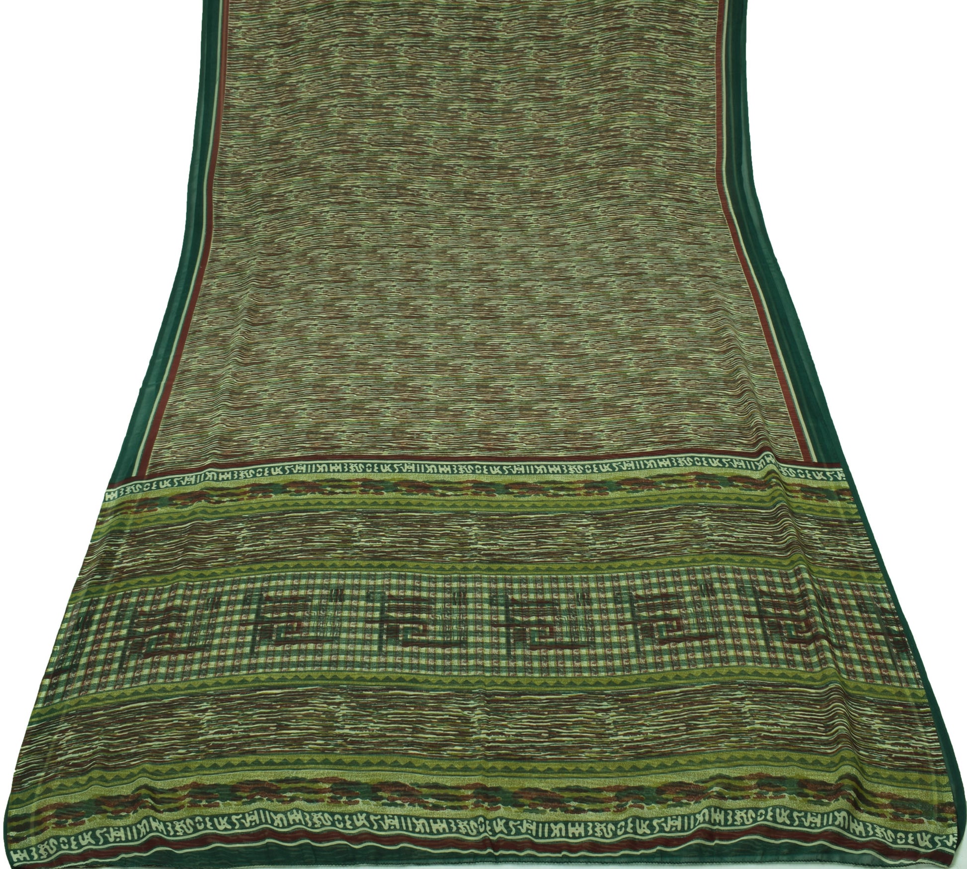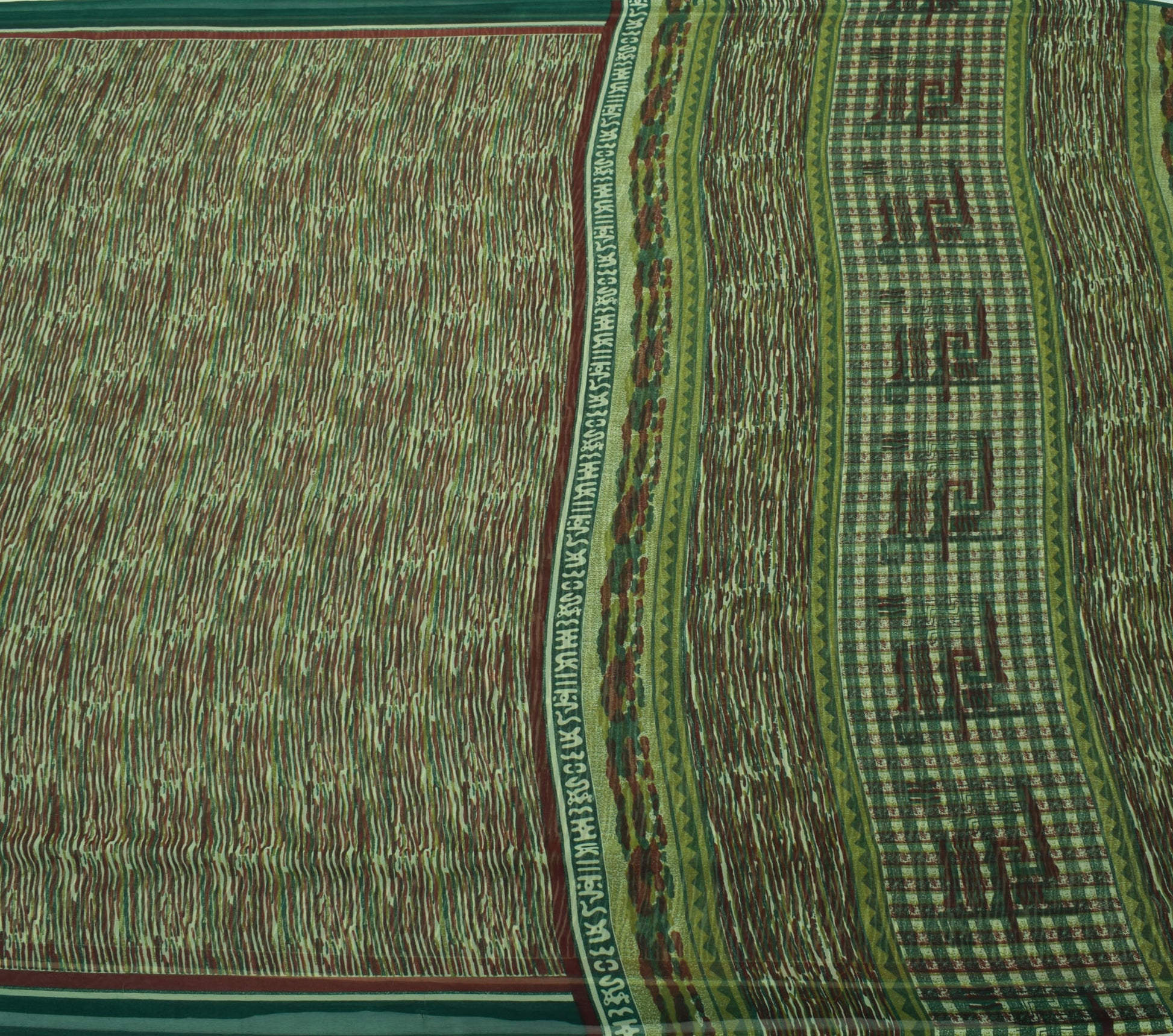 Sushila Vintage Green Saree Blend Georgette Silk Printed Indian Craft Fabric