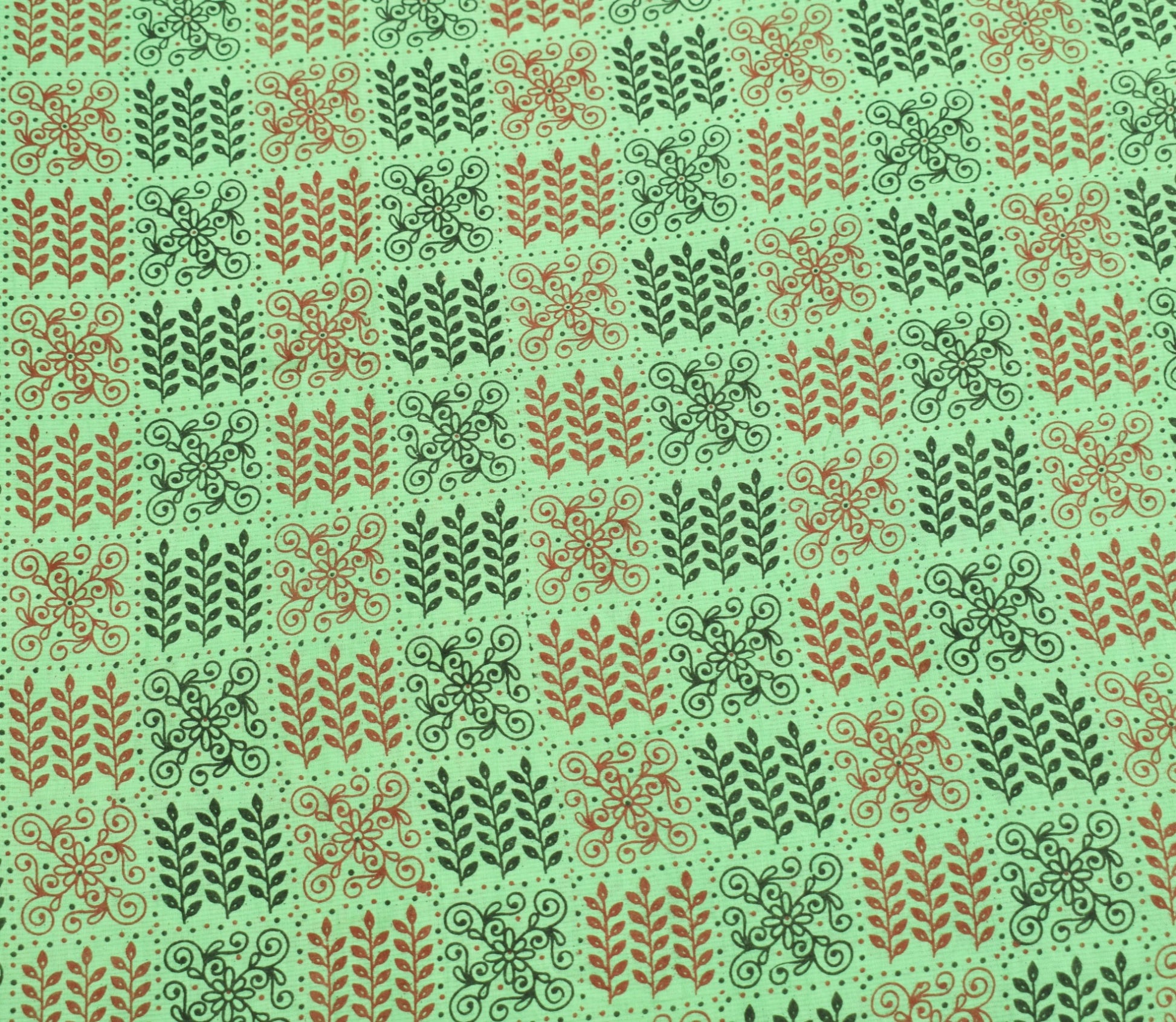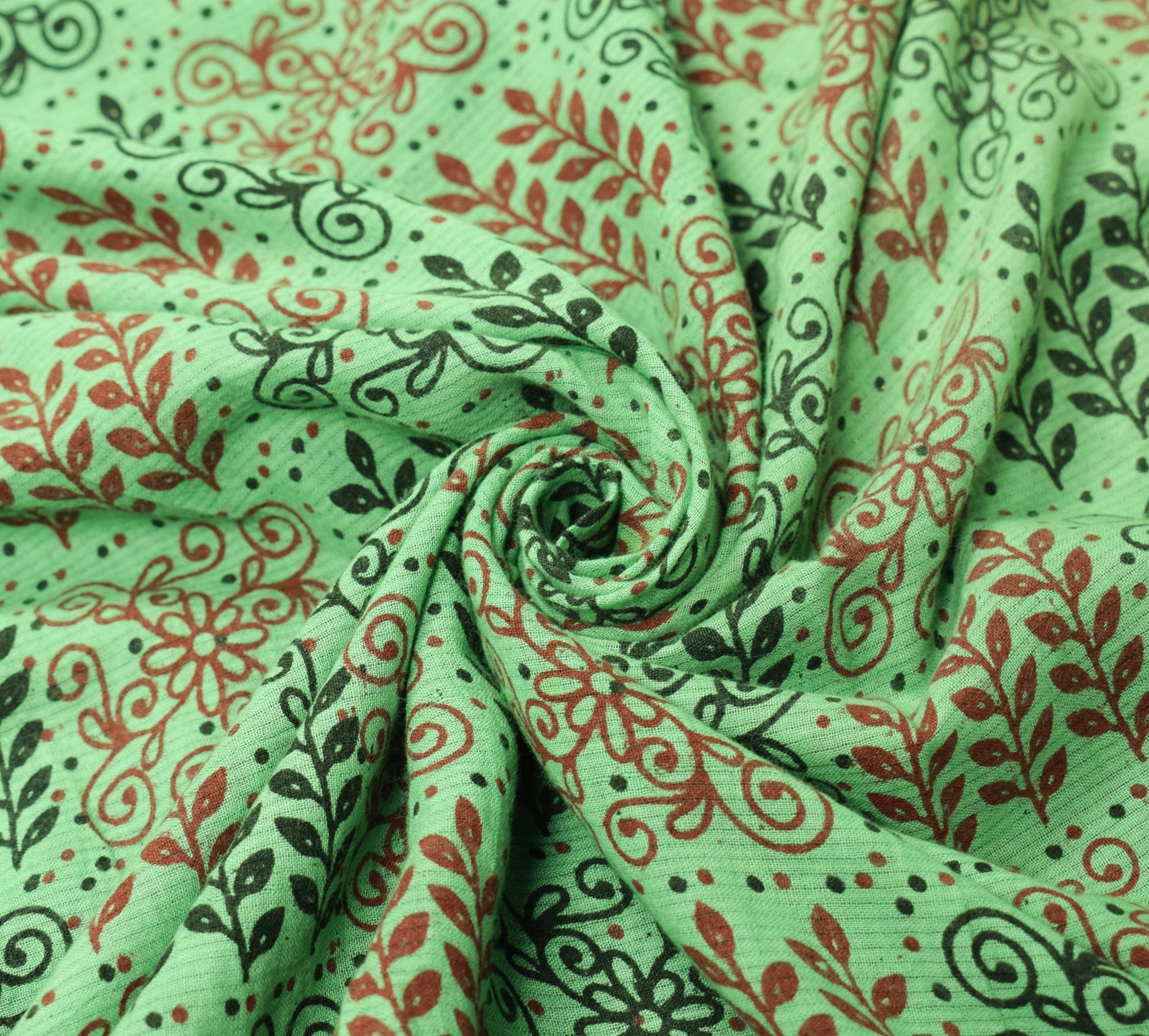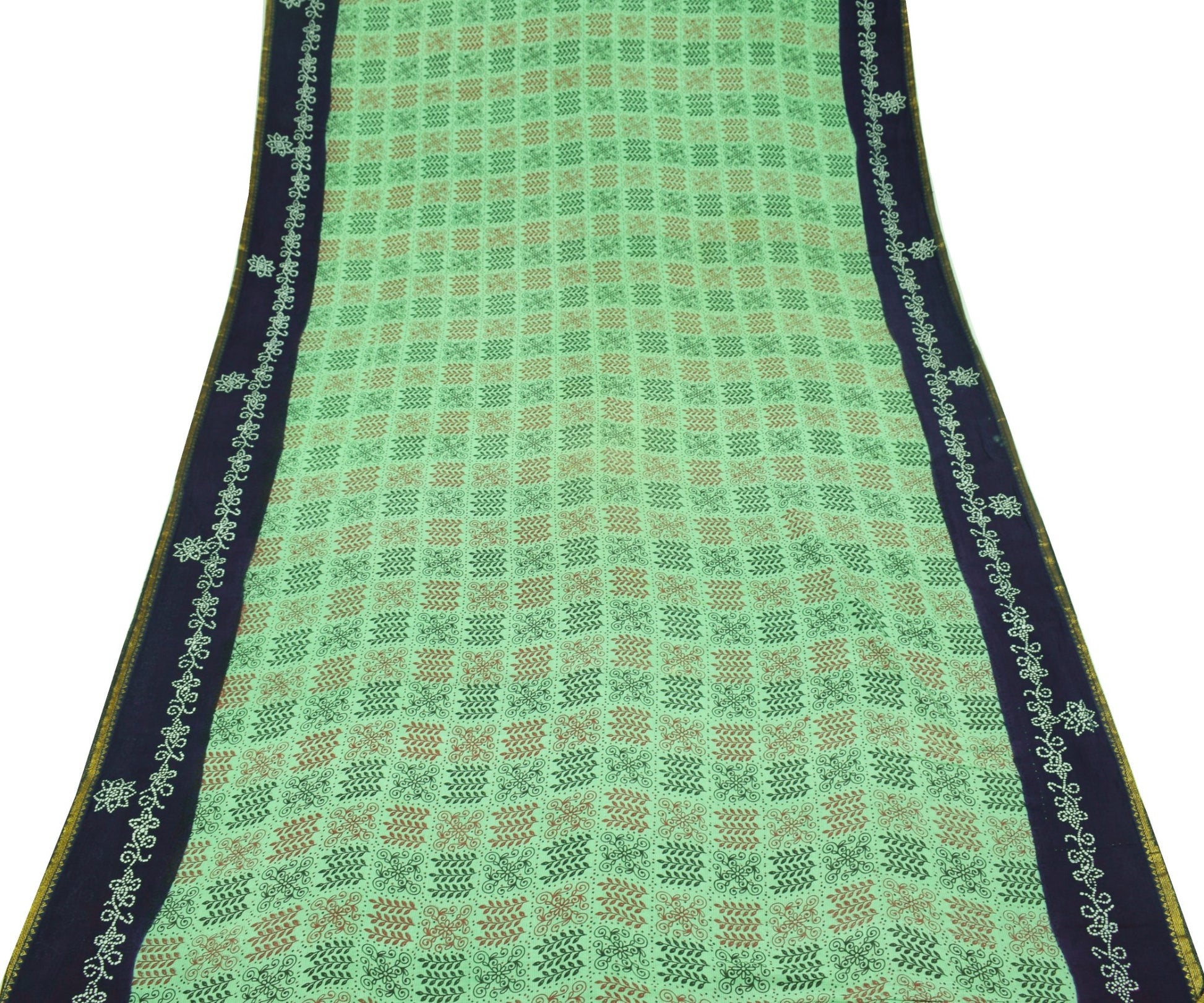 Sushila Vintage Green Saree Pure Cotton Hand Printed Floral Soft Craft Fabric
