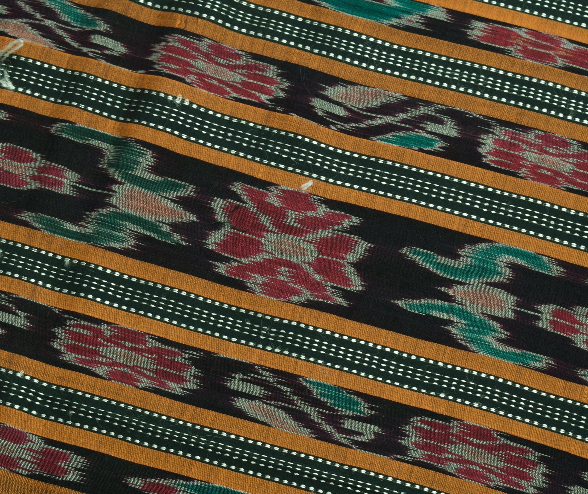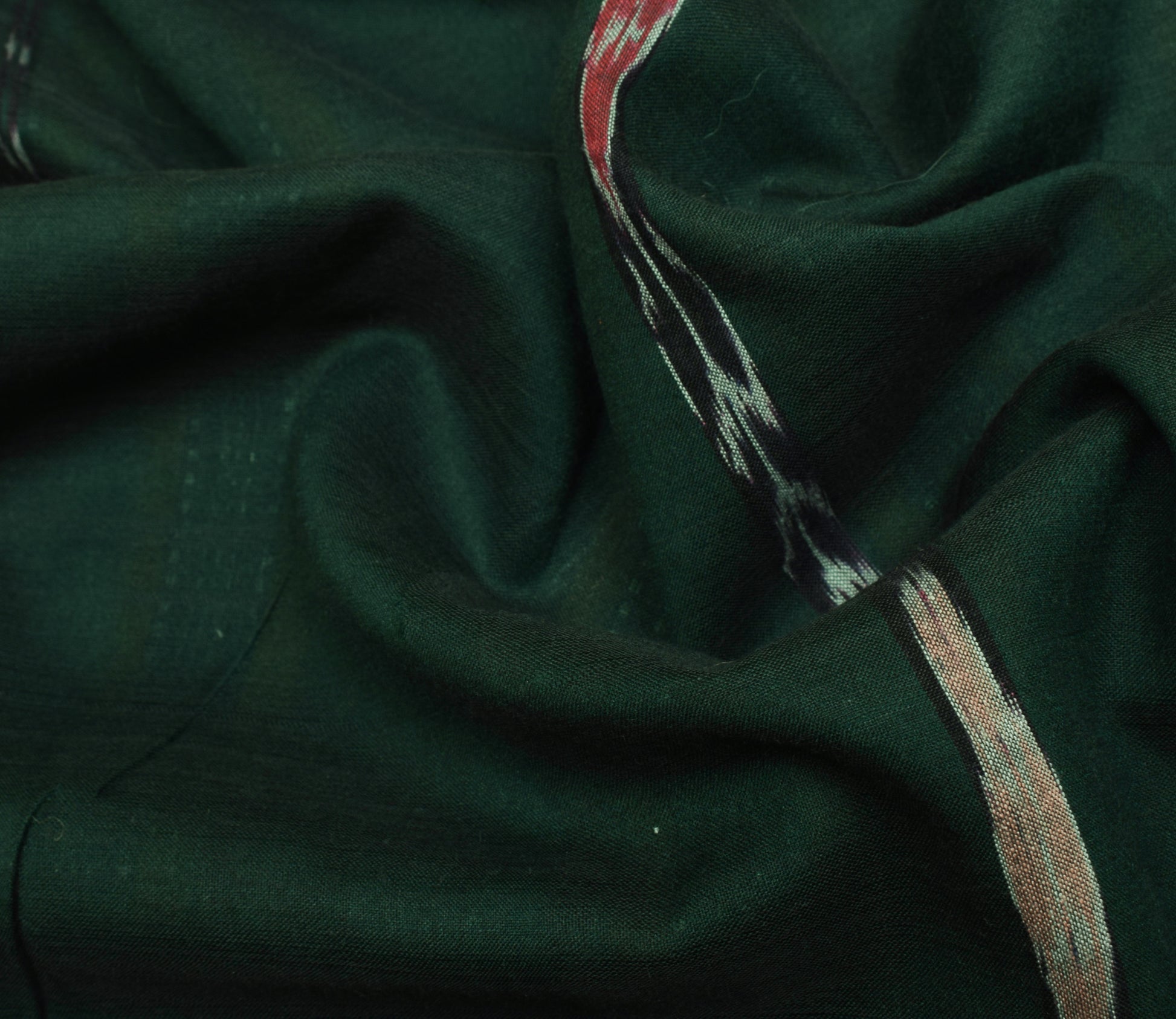 Sushila Vintage Green Saree Pure Cotton Hand Woven Ikat Patola Sari Craft Fabric