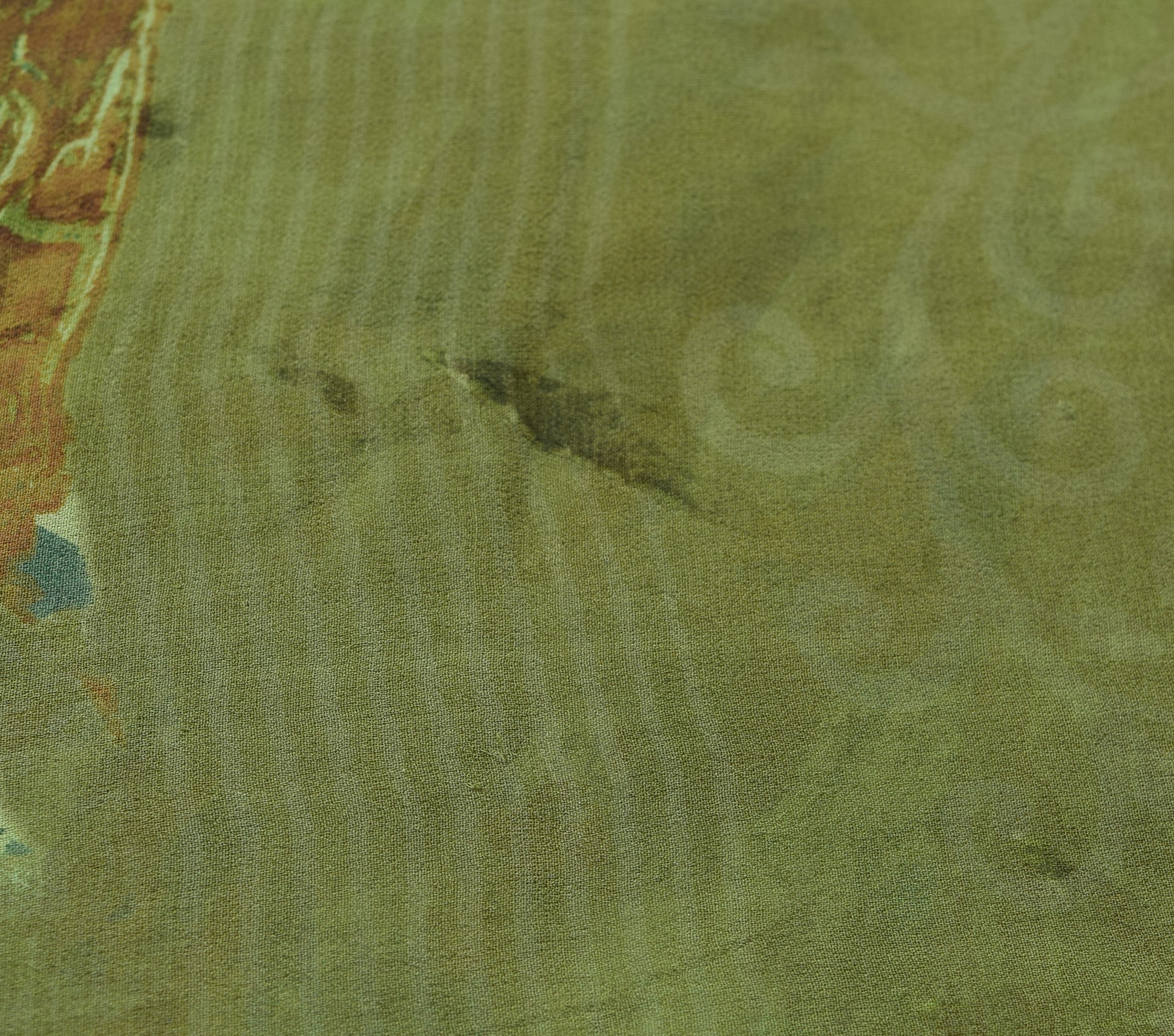 Sushila Vintage Green Saree Pure Georgette Silk Printed Abstract Craft Fabric