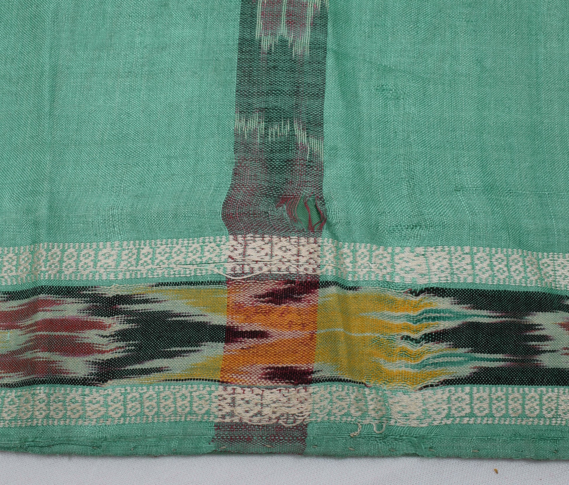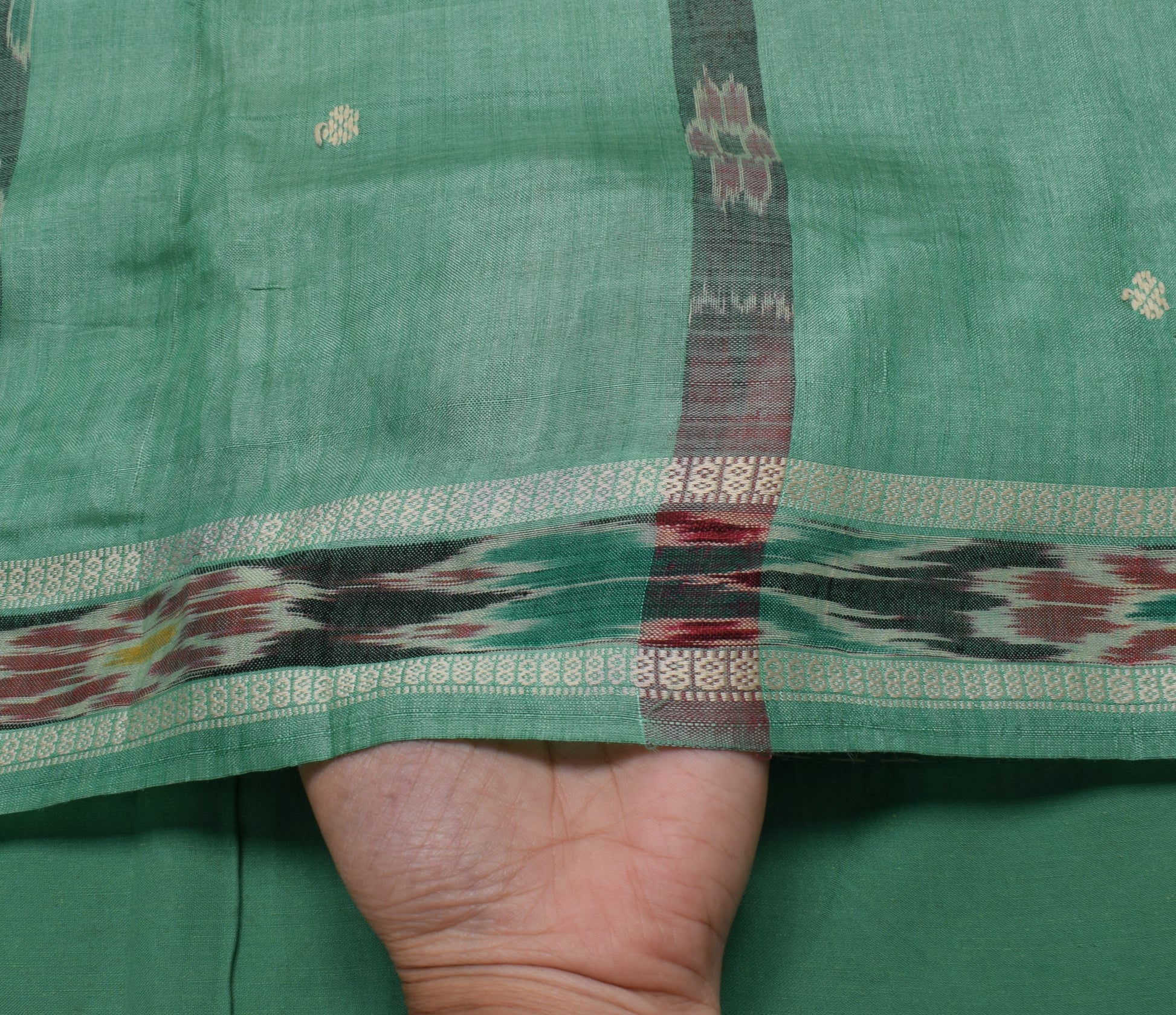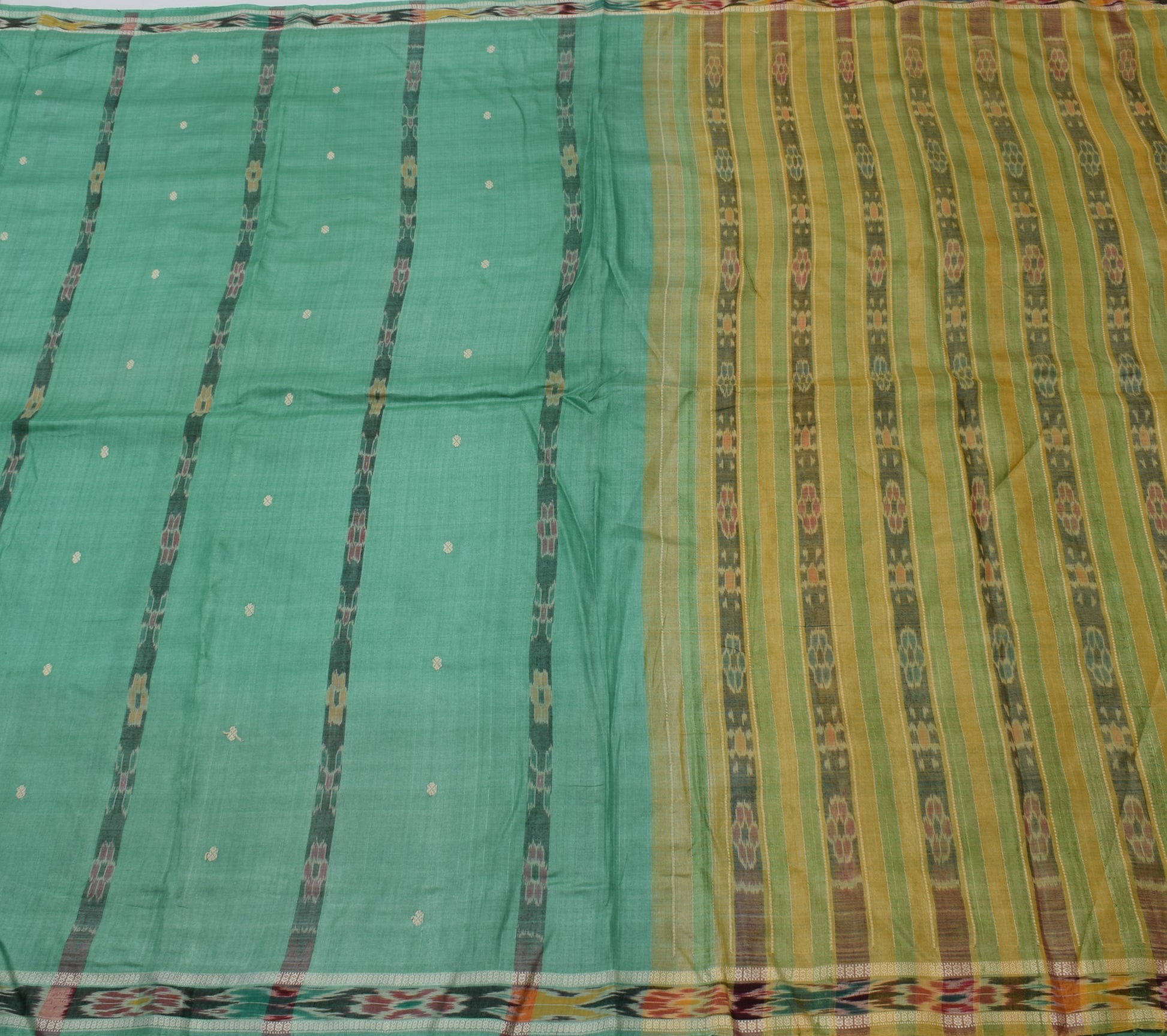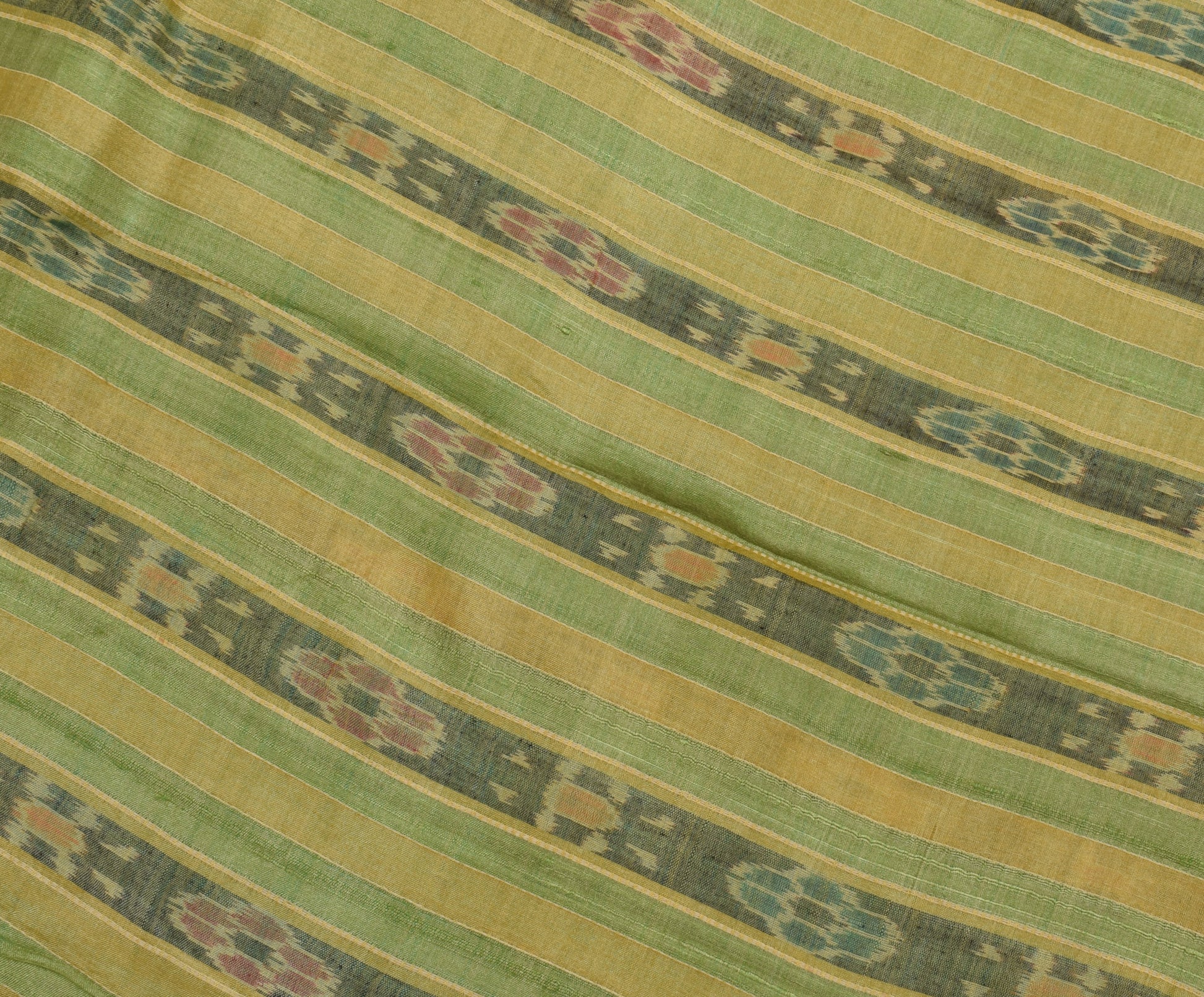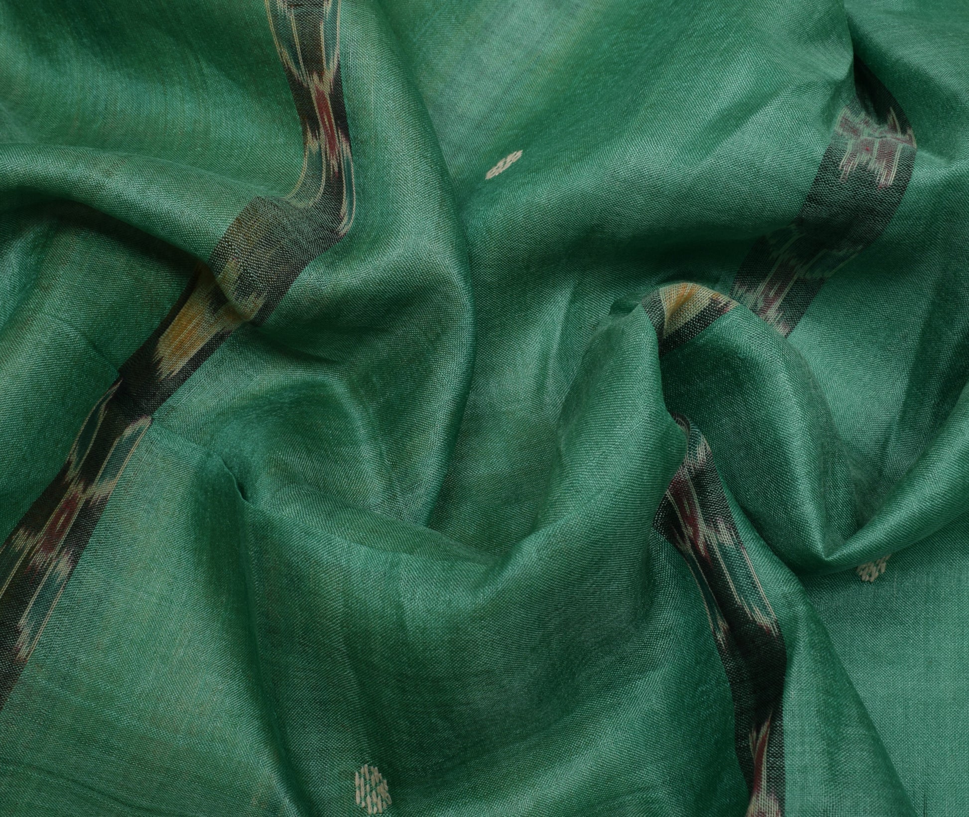 Sushila Vintage Green Saree Pure Silk Hand Woven Ikat Patola Sari Craft Fabric
