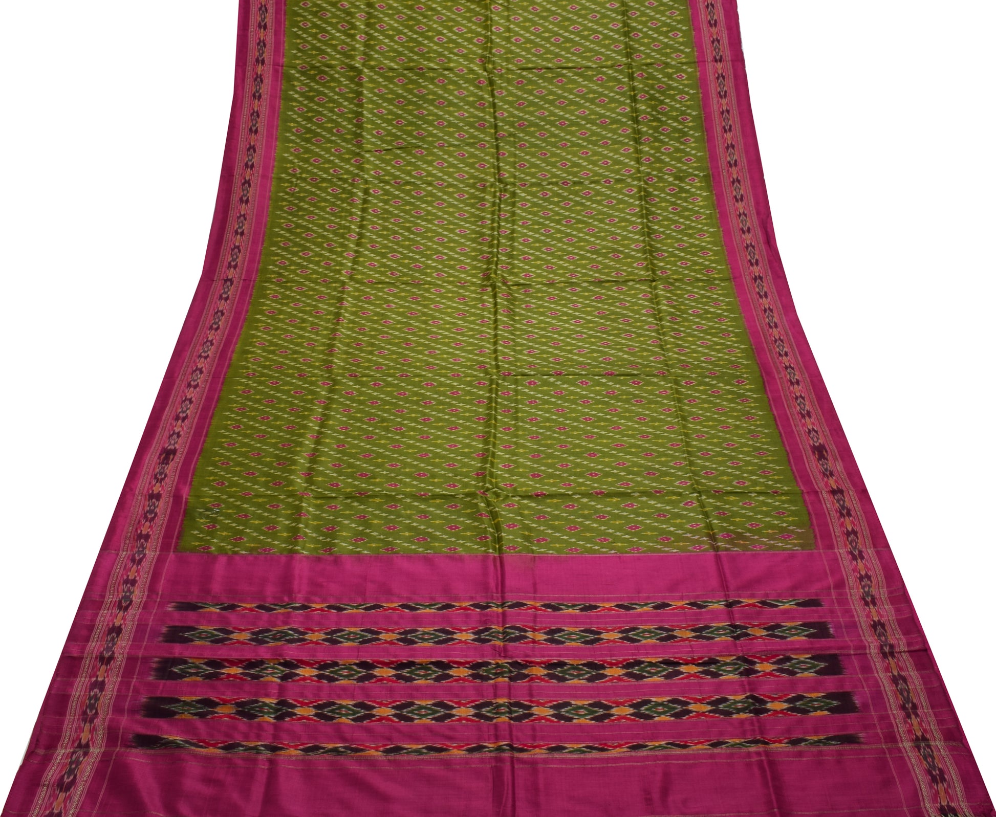Sushila Vintage Green Saree Pure Silk Hand Woven Ikat Patola Sari Craft Fabric