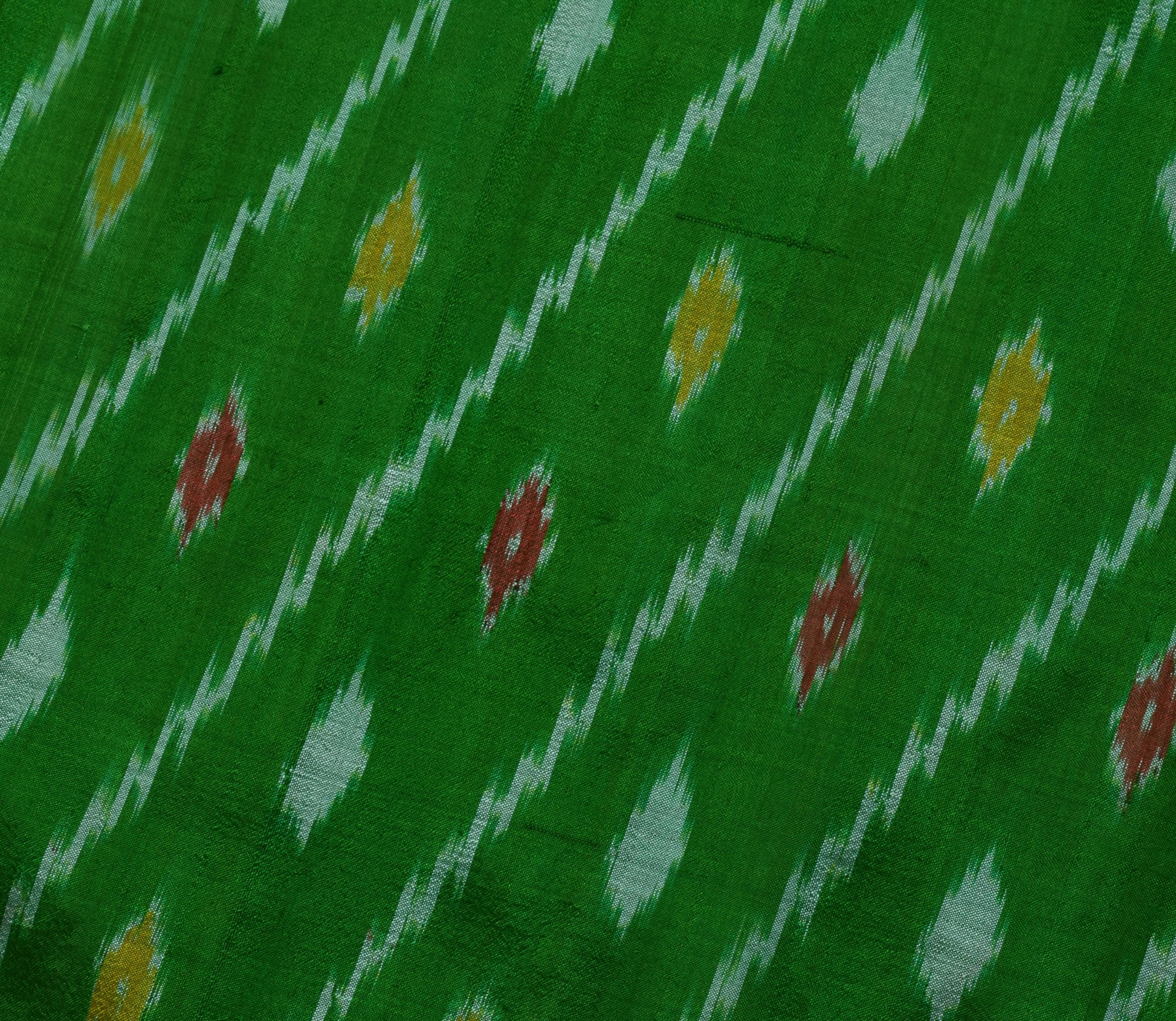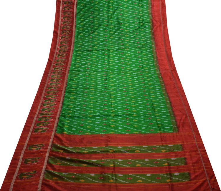 Sushila Vintage Green Saree Pure Silk Hand Woven Ikat Patola Sari Craft Fabric