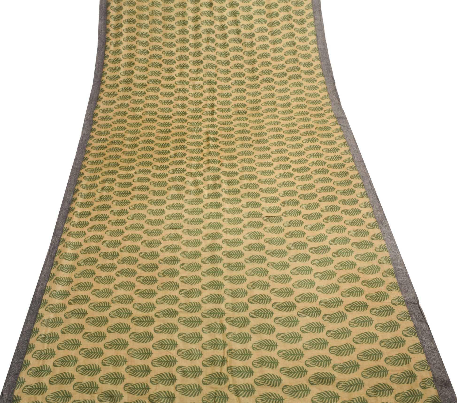 Sushila Vintage Green Soft Saree 100% Pure Woolen Woven Floral Sari Craft Fabric