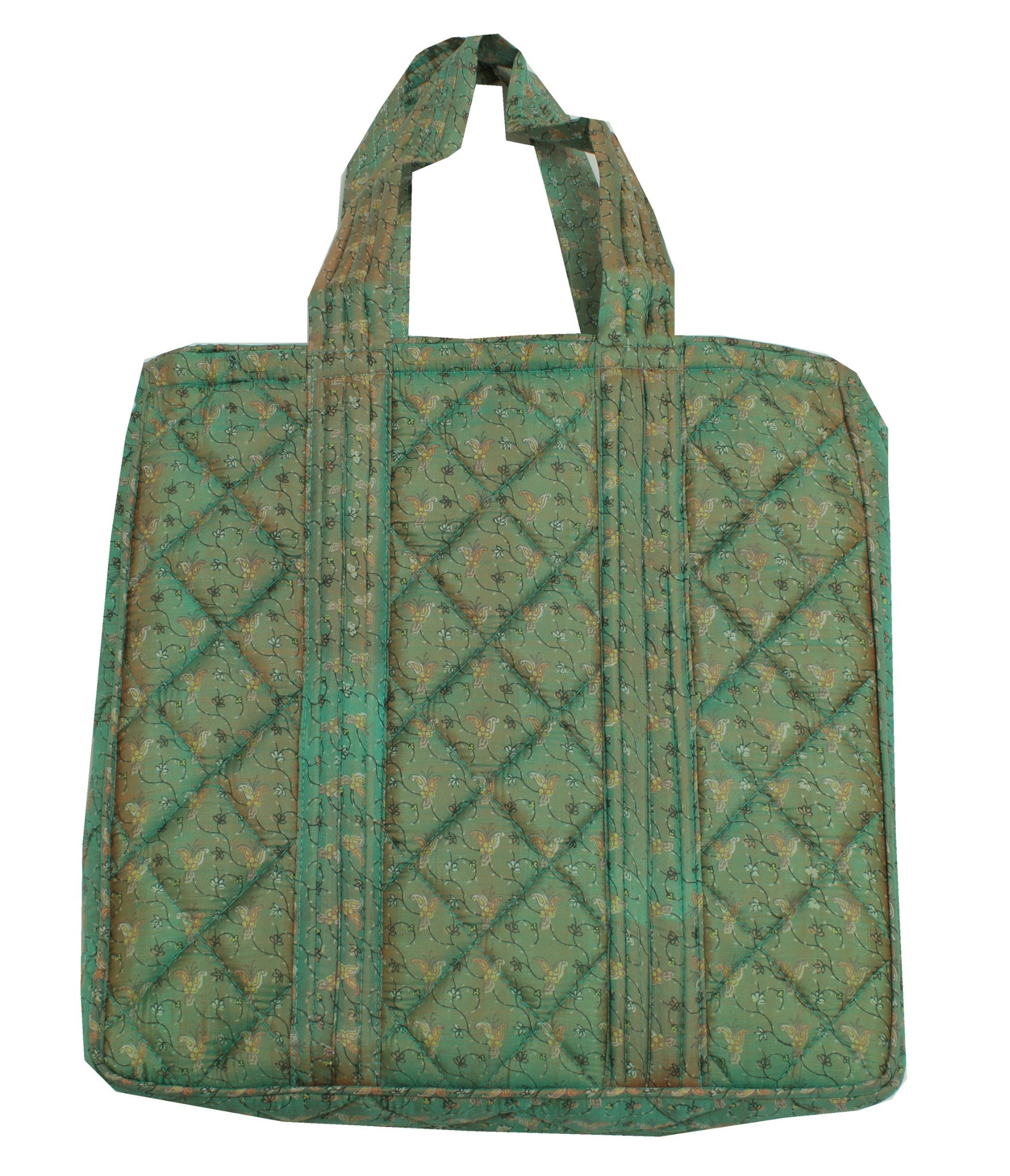 Sushila Vintage Green Tote Bag 100% Pure Silk Printed Handbag Shoulder Bag