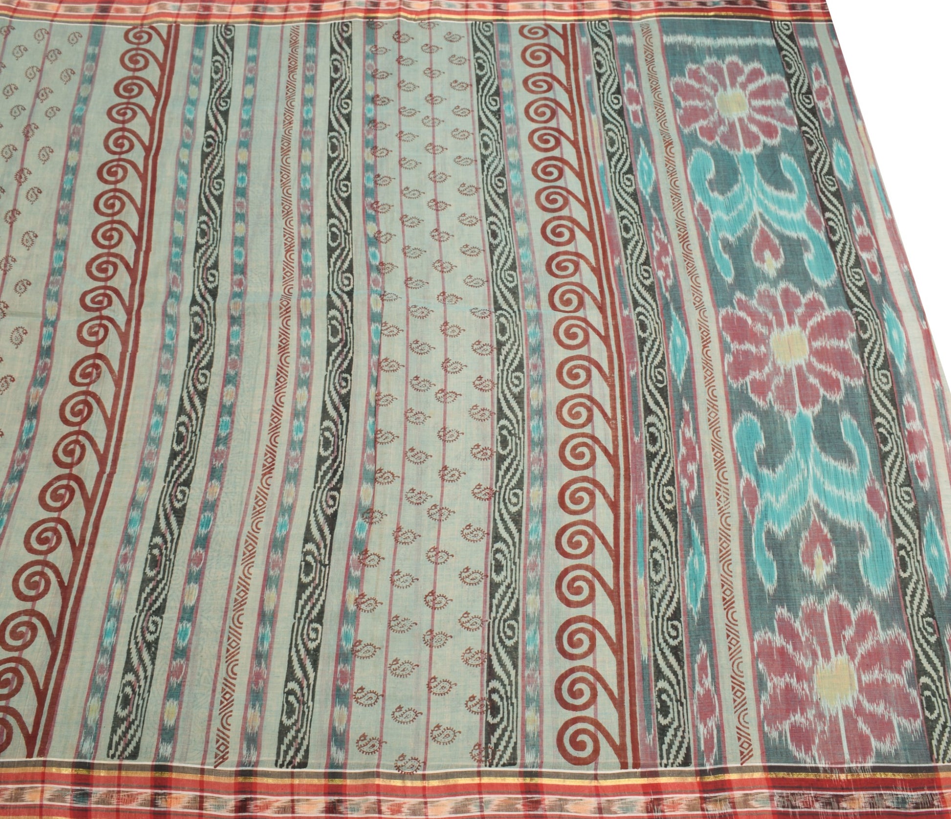 Sushila Vintage Hand Woven Ikat Patola Saree Pure Cotton Hand Block Sari Fabric