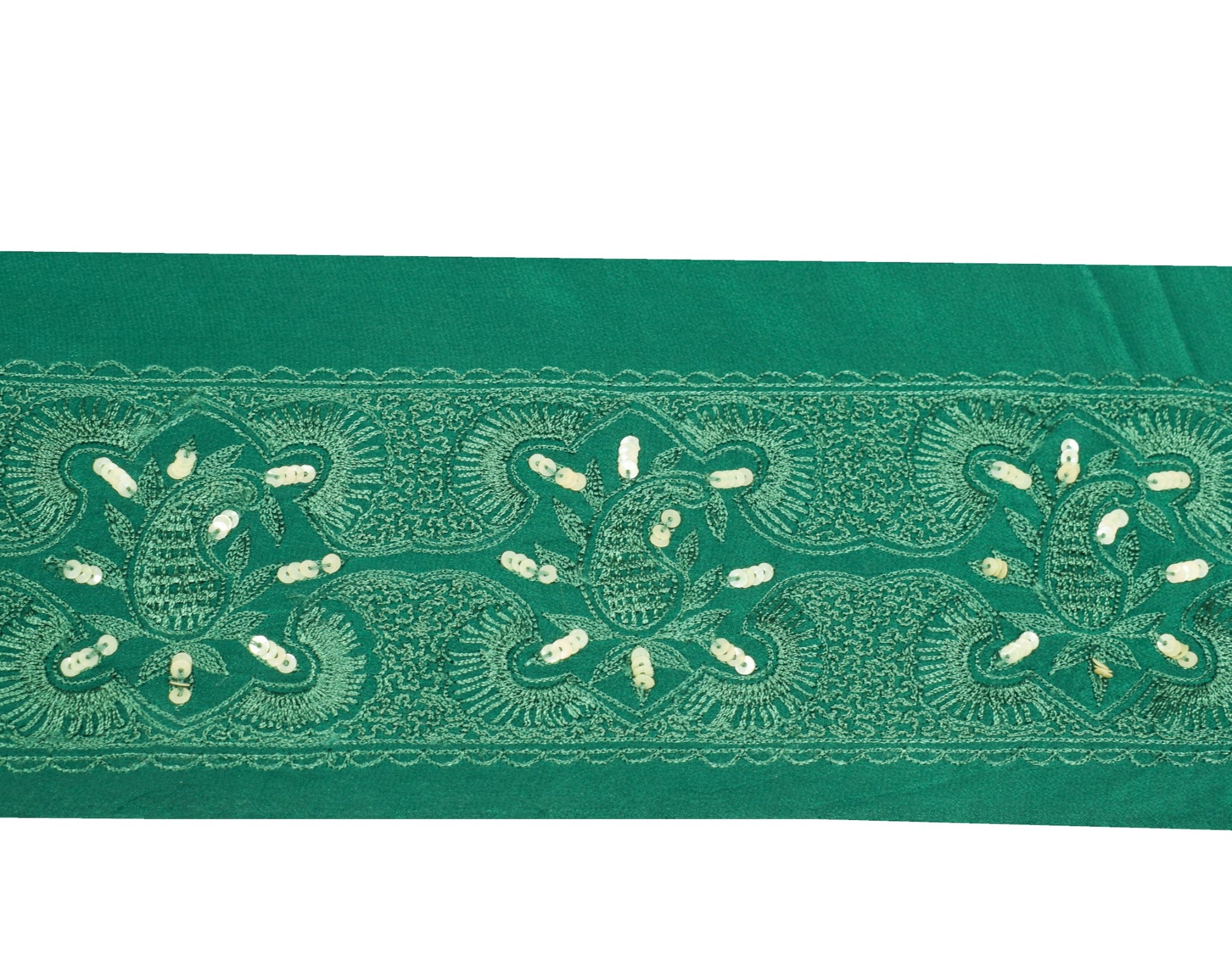 Sushila Vintage Handmade Saree Border Green Craft Sewing Trim Pure Crepe Lace