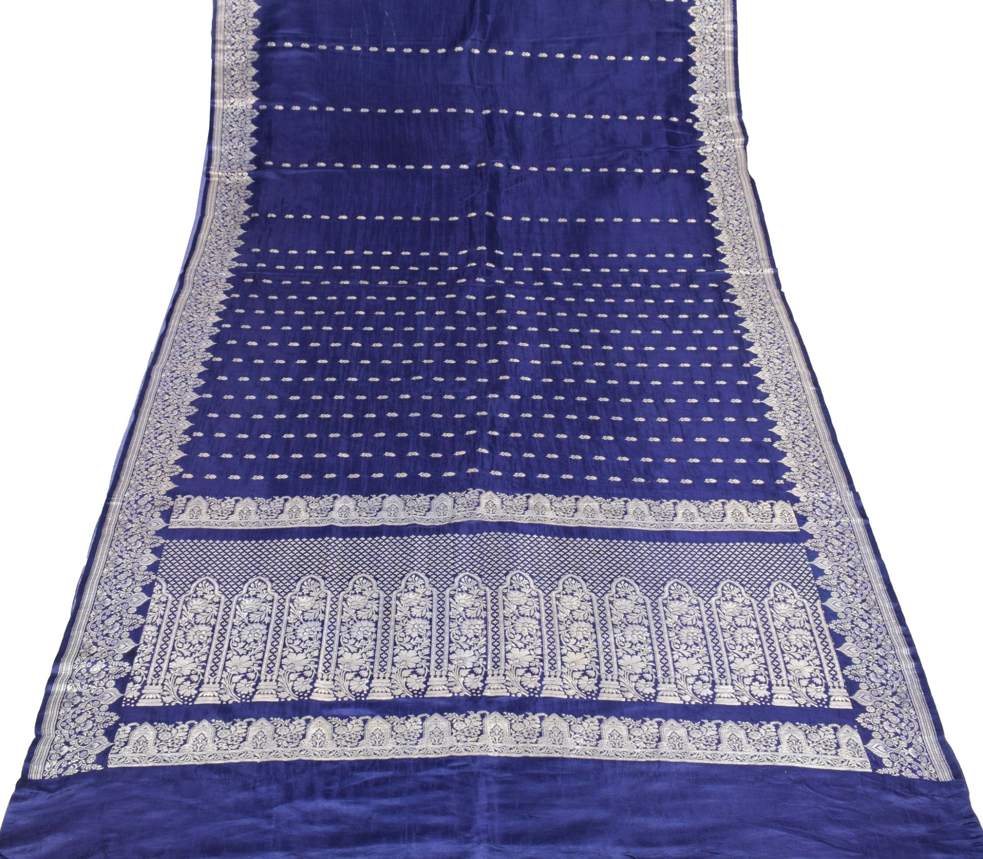 Sushila Vintage Heavy Blue Saree Pure Satin Silk Banarasi Brocade Sari Fabric