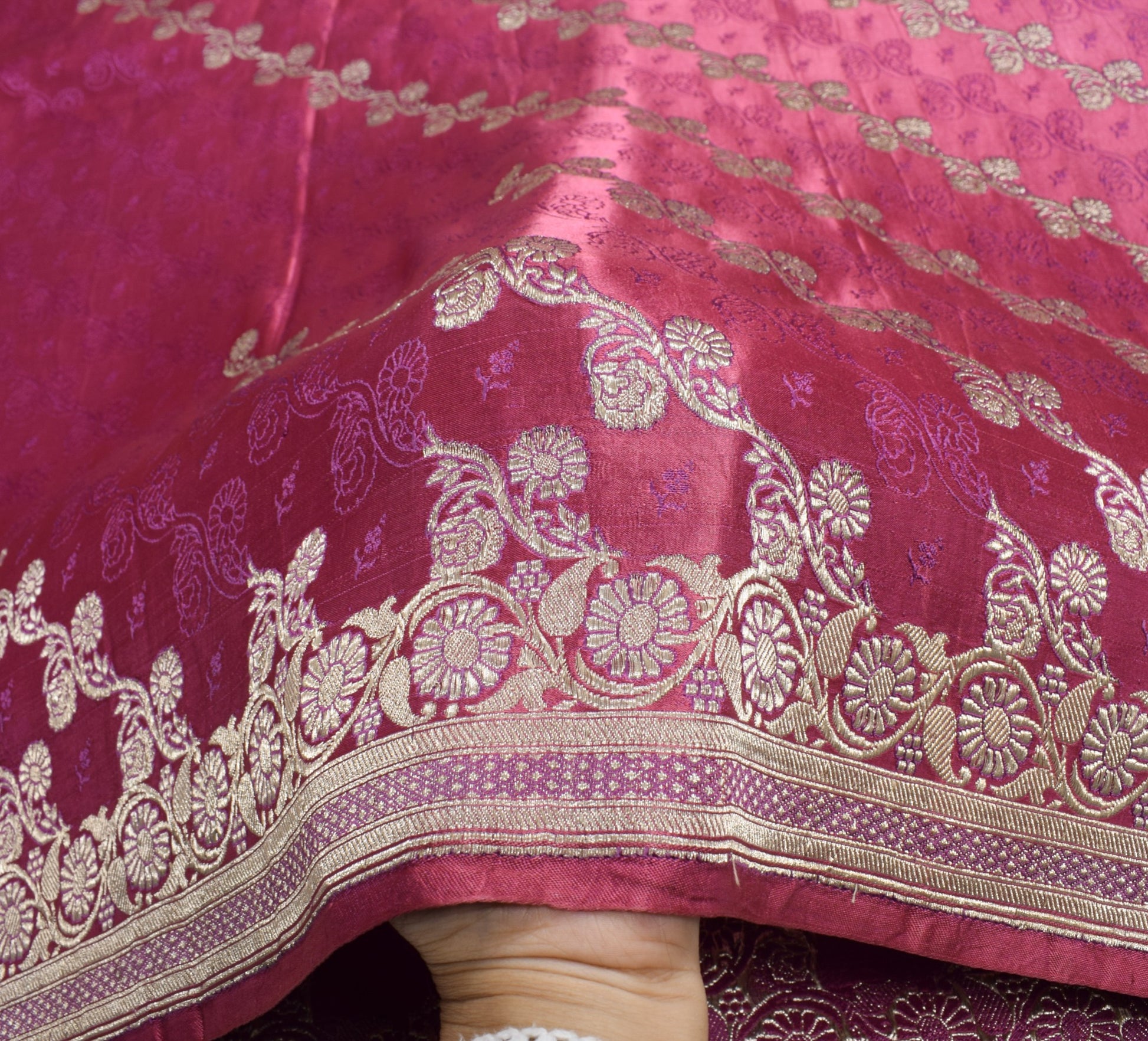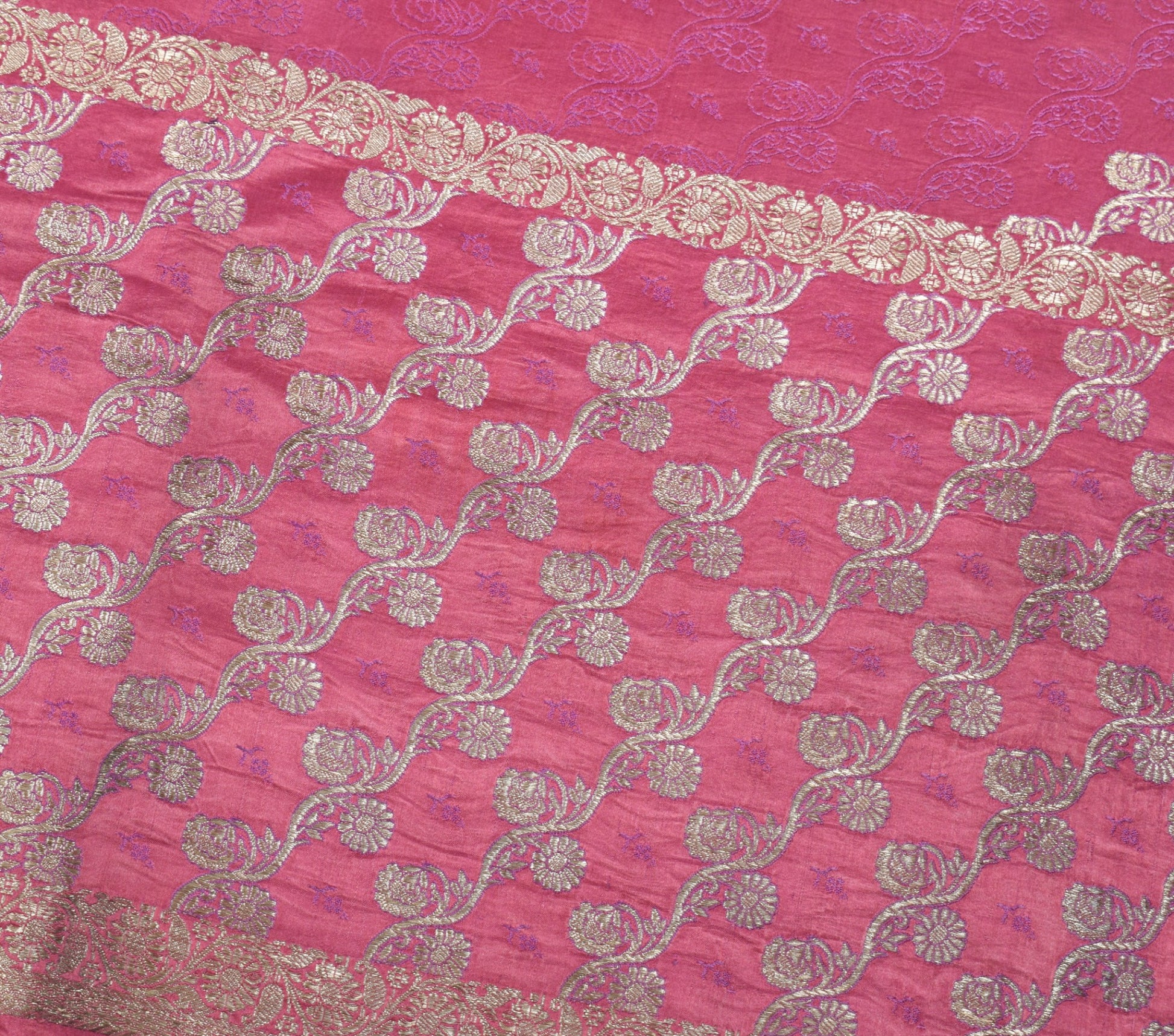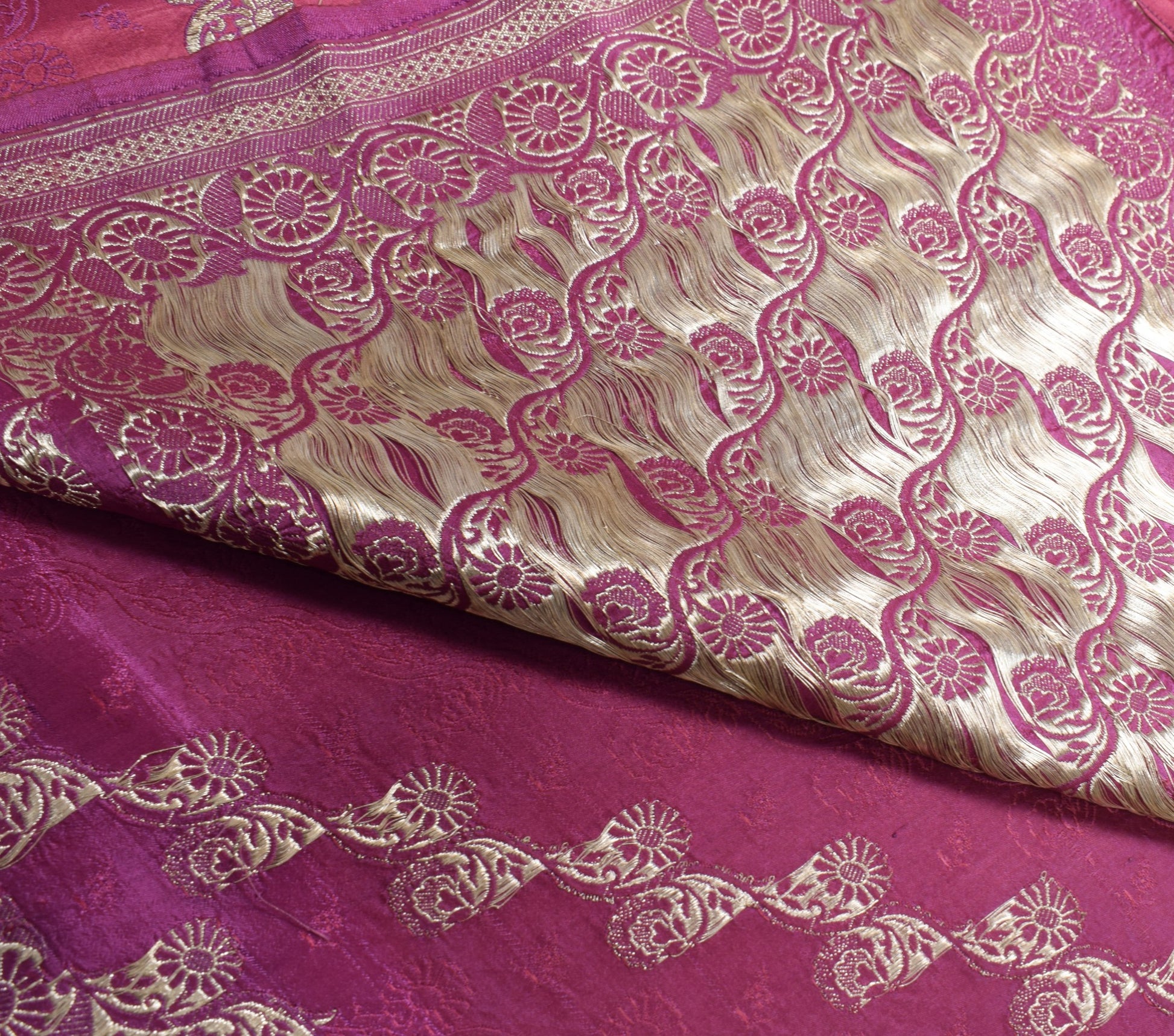 Sushila Vintage Heavy Saree Pure Satin Silk Banarasi Brocade Woven Sari Fabric