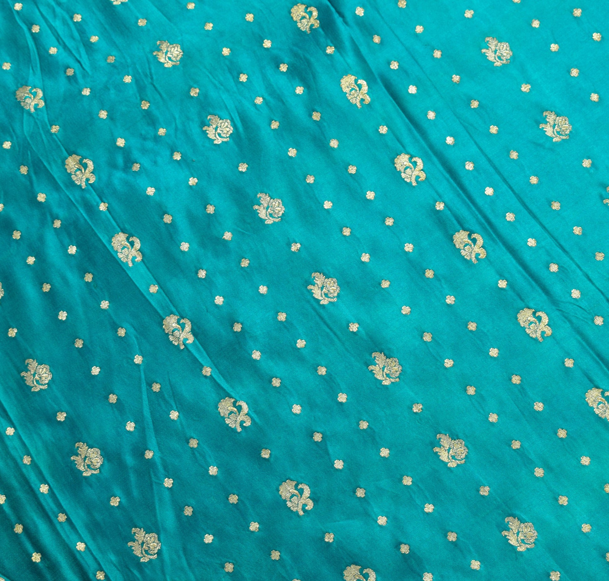 Sushila Vintage Heavy Saree Pure Satin Silk Banarasi Teal Blue Woven Sari Fabric