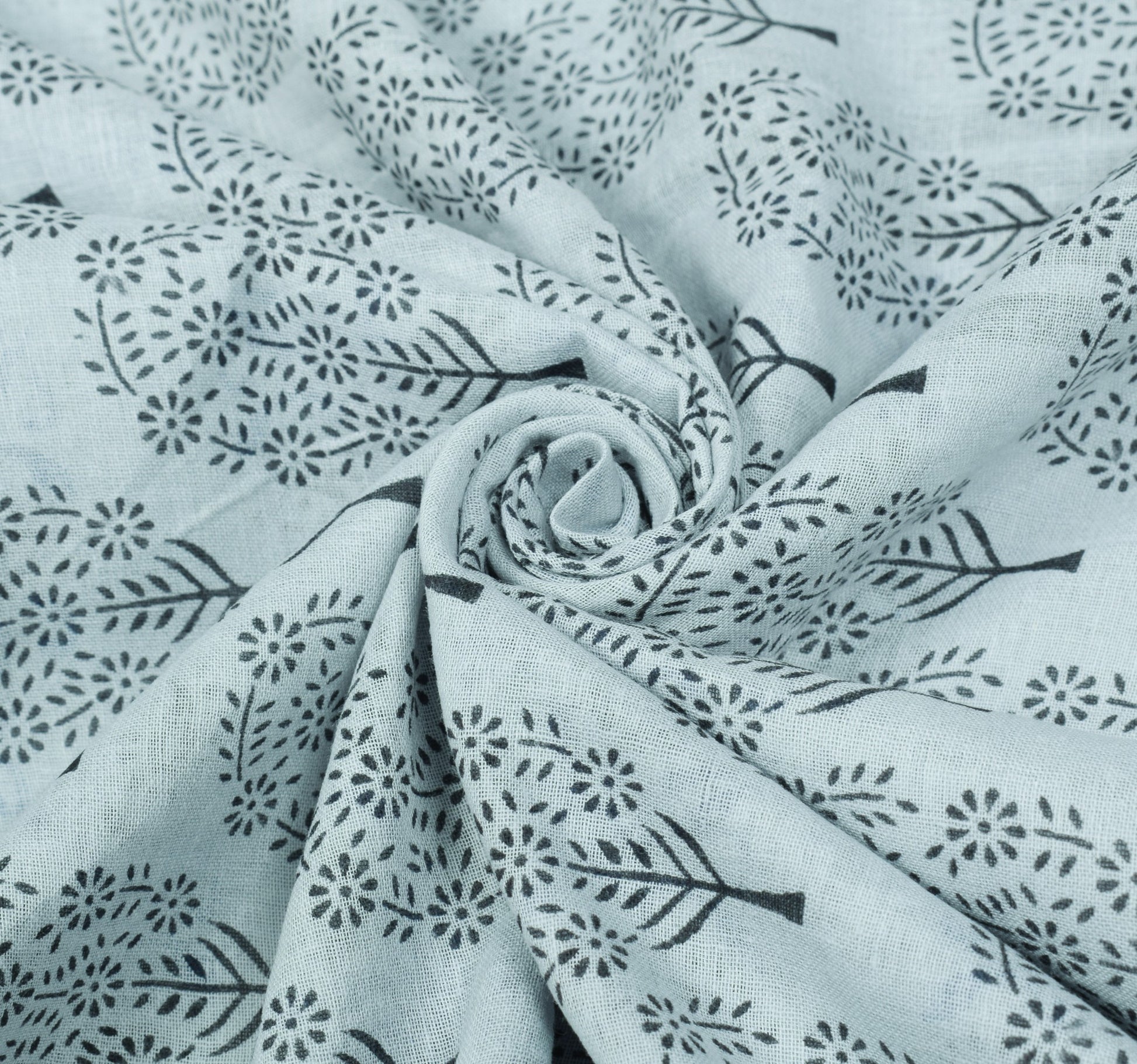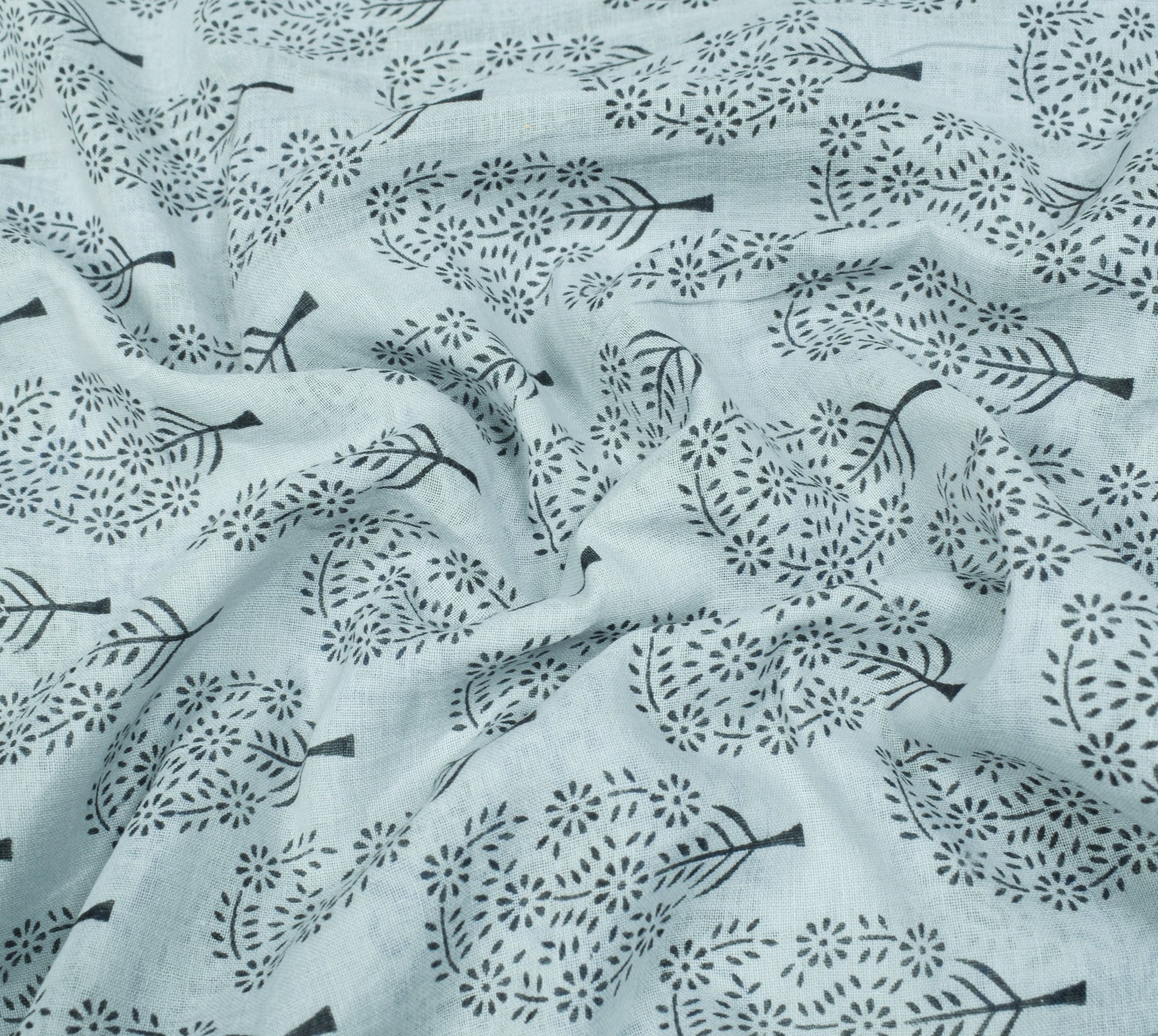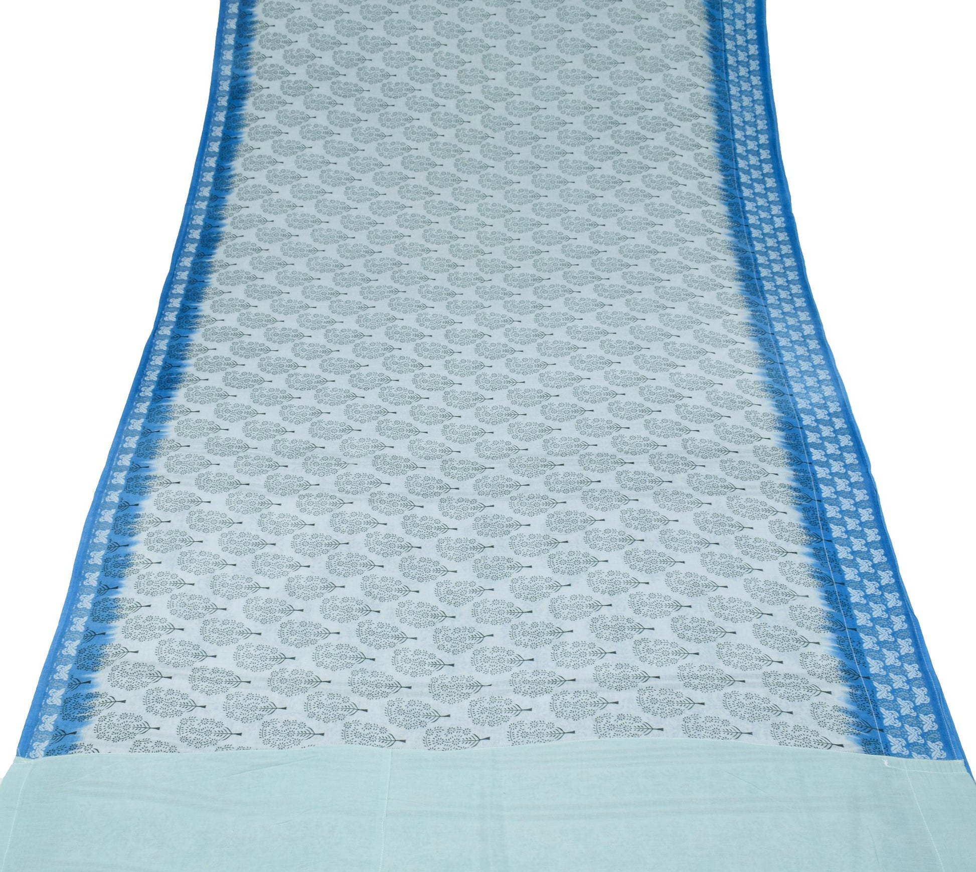 Sushila Vintage Ice Blue Floral Printed Saree 100% Pure Cotton Soft Craft Fabric