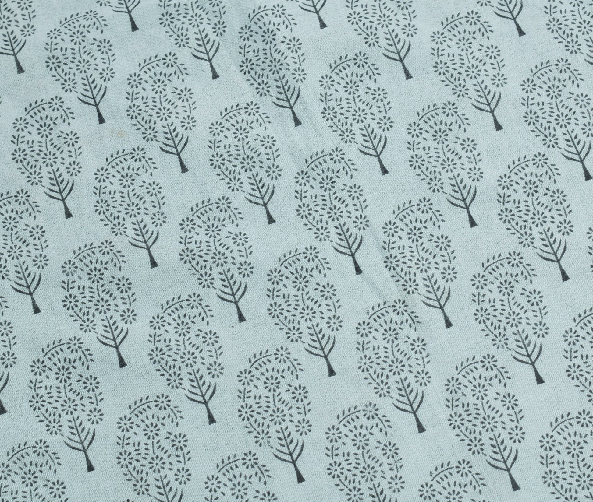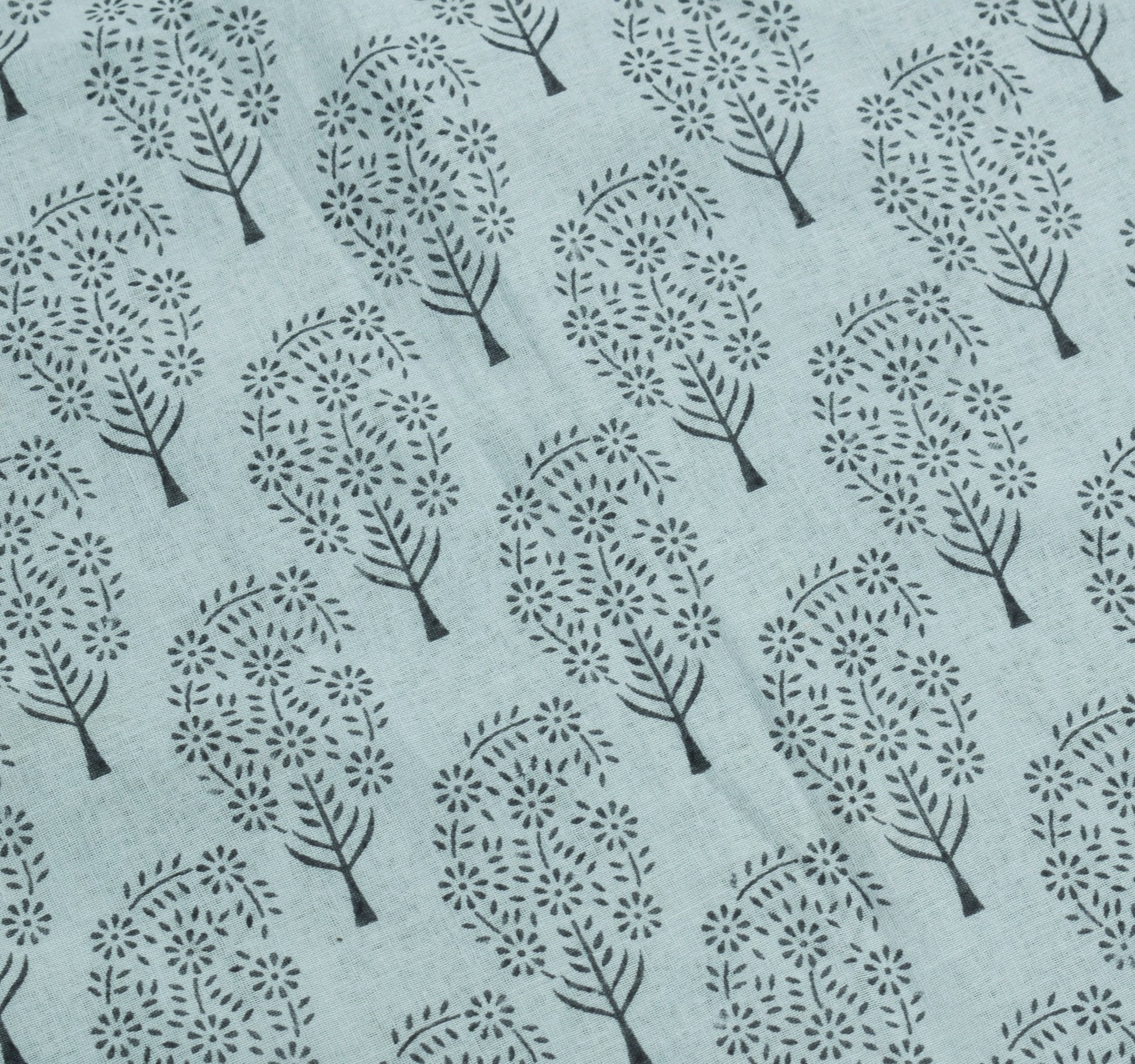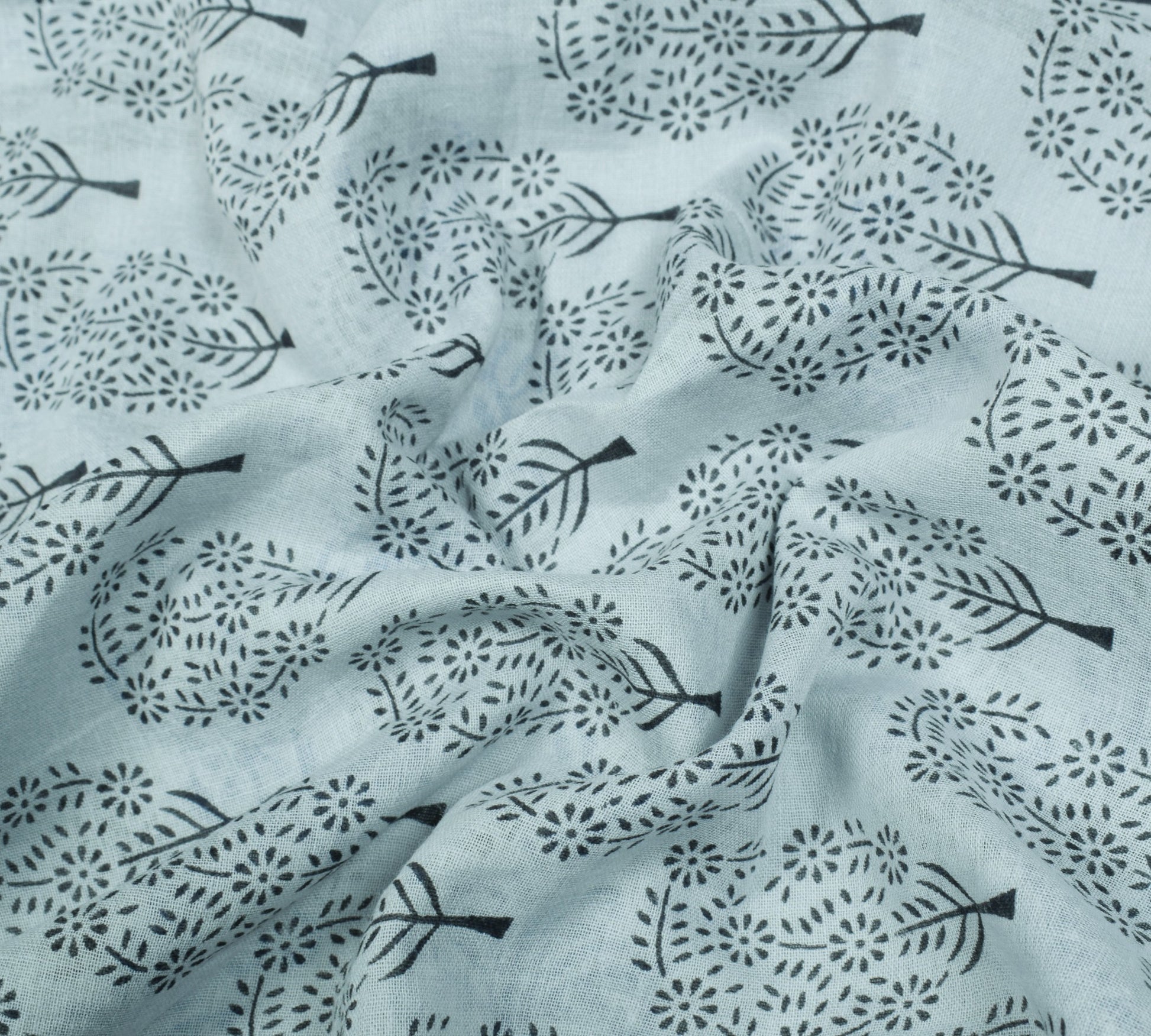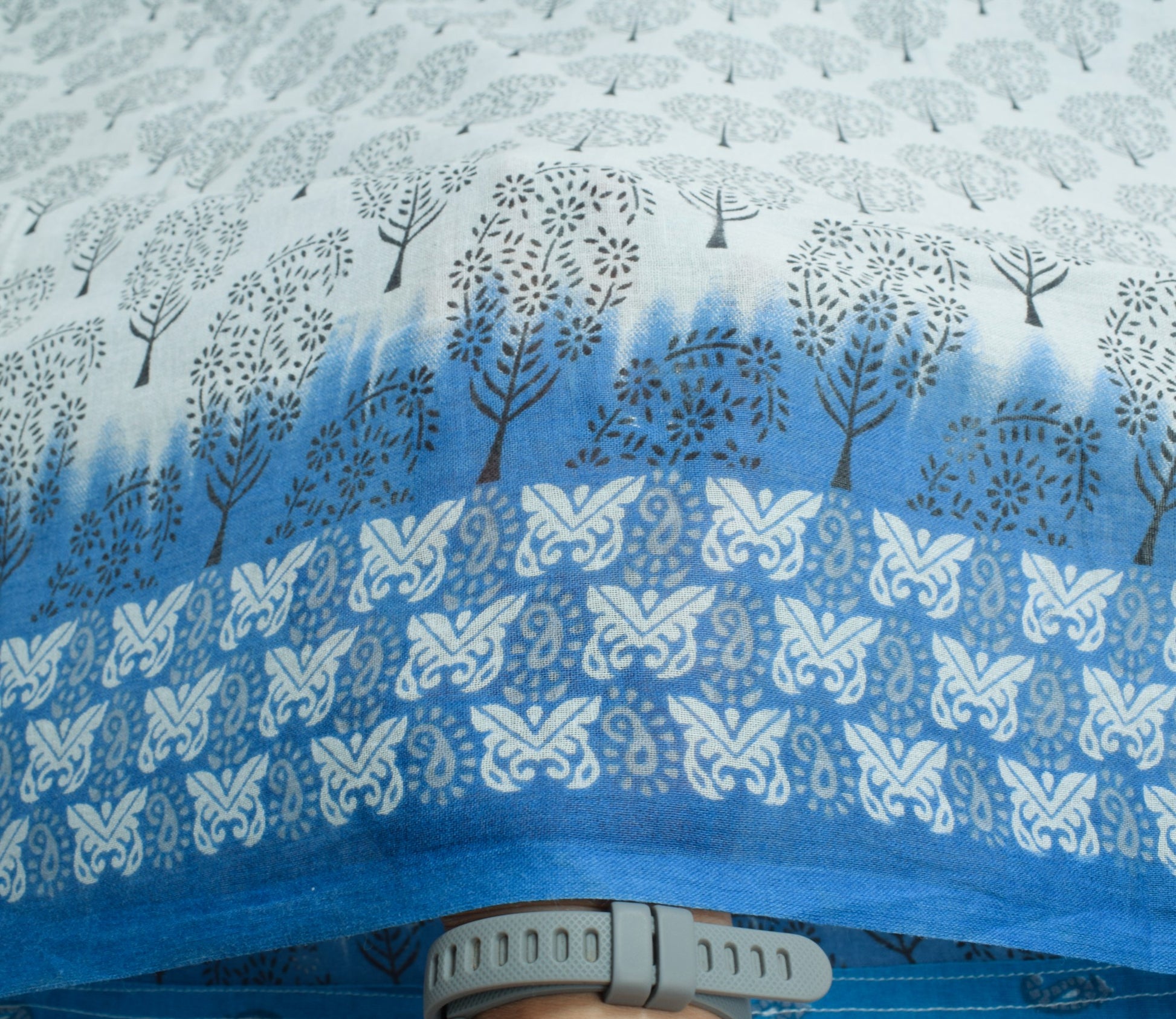 Sushila Vintage Ice Blue Floral Printed Saree 100% Pure Cotton Soft Craft Fabric