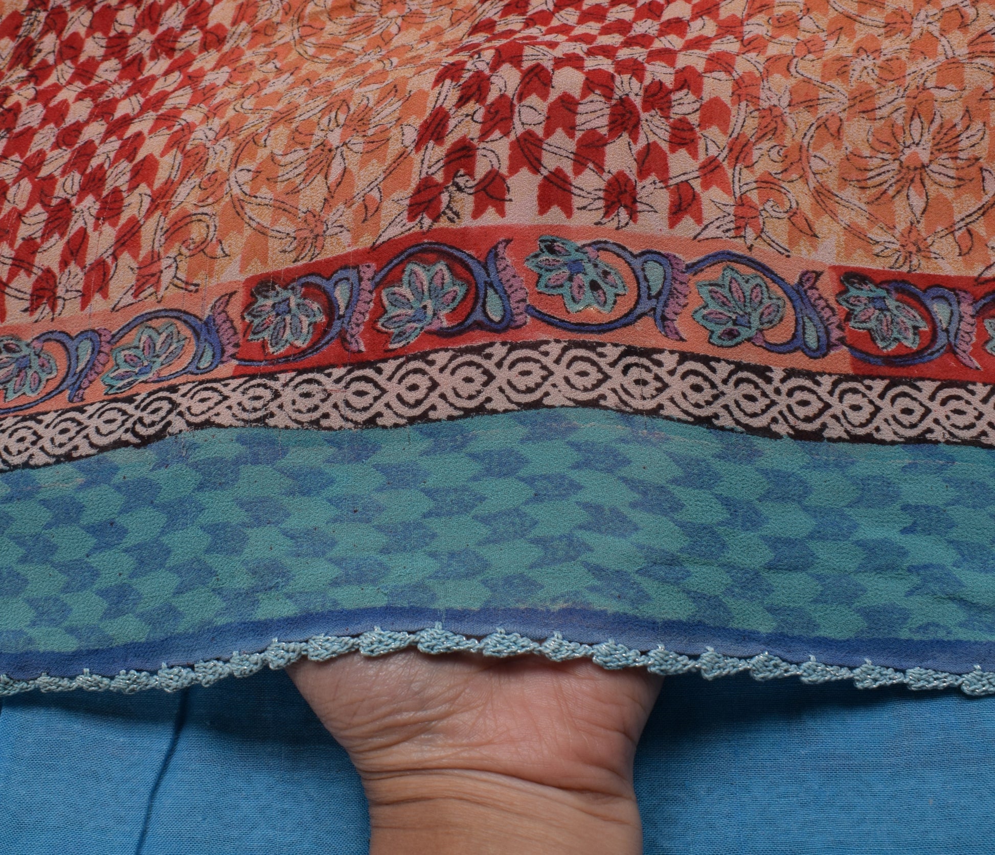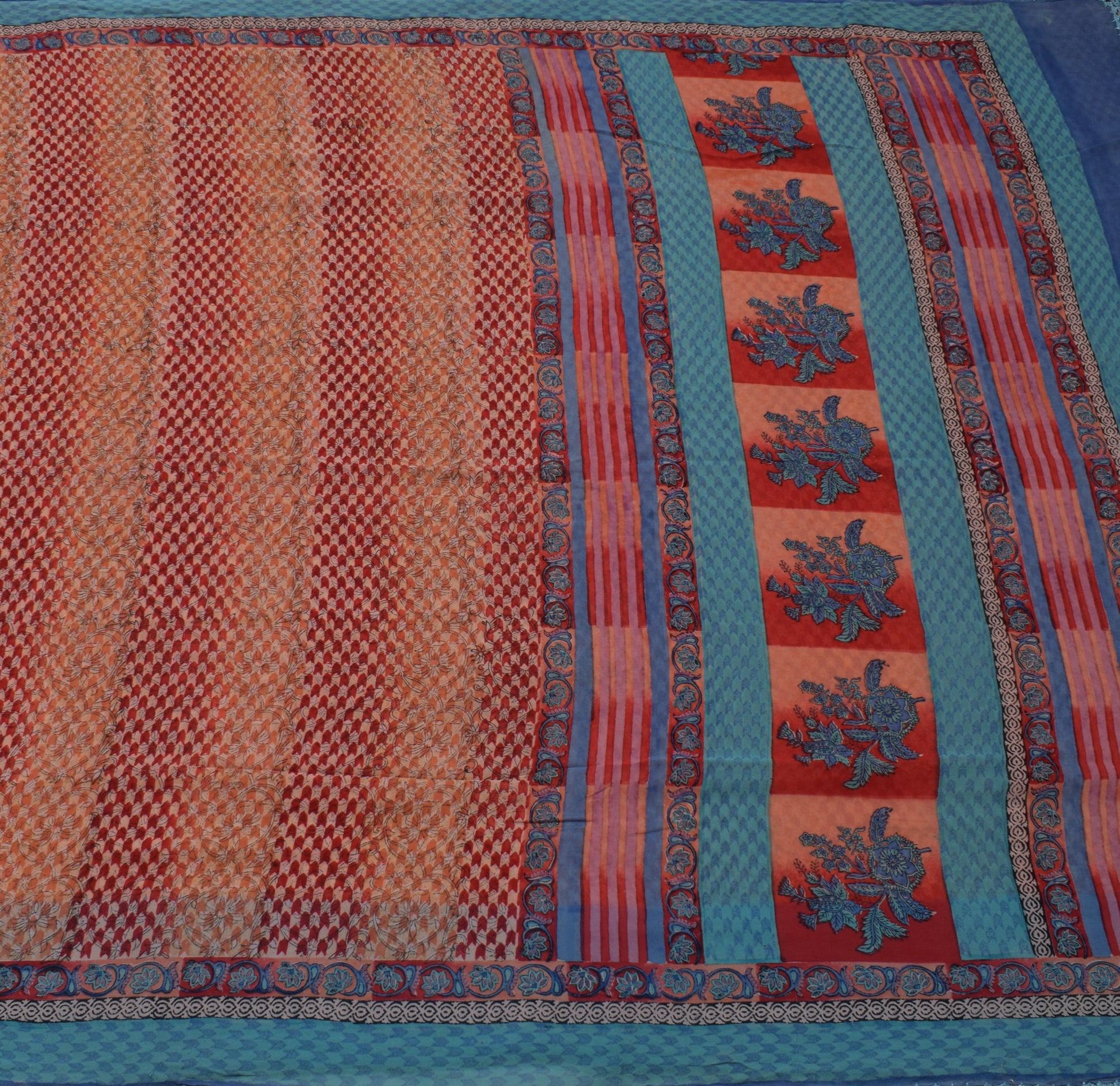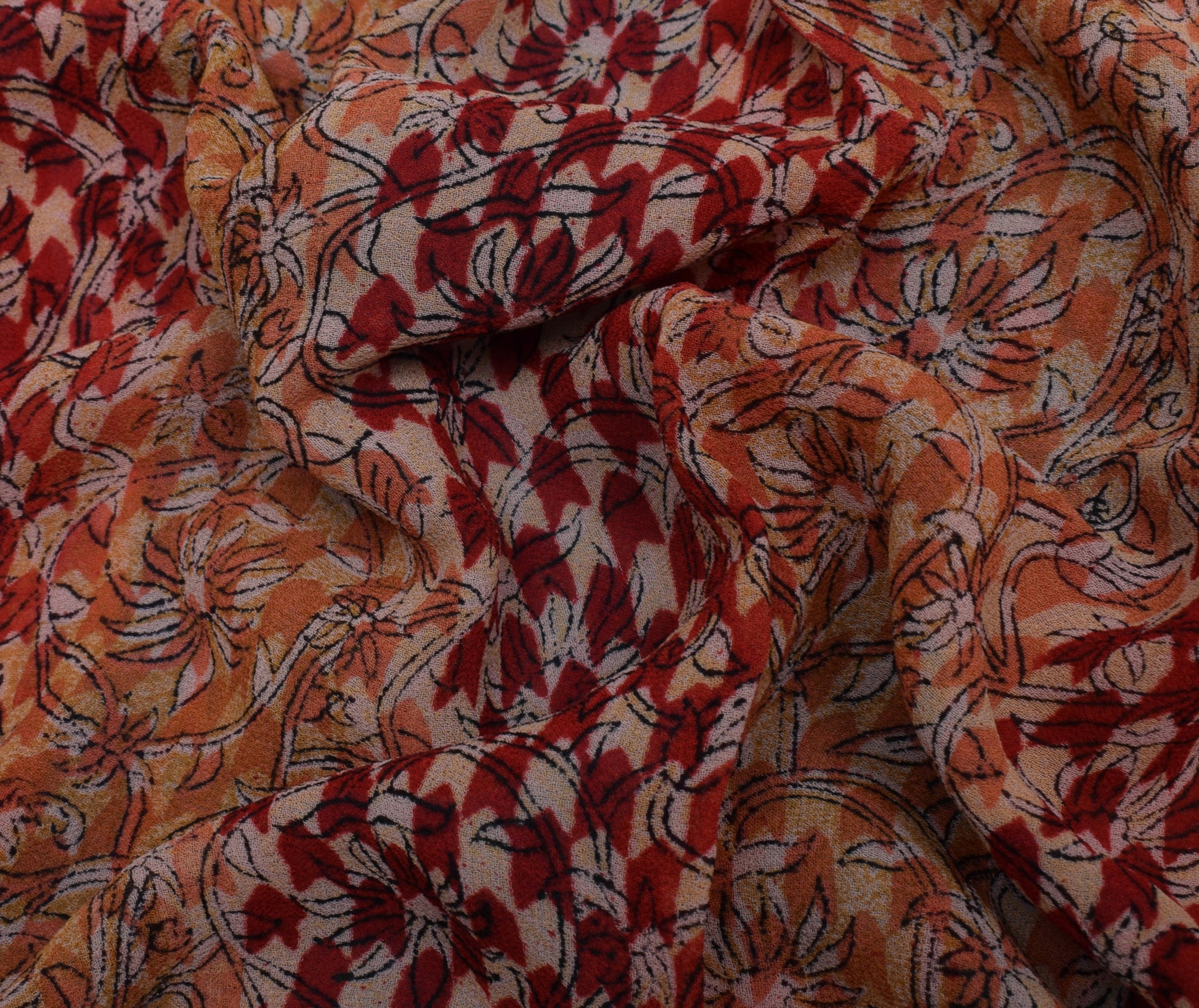 Sushila Vintage India Saree 100% Pure Georgette Silk Printed Floral Craft Fabric
