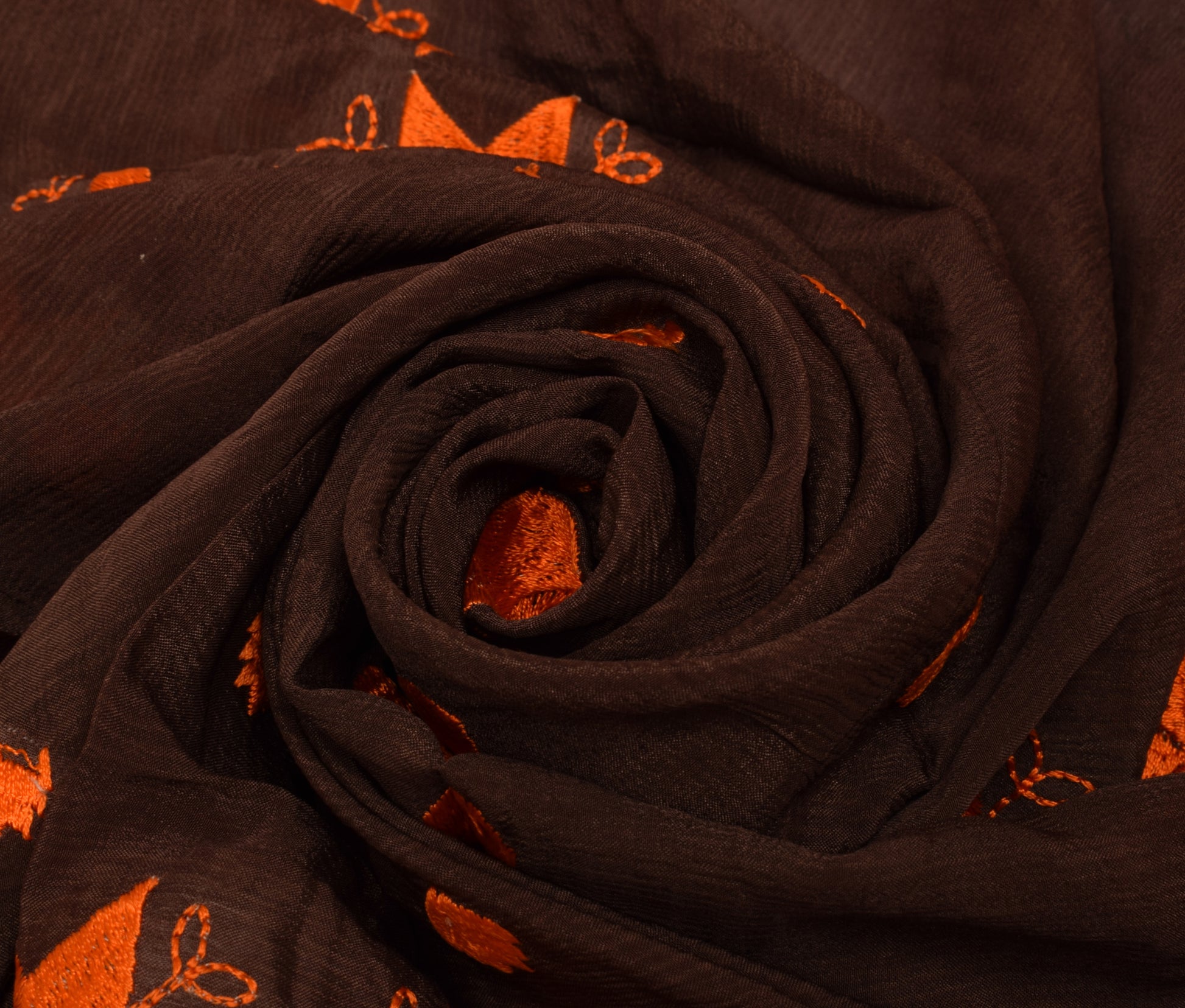 Make a lasting impression with this handcrafted Brown Floral Dupatta, Scarf, Indian Long Stole, Veil, or Hijab, ideal for adding a touch of sophistication to any outfit. Made from premium Pure Chiffon Silk, this piece features intricate Embroidered work, adding a touch of traditional charm to any outfit. The Brown base beautifully complements the delicate Floral detailing, creating a truly timeless accessory.