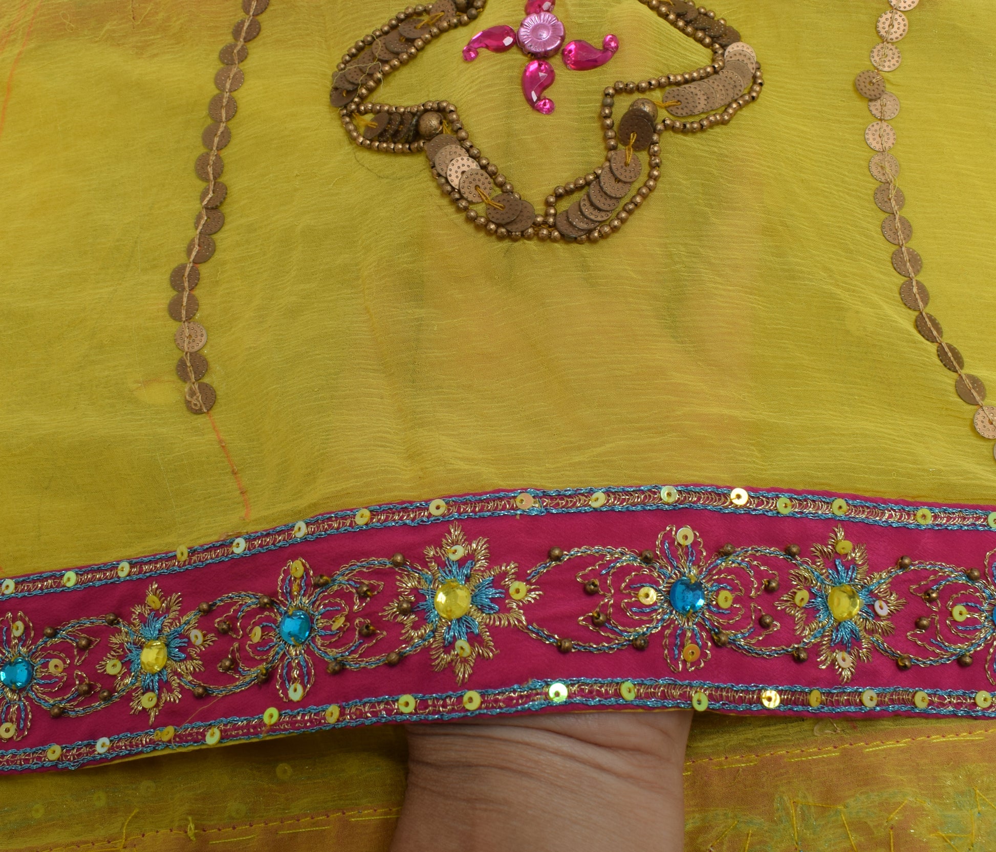 Sushila Vintage Indian Dupatta Blend Chiffon Silk Beaded Long Stole Veil Scarves