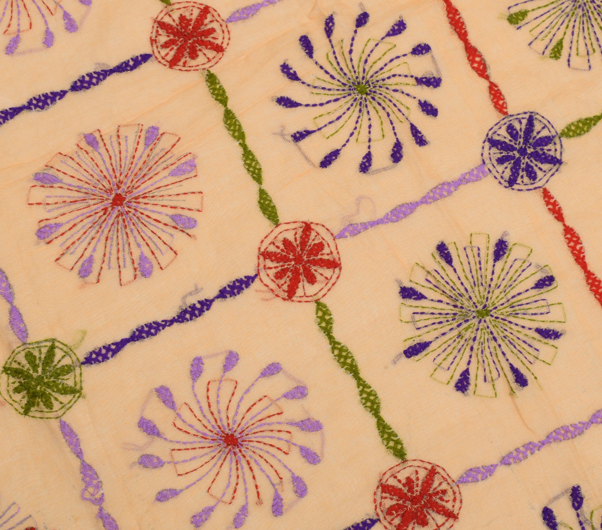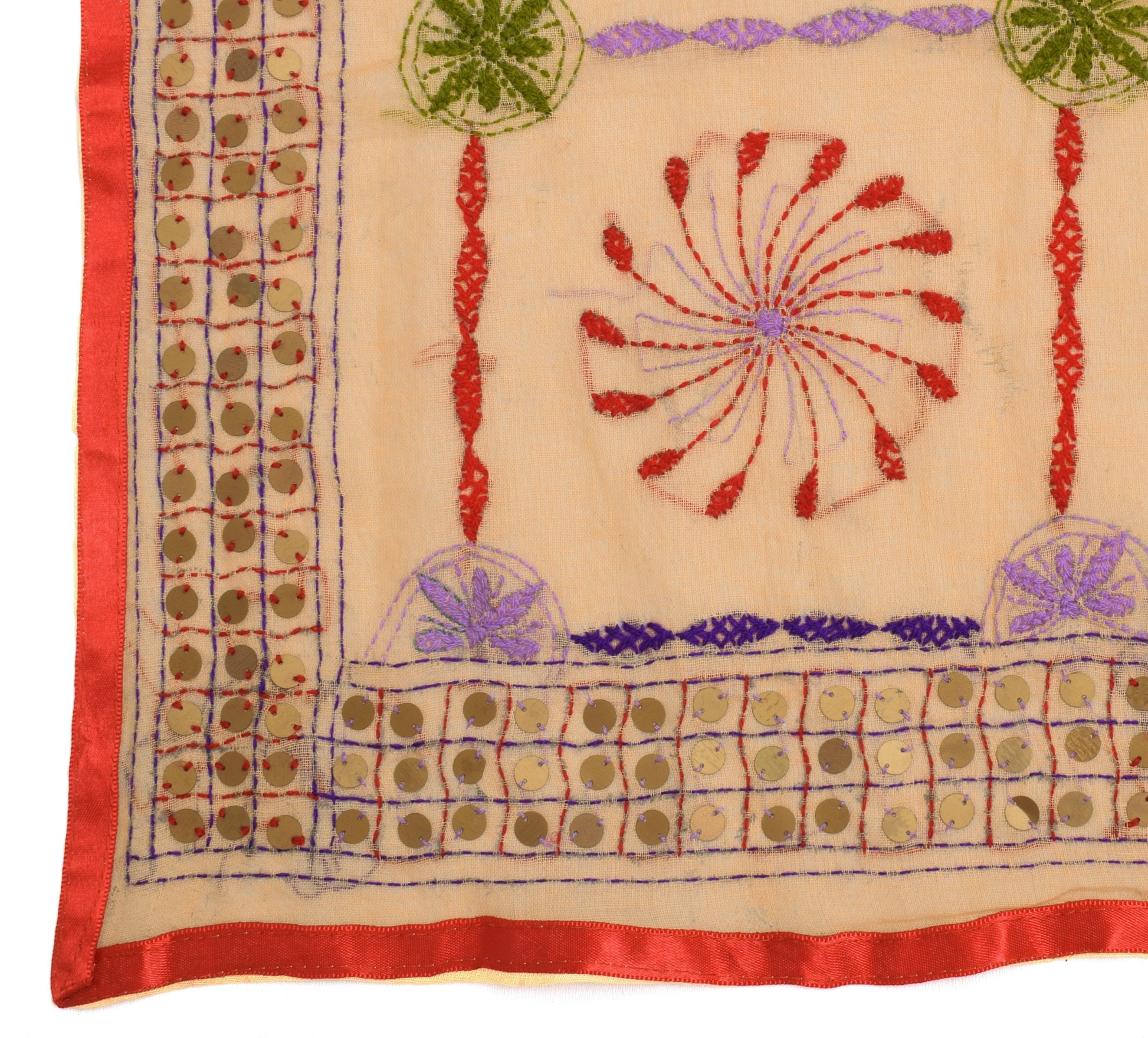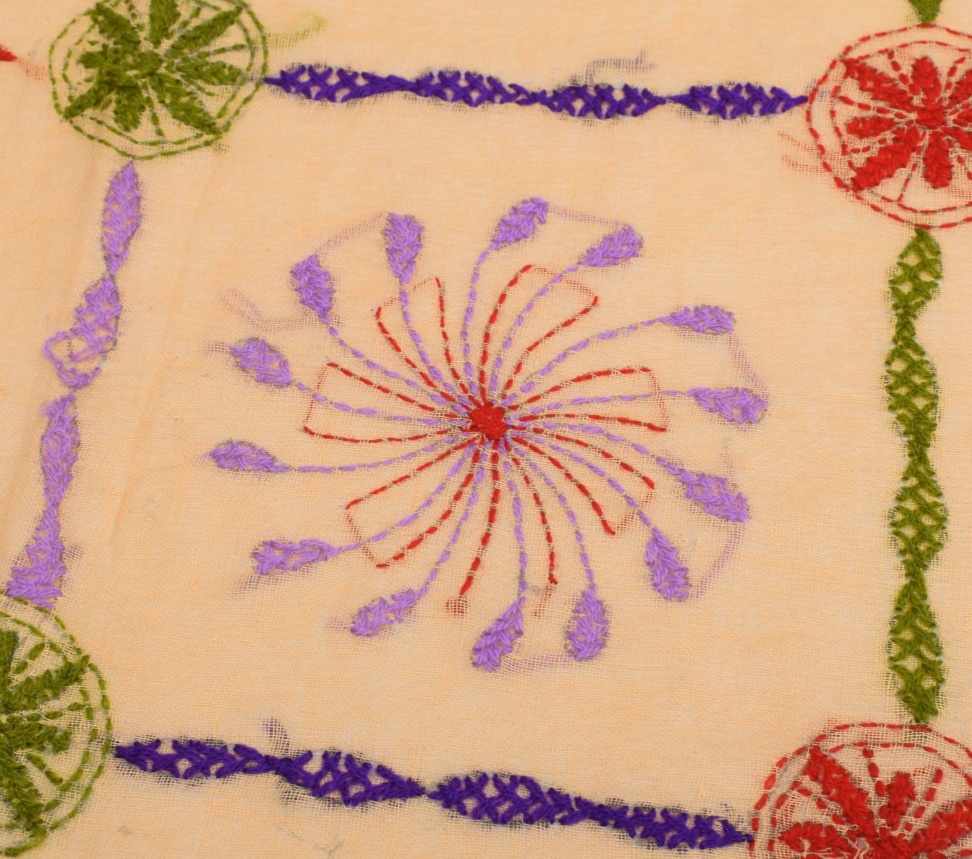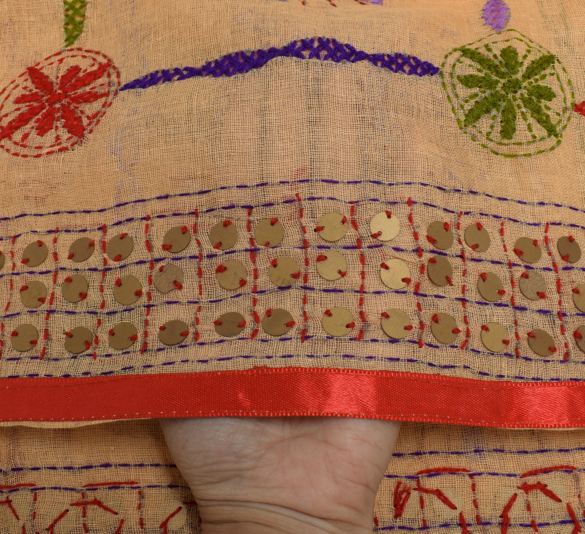 Sushila Vintage Indian Dupatta Pure Cotton Hand Embroidered Long Stole Hijab