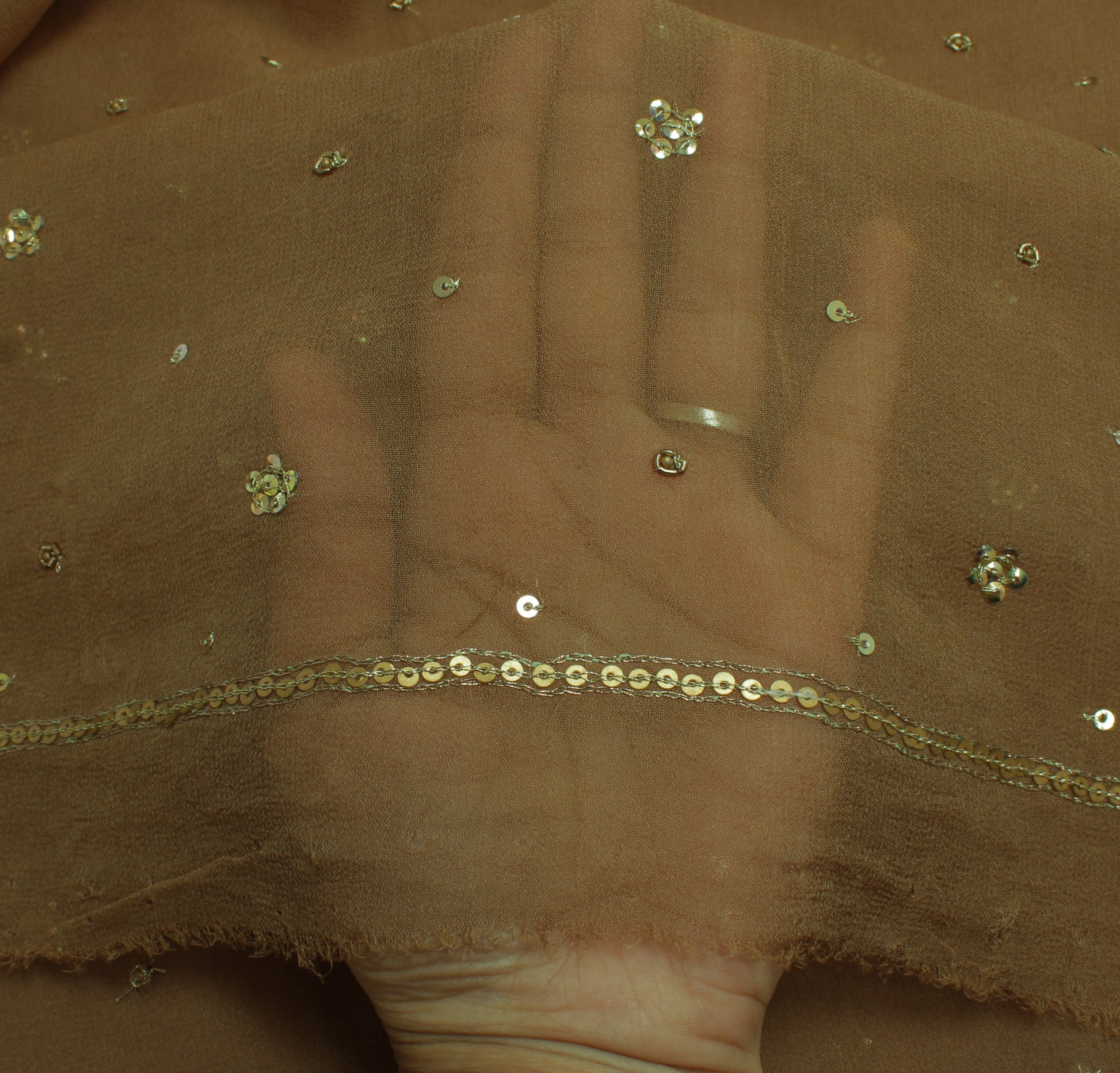 Sushila Vintage Indian Dupatta Pure Georgette Sequins Embroidered Long Stole