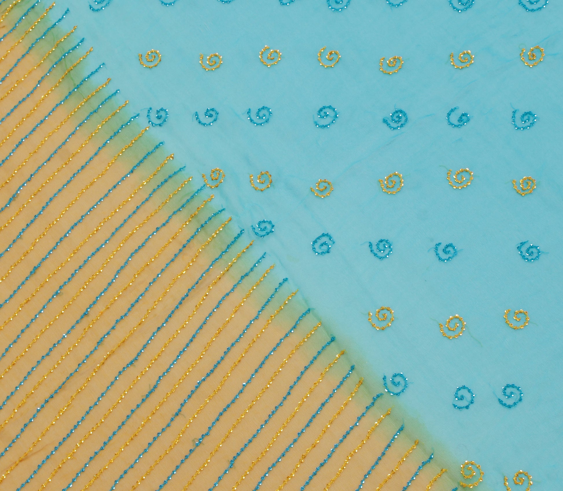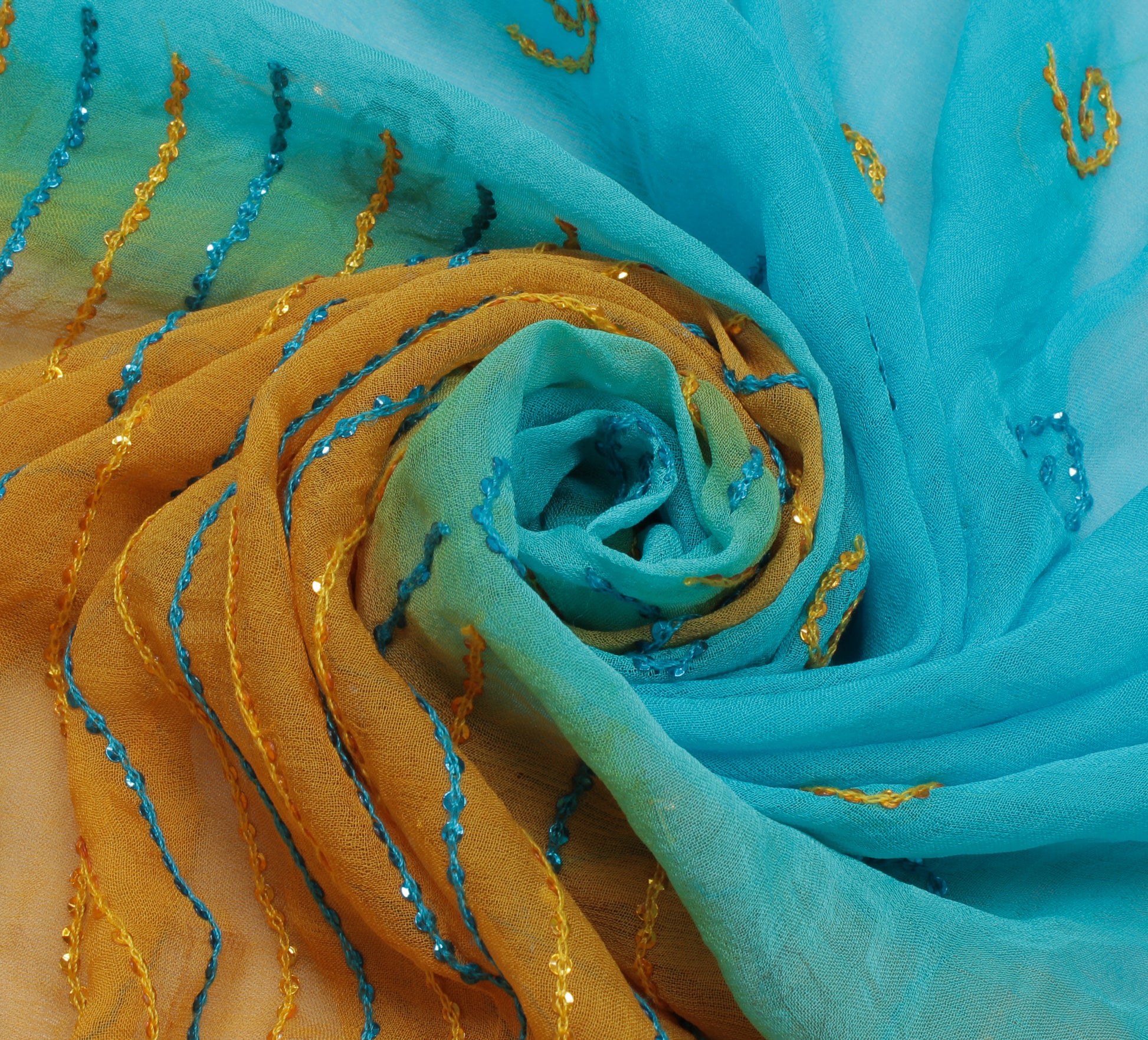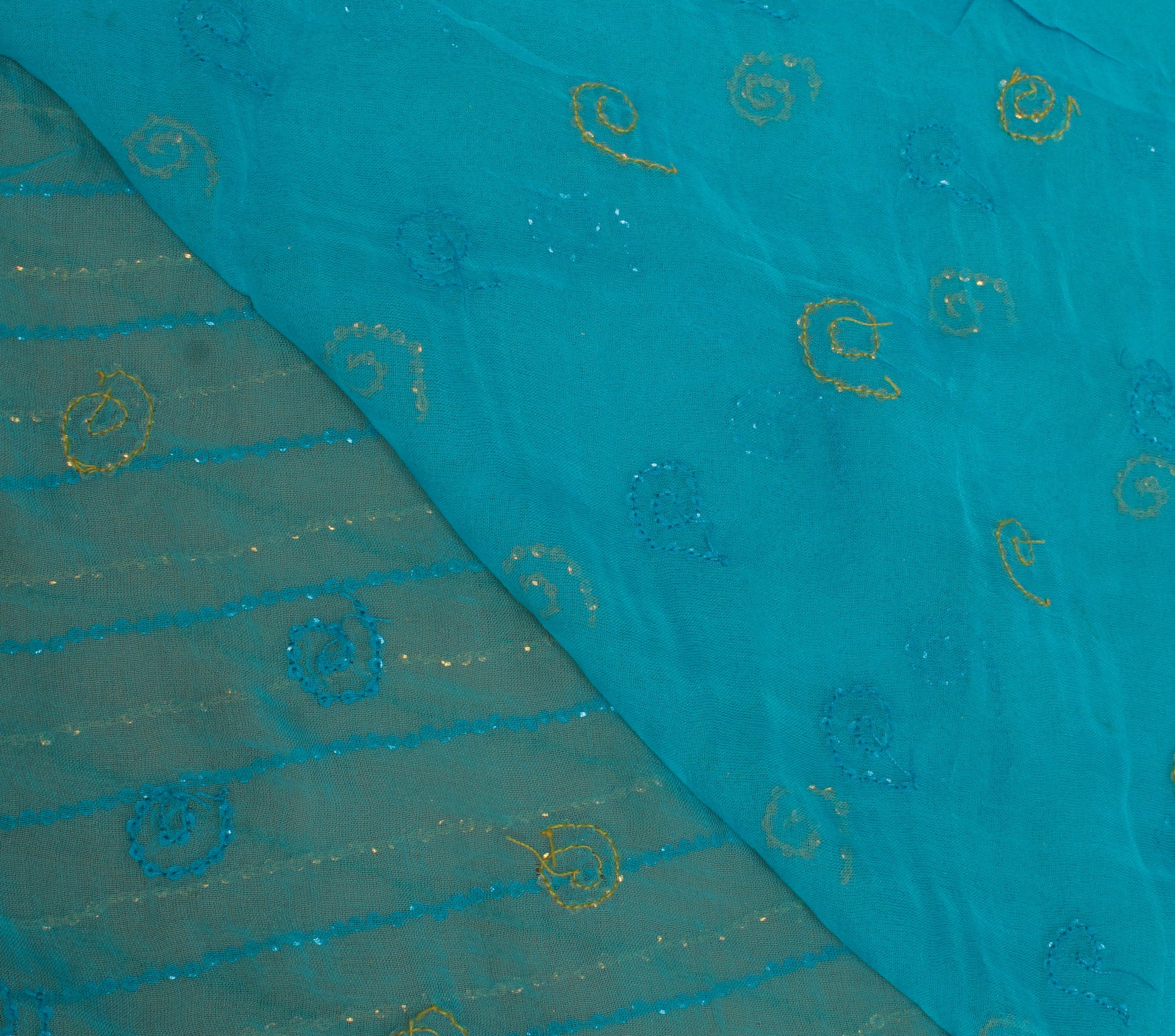 Sushila Vintage Indian Dupatta Pure Georgette Sequins Embroidered Long Stole