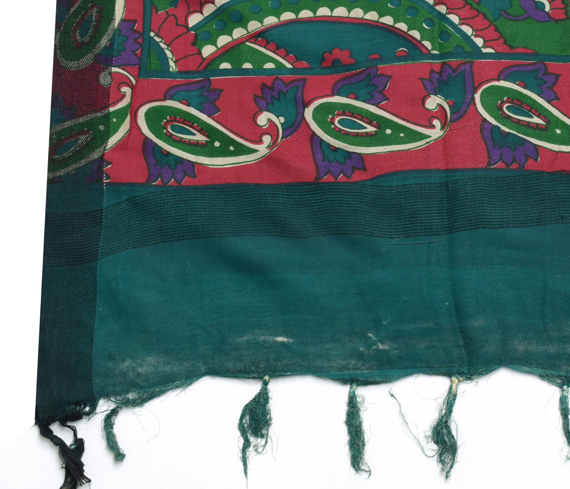 Sushila Vintage Indian Green Dupatta Blend Woolen Printed Long Stole Hijab