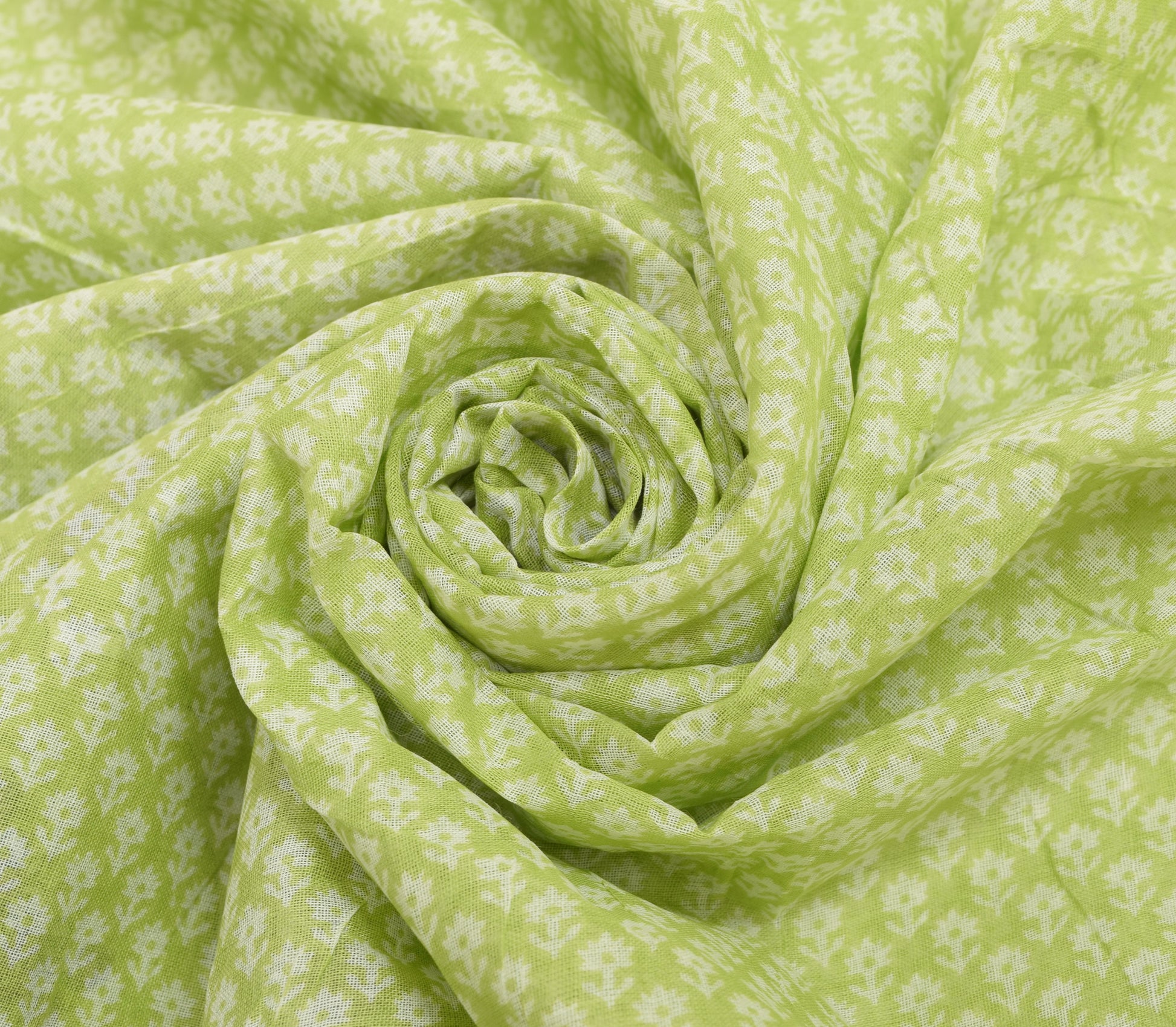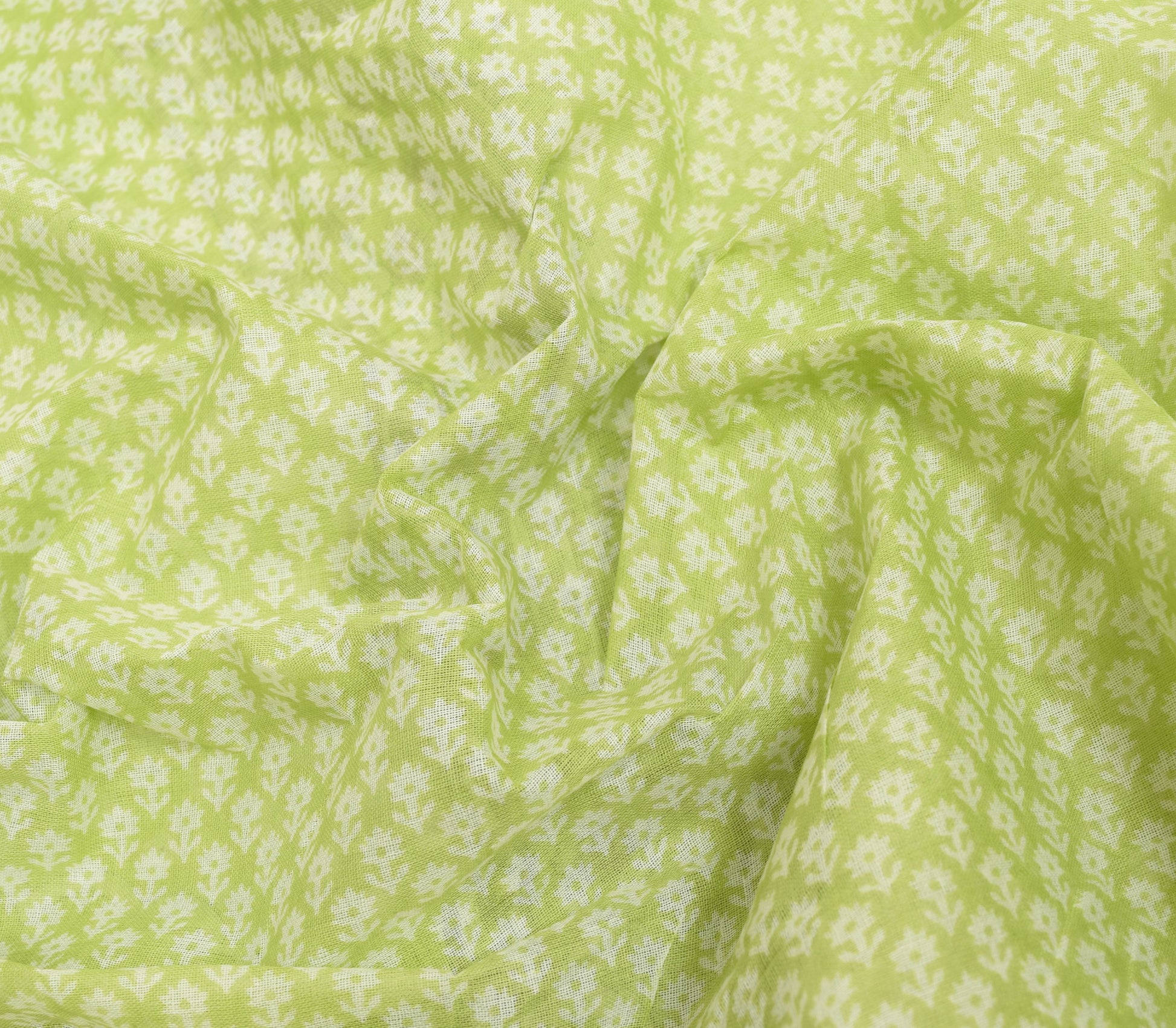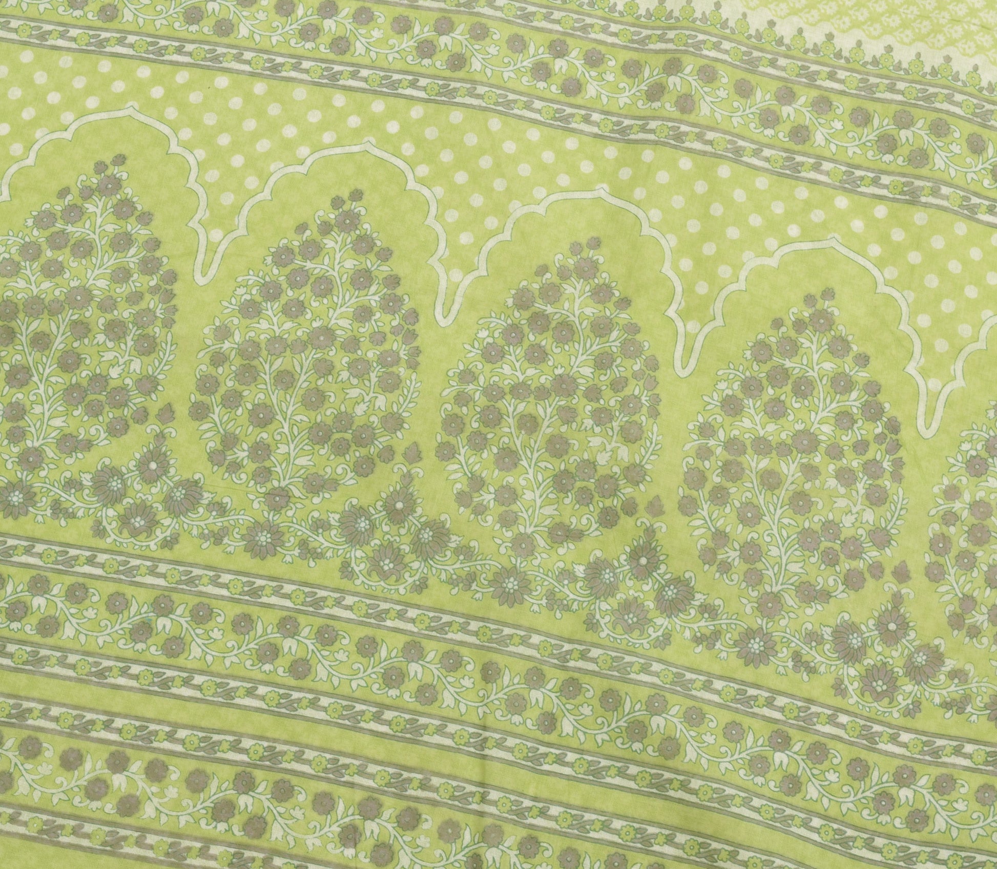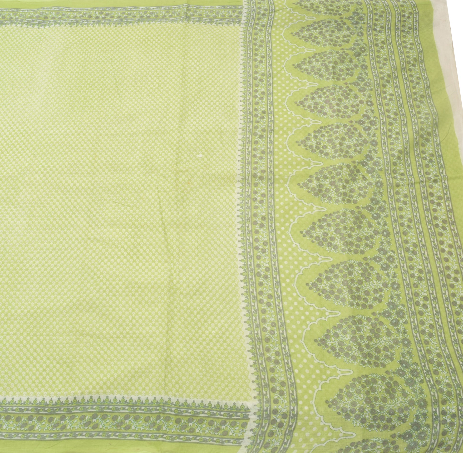 Sushila Vintage Indian Saree 100% Pure Cotton Green Floral Printed Craft Fabric