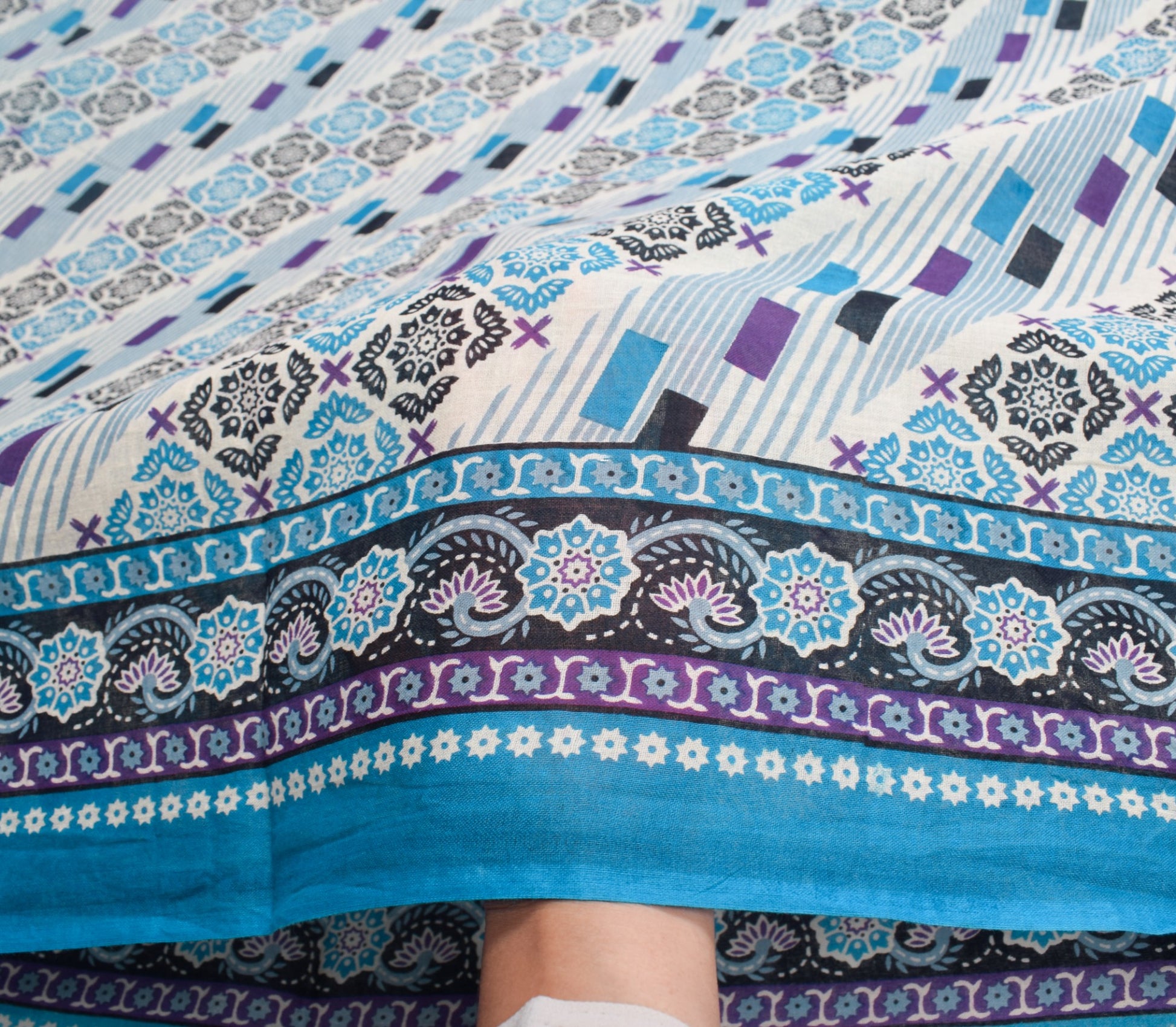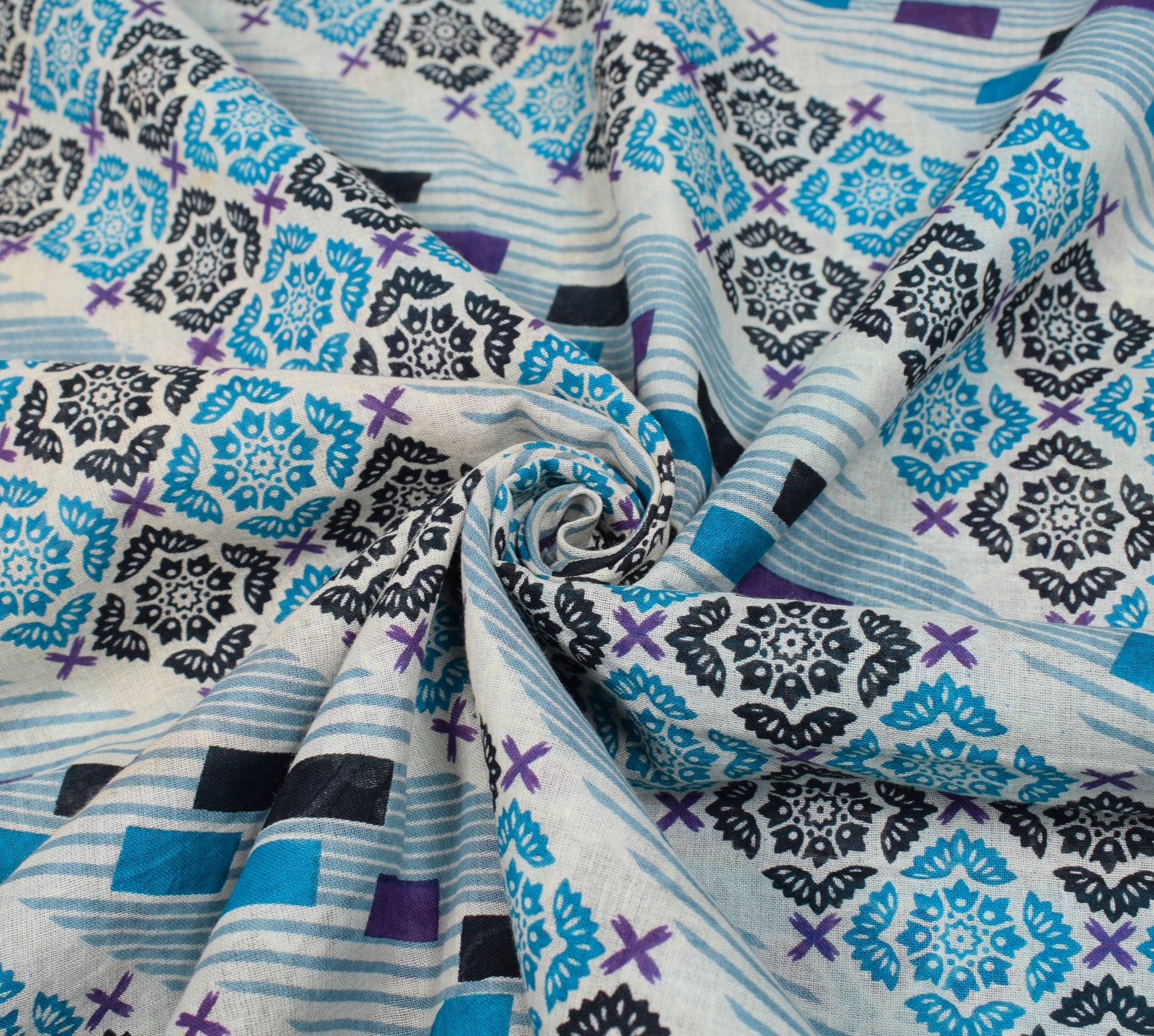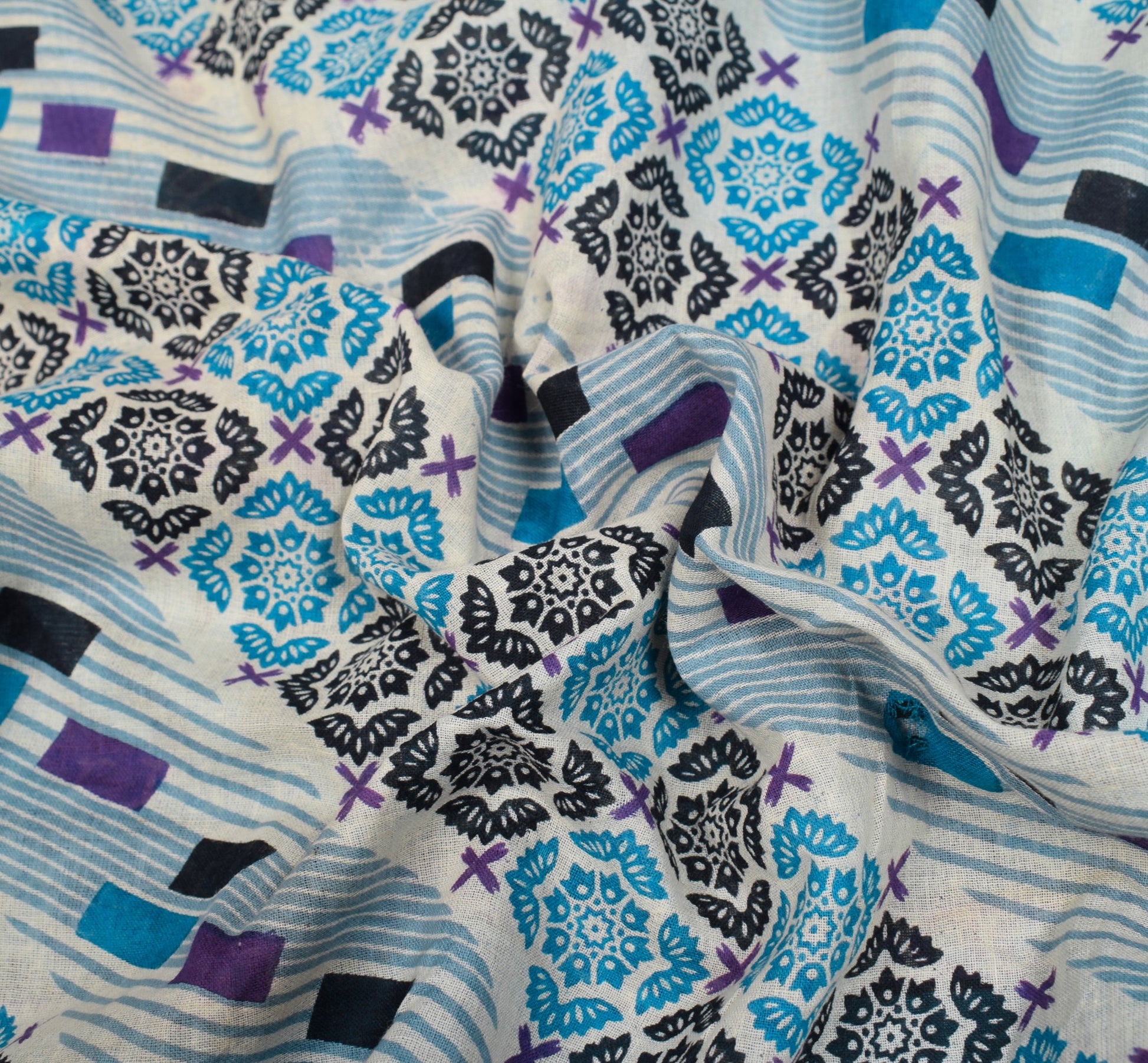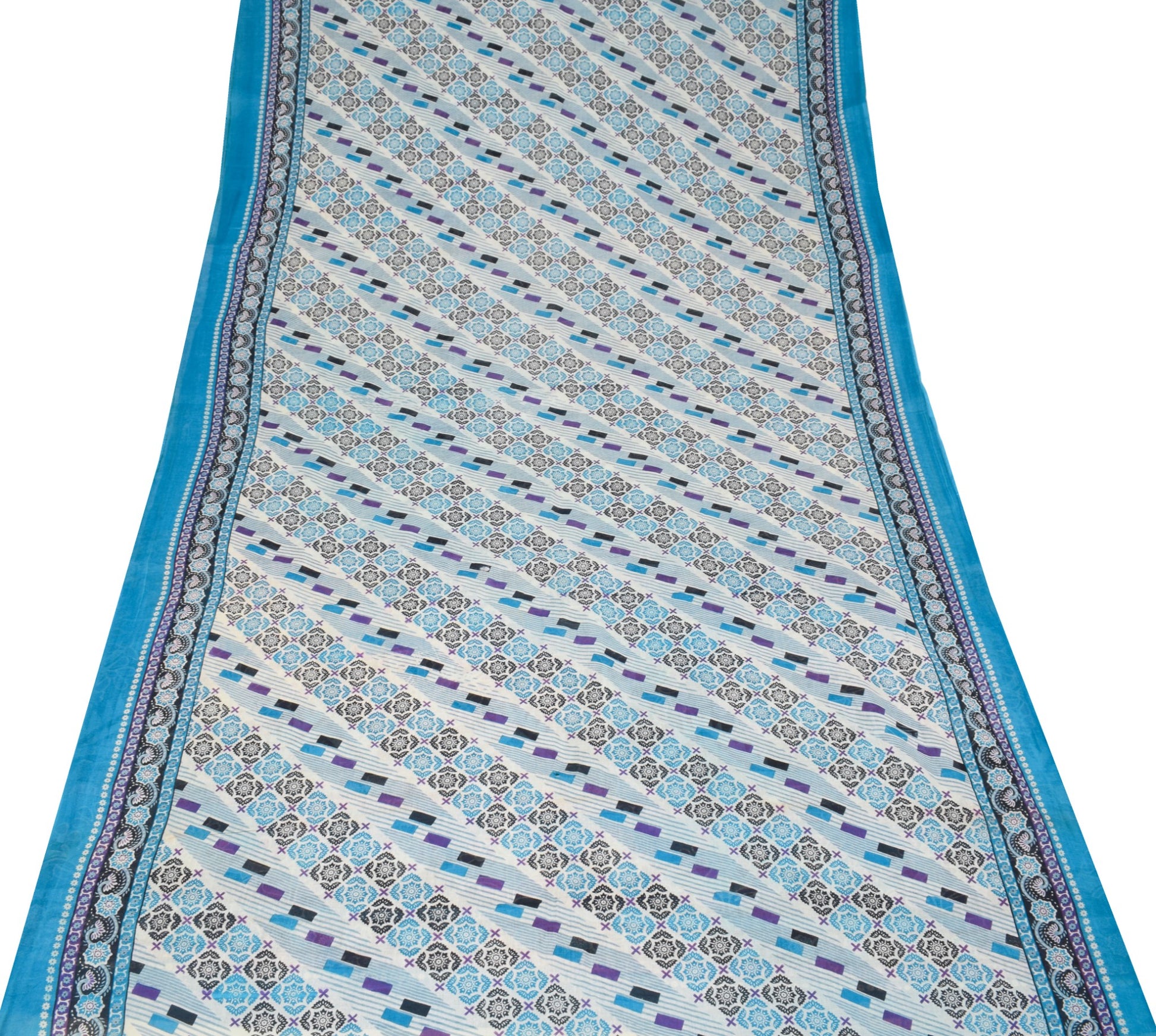 Sushila Vintage Indian Saree 100% Pure Cotton Printed Floral Cream Craft Fabric