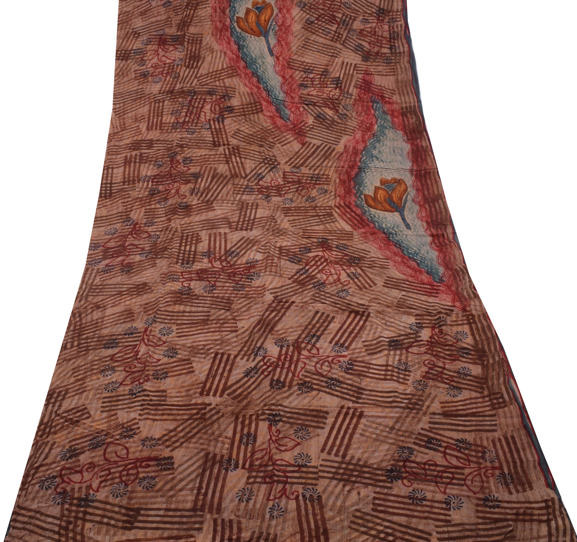Sushila Vintage Indian Saree 100% Pure Crepe Silk Printed 5 Yard Soft Fabric