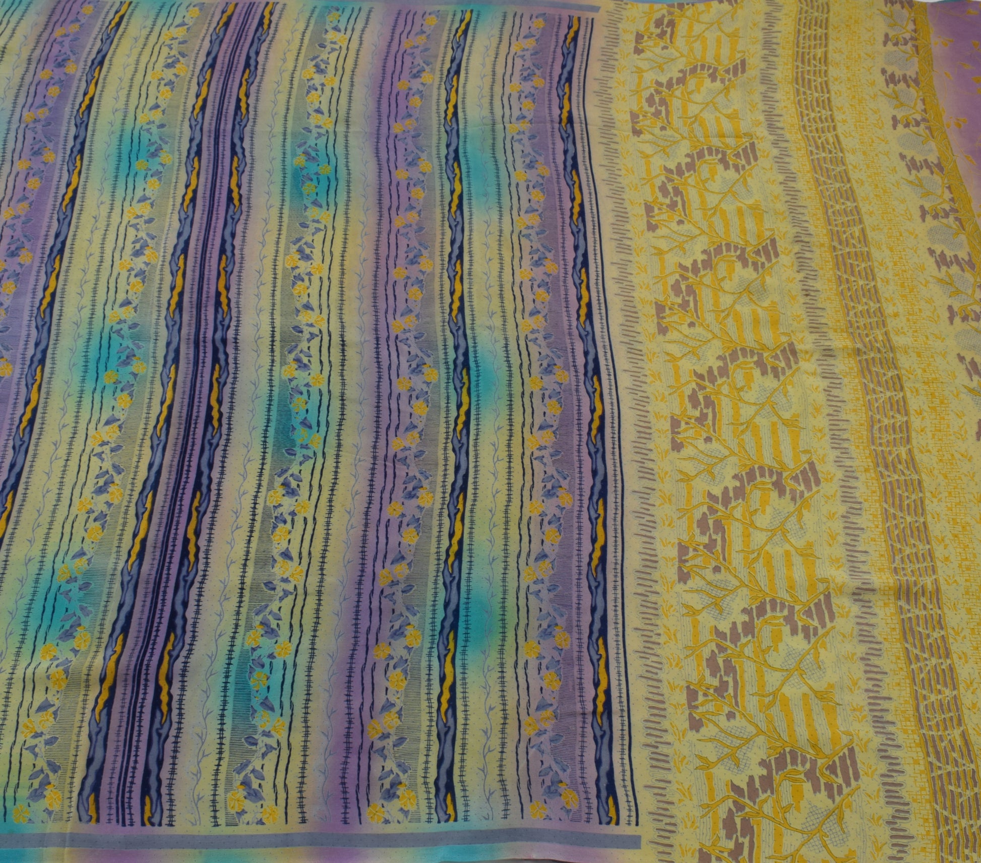 Sushila Vintage Indian Saree 100% Pure Crepe Silk Printed 5 Yard Soft Fabric
