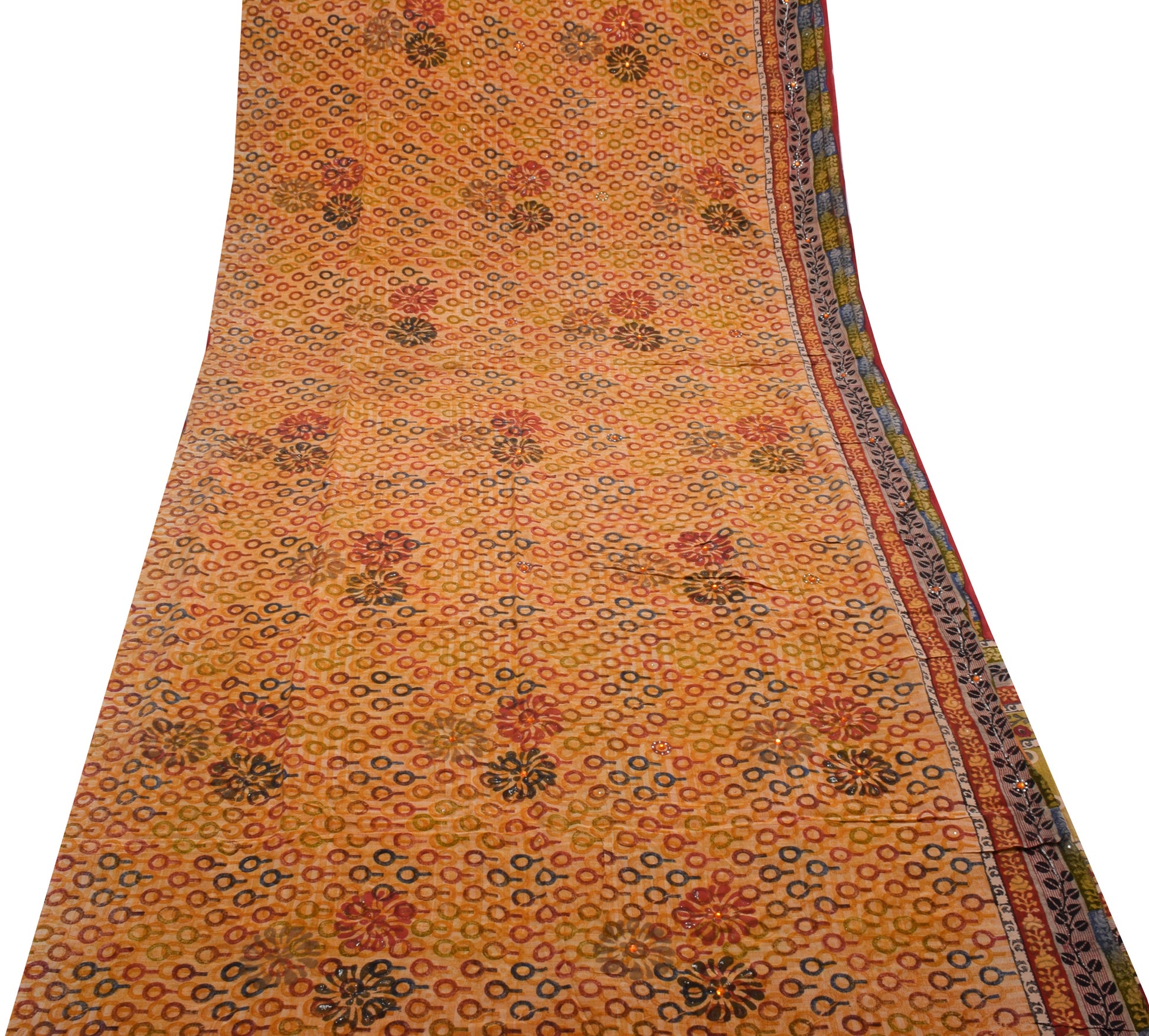 Celebrate heritage craftsmanship in this as per images 100% pure crepe silk saree, adorned with graceful floral patterns and exquisite beaded, rhine stone & embroidered work. Crafted from pure, breathable 100% pure crepe silk, this sarI boasts a luxurious drape and enduring appeal. Measuring roughly 192 inch in length and 42 inch in width, it offers versatile styling—whether worn traditionally or repurposed into bespoke dresses, home décor, or creative crafts. Weighing about 376 grams (actual product weight), it falls gracefully, making it ideal for anyone who appreciates the charm of vintage textiles.